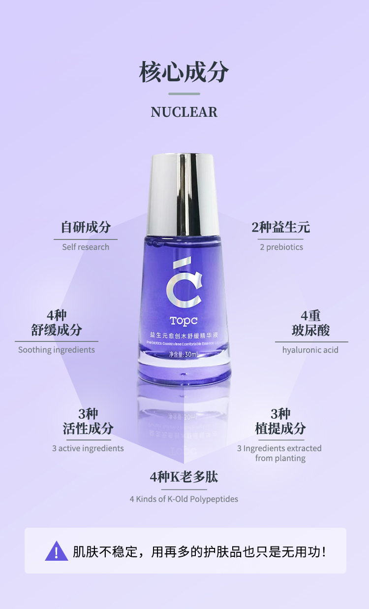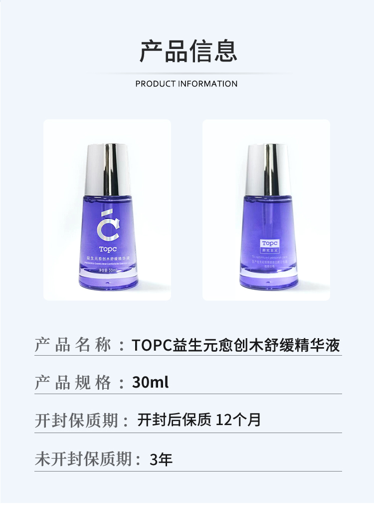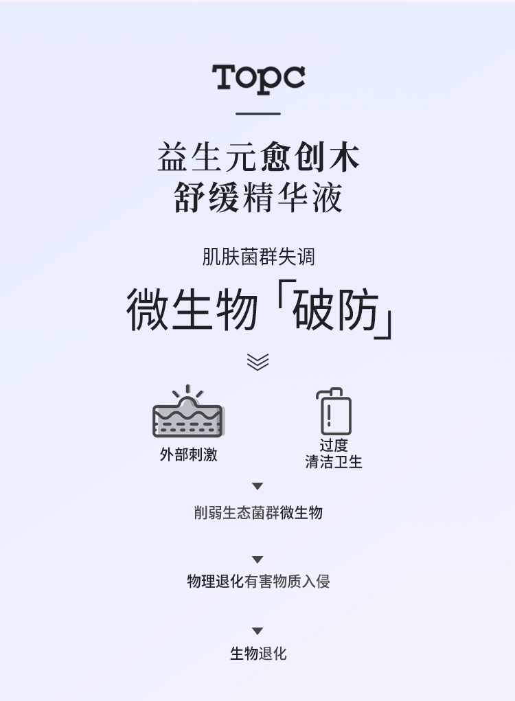 【Topc益生元愈创木舒缓精华液】帮助改善皮肤敏感,红,肿,干痒,修护屏障受损,打好“肌底”,能避免涂护肤品刺痛,不吸收,红血丝,油脂分泌失调,反复爆痘等30ml/瓶】