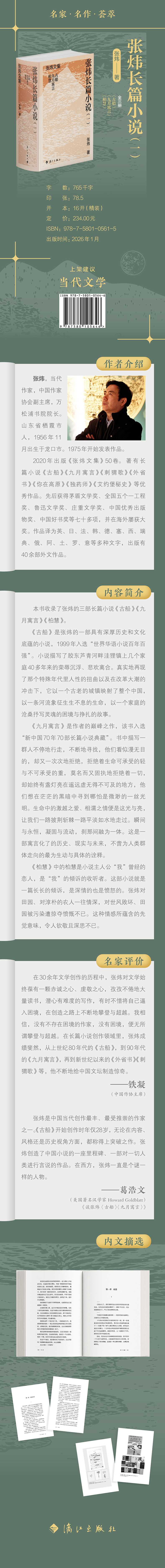 2020年出版《张炜文集》50卷。著有长篇小说《古船》《九月寓言》《刺猬歌》《外省书》《你在高原》《独药师》《艾约堡秘史》等优秀作品。先后获得茅盾文学奖、全国五个一工程奖、鲁迅文学奖、庄重文学奖、中国优秀出版物奖、中国好书奖等七十多项,并在海外屡获大奖。作品译为英、日、法、韩、德、塞、西、瑞典、俄、阿、土、罗、意等多种文字,出版有40余部外文作品。