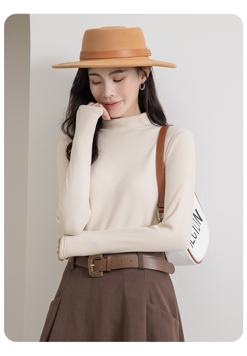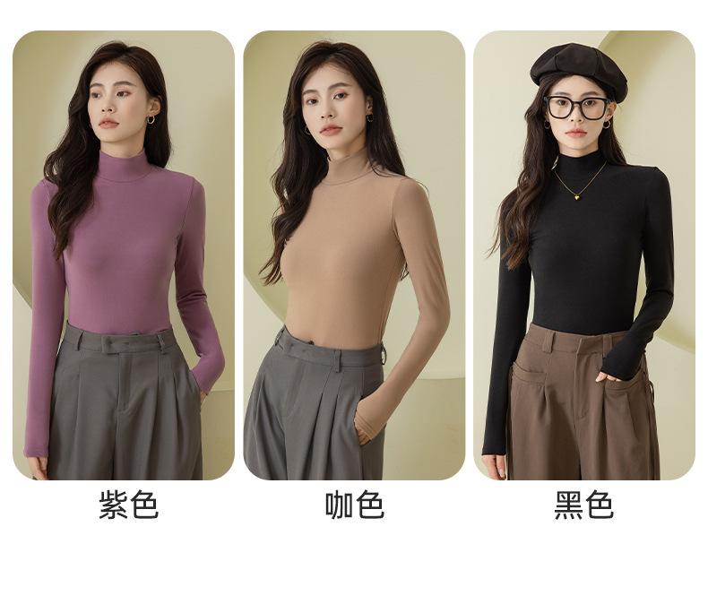 【防风修身显瘦❗️韩版修身加绒打底衫】多色选择,时尚简约,舒适百搭,软糯舒适,单穿内搭都可,新款加绒加厚保暖内衣女中领打底衫德绒打底上衣内搭秋衣冬季