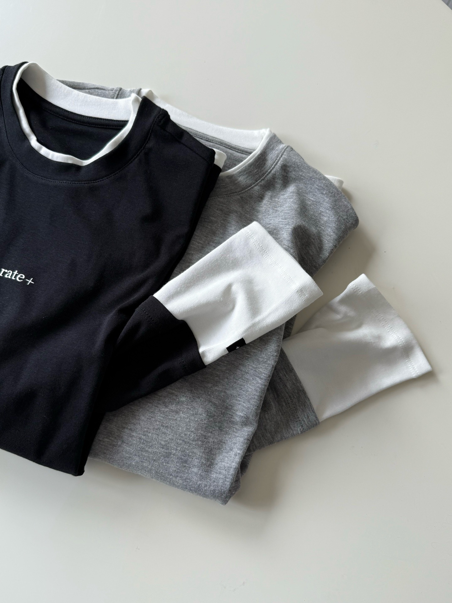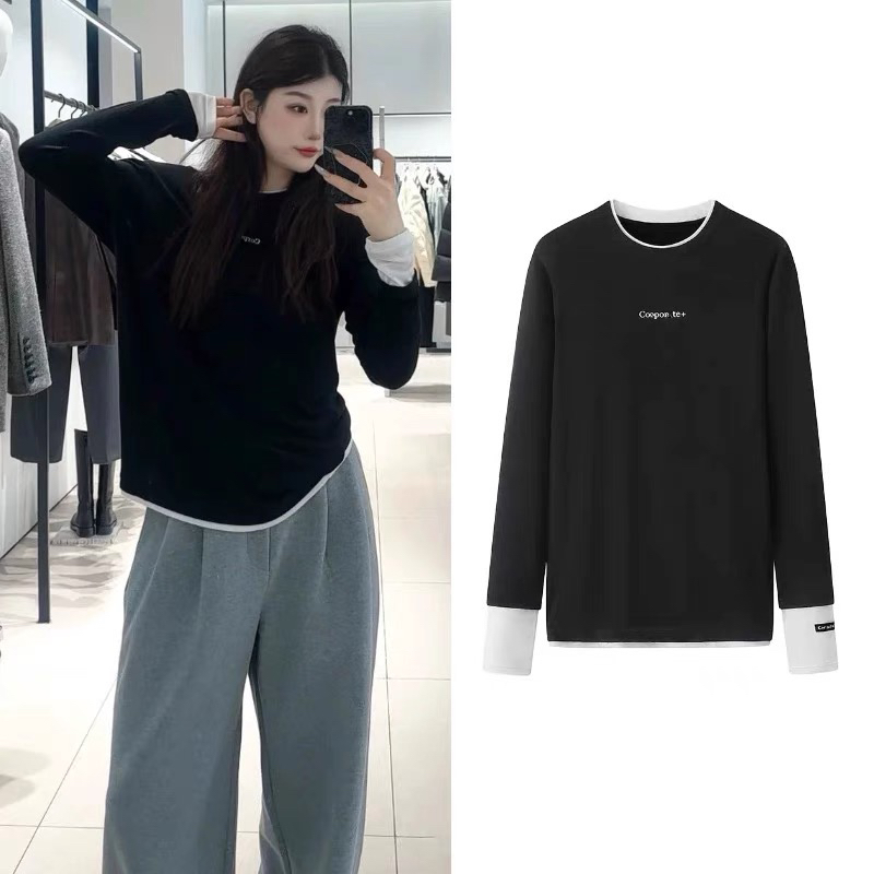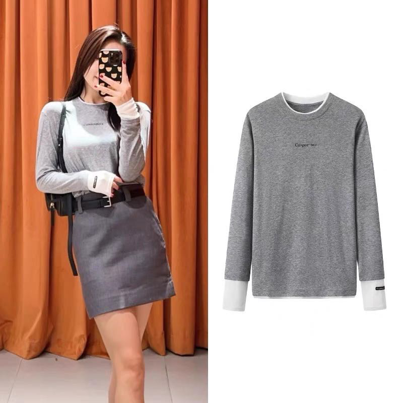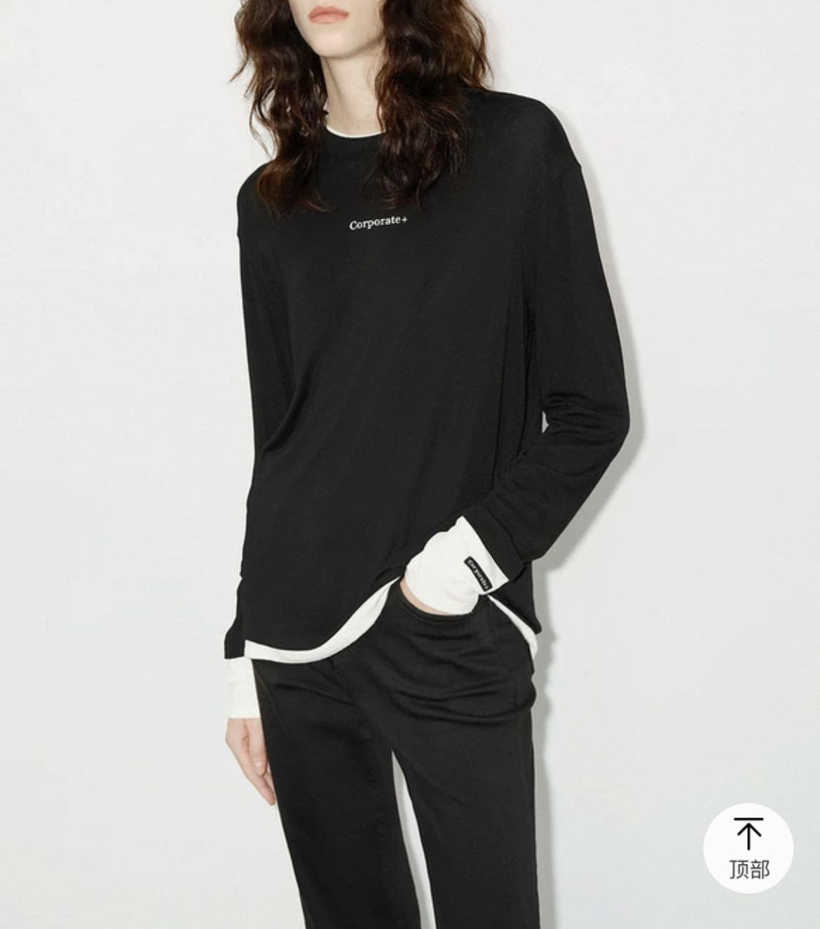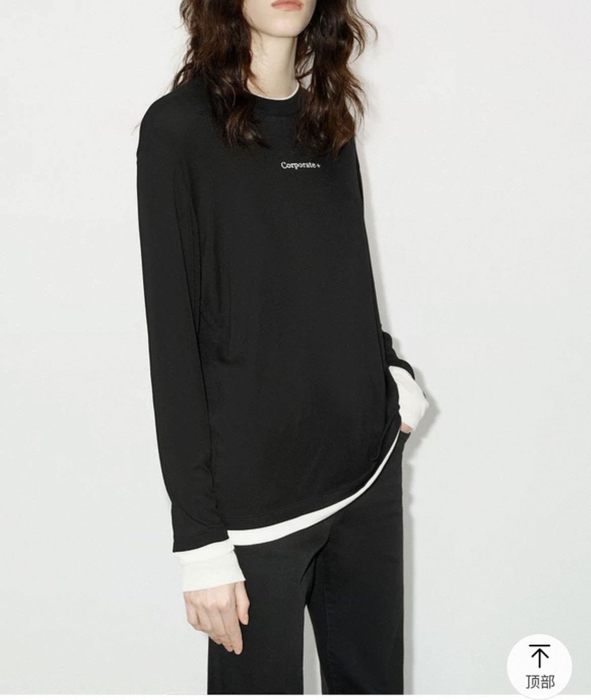 Mo家 莱赛尔棉 假两件 圆领长袖针织衫