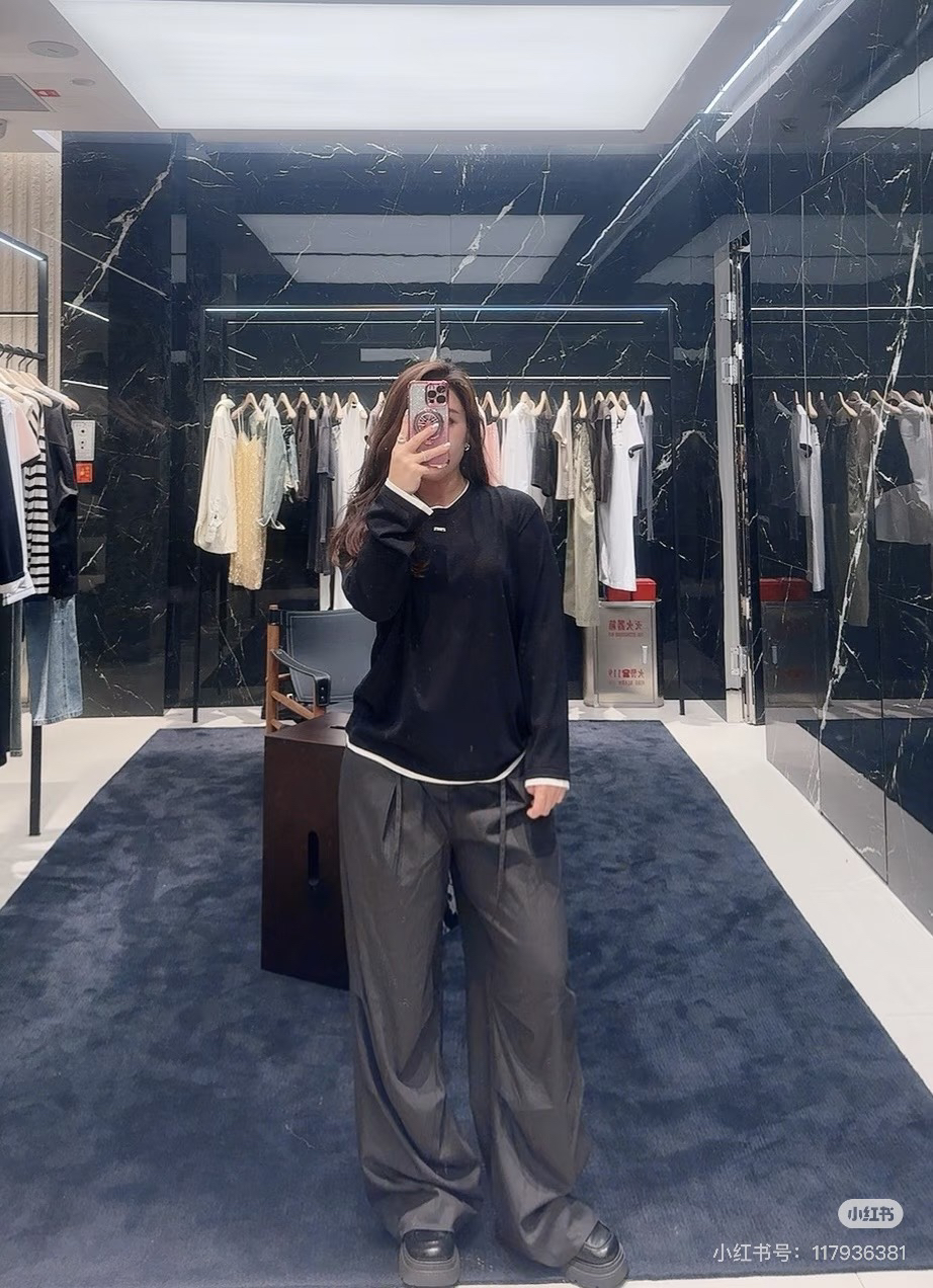 上身有壹定松量,勾勒出自在舒适的显瘦空间