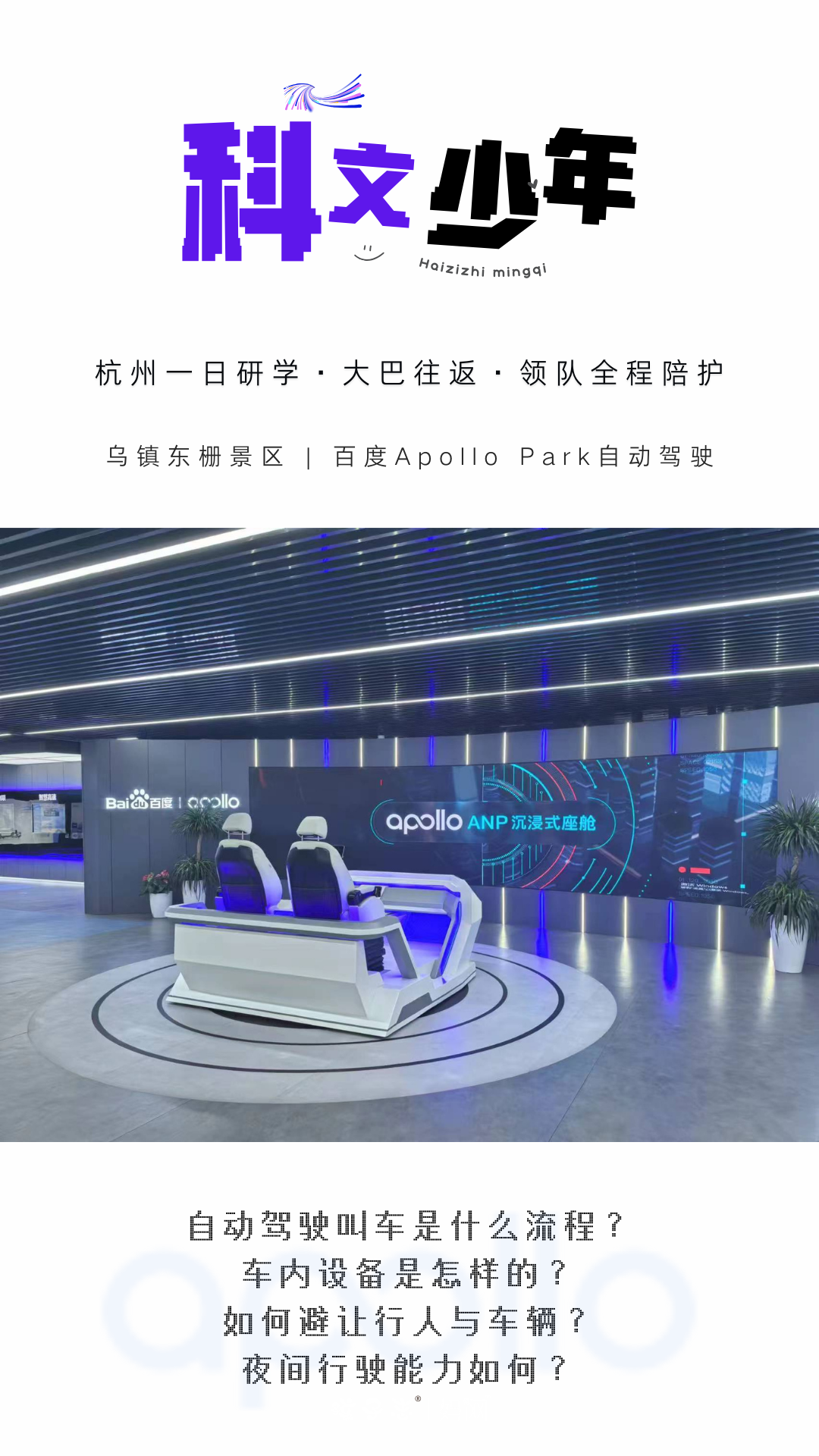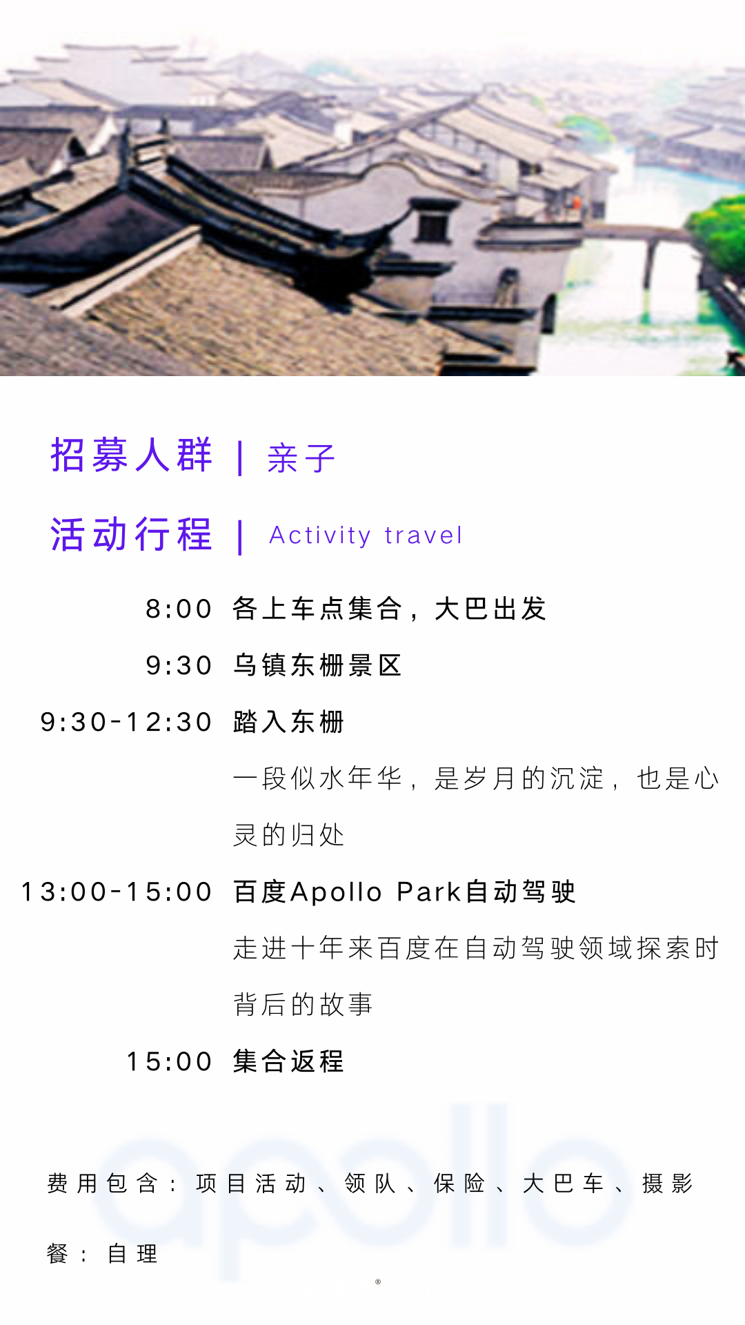 杭州一日研学 | 乌镇、百度Apollo Park自动驾驶,7/28(周日) 亲子 触摸乌镇文化,体验自动驾驶,走进十年来百度在自动驾驶领域探索时背后的故事…