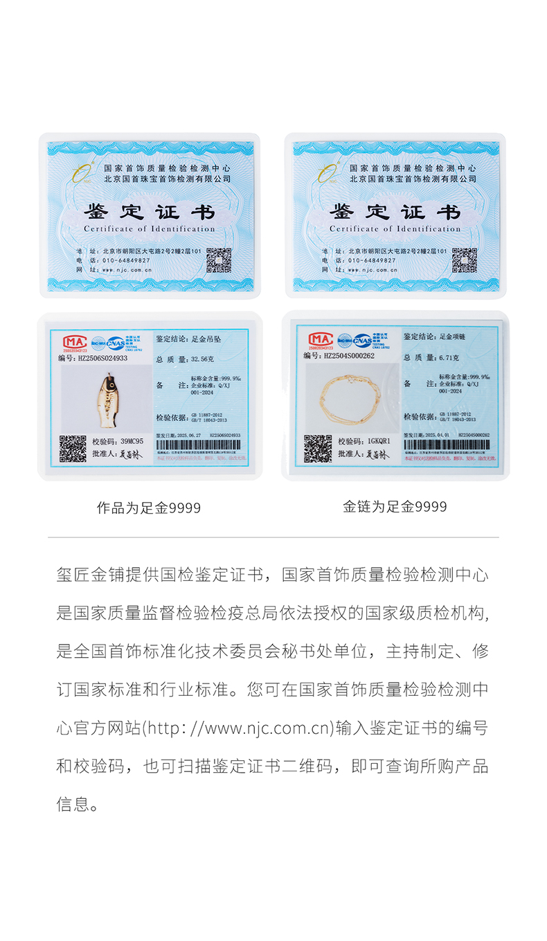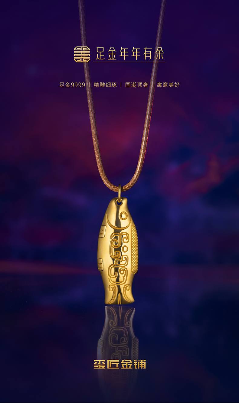 玺匠金铺《足金年年有余》足金9999黄金吊坠 吉祥饰品挂件