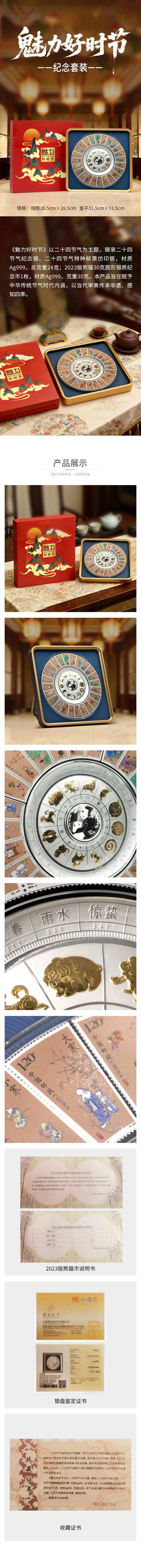 【新春礼品】魅力好时节30克熊猫银币银盘相框摆件 54克足银 二十四节气邮票珍藏