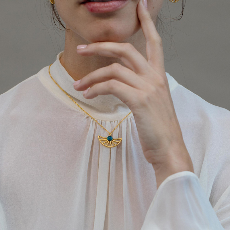 北京仓|Joidart-CRIPTA-蓝绿色 扇形 Murano玻璃 项链[西班牙设计师]