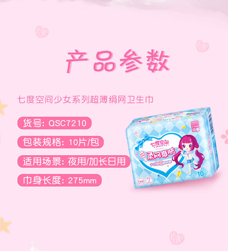 七度空间少女夜用超薄娟爽卫生巾10片 QSC7210【20022327】