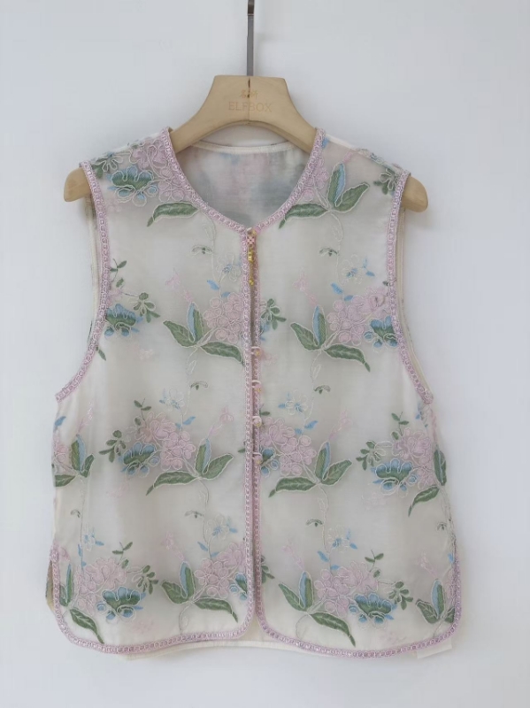 SZ2H61_粉米色_马甲_夏季_圆领无袖欧根纱满绣花卉盘扣新中式_高级女装_BERNIEELEN 伯妮斯茵