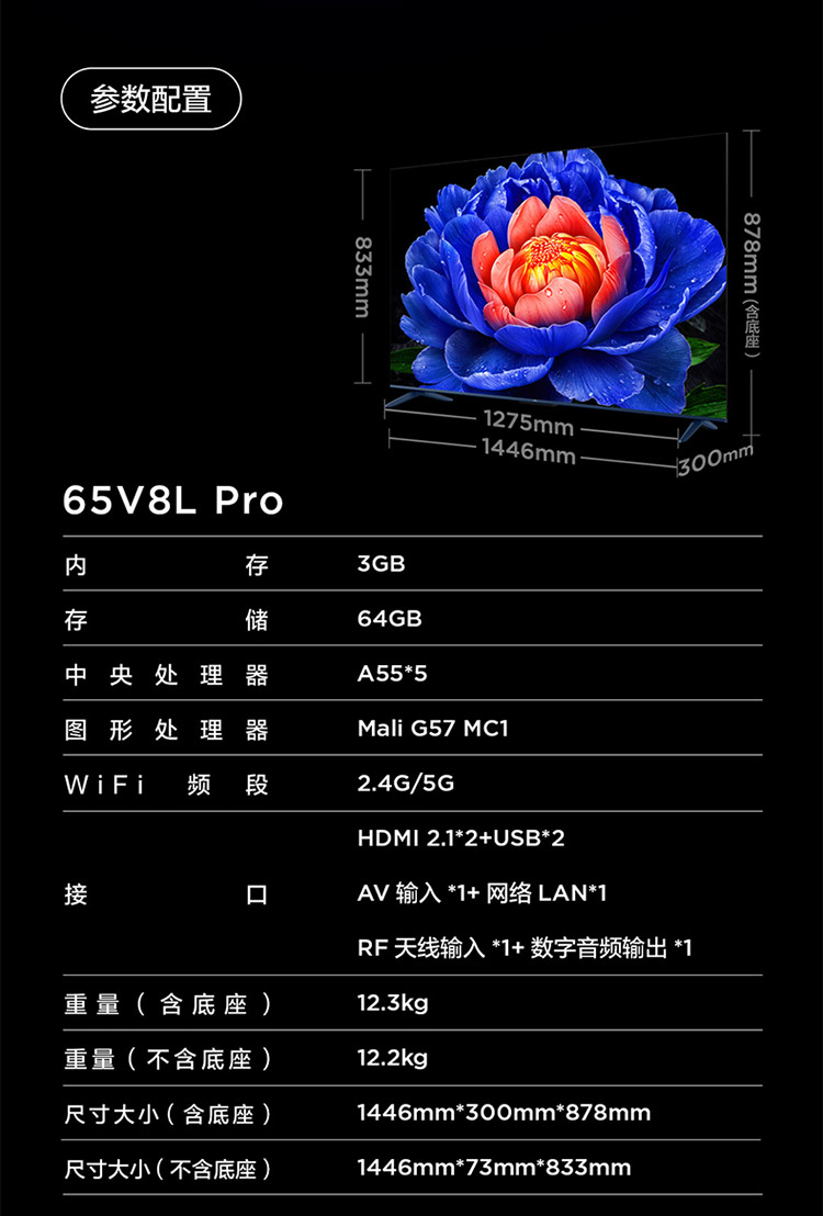 TCL电视 65V8L Pro 65英寸 144Hz QLED量子点 3GB+64GB大内存电视
