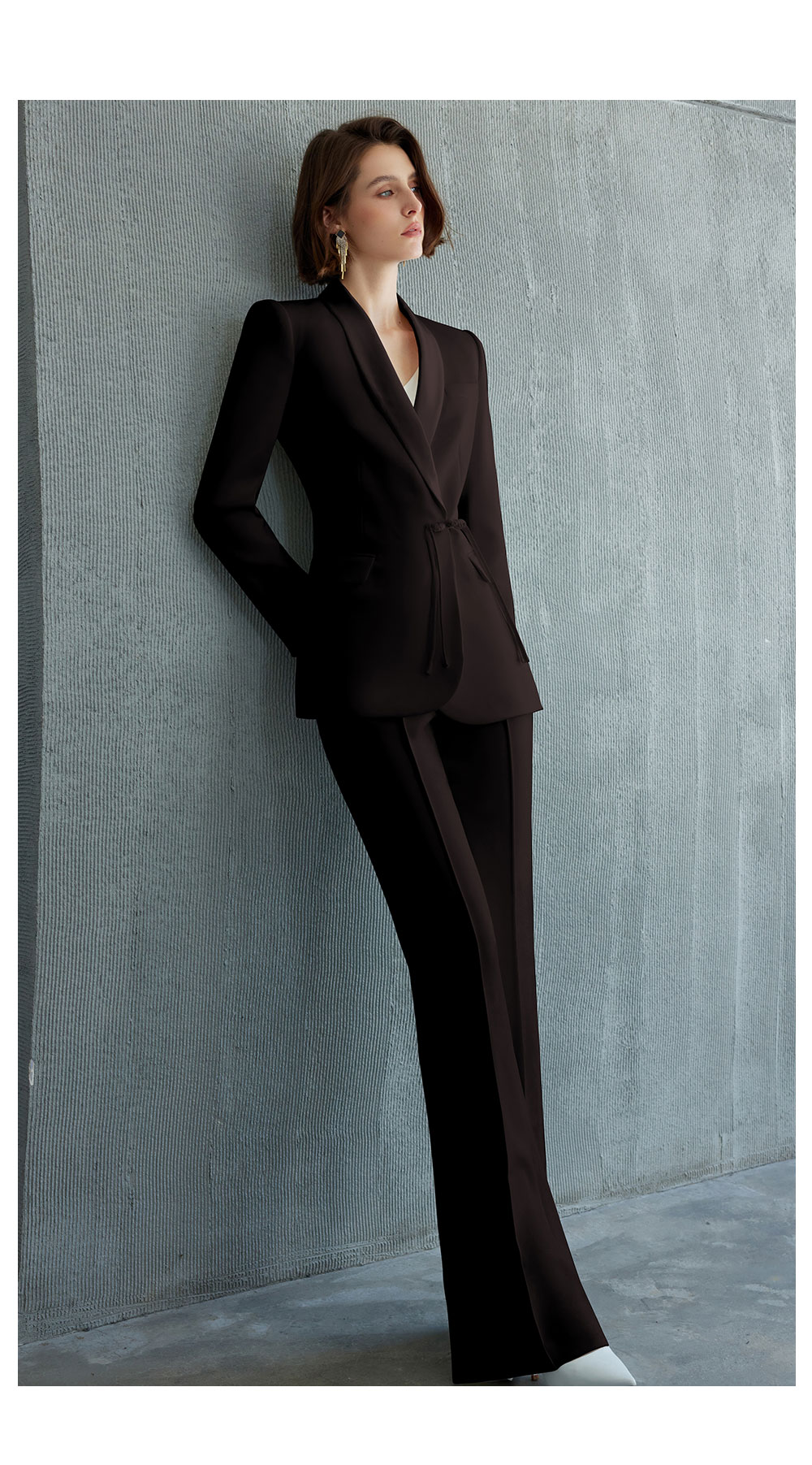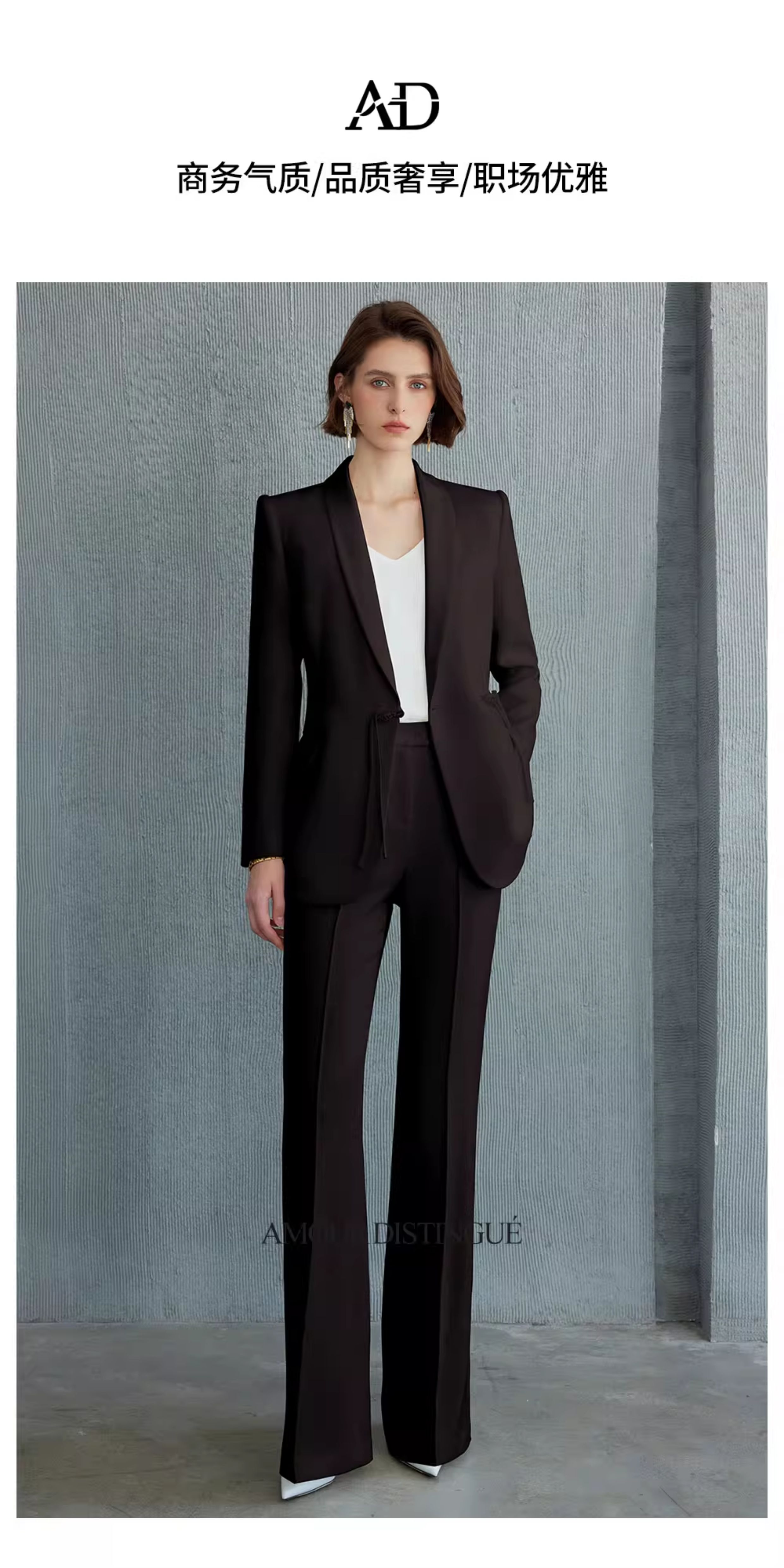 AD气质时尚红色西装套装春秋2025新款百搭通勤职业正装高腰阔腿裤