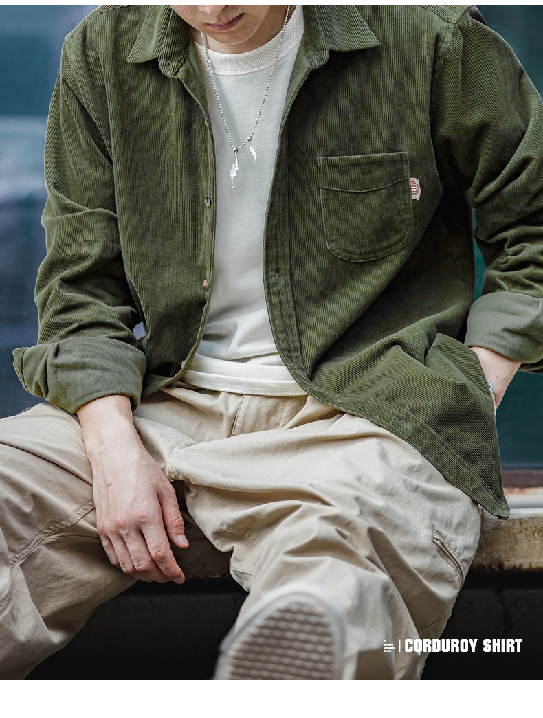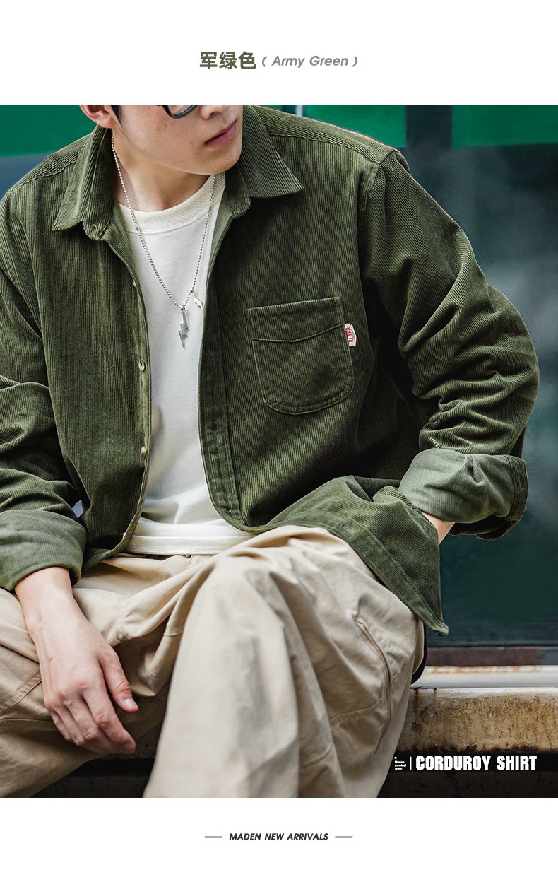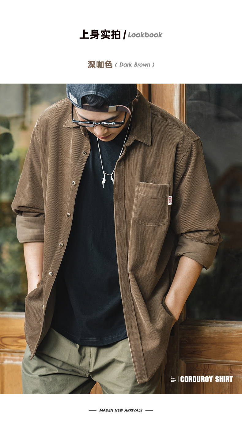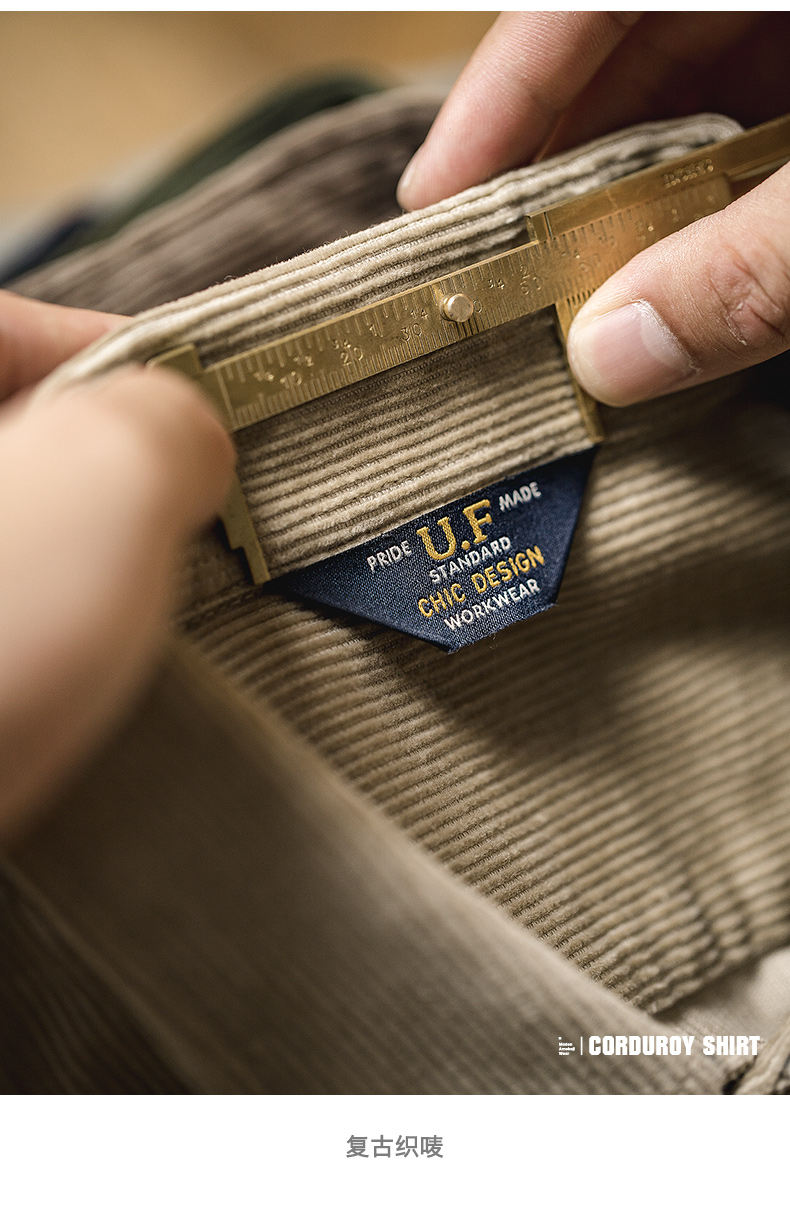 工装优选 美式休闲灯芯绒长袖衬衫修身叠穿内搭外套条绒寸衣男