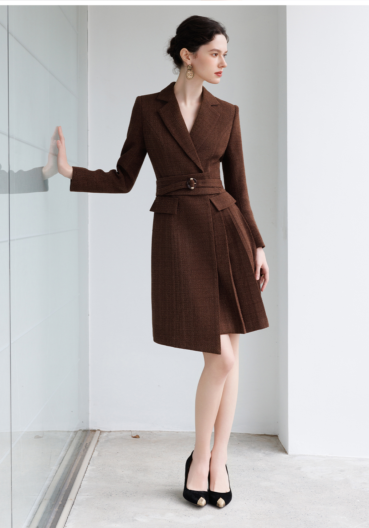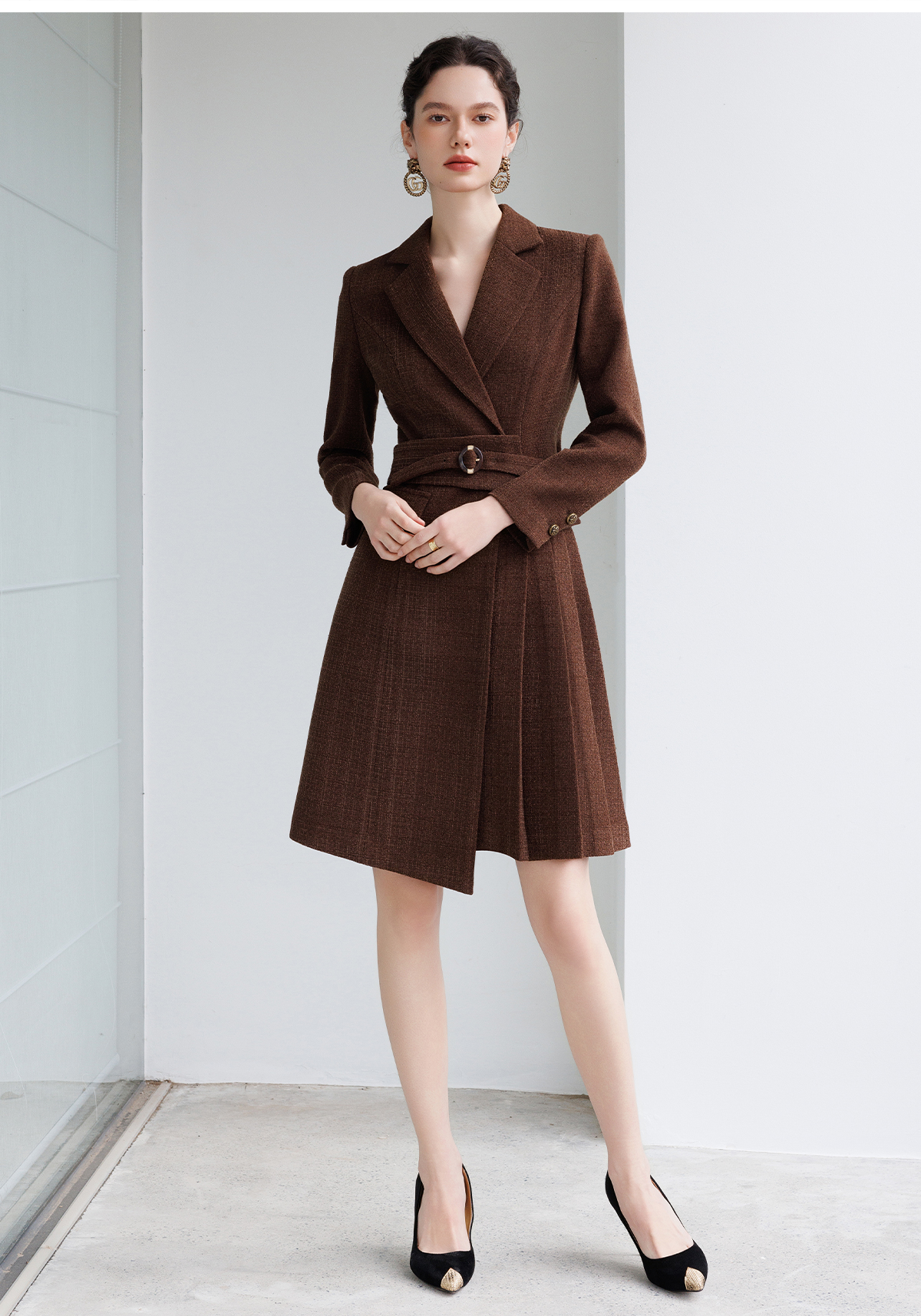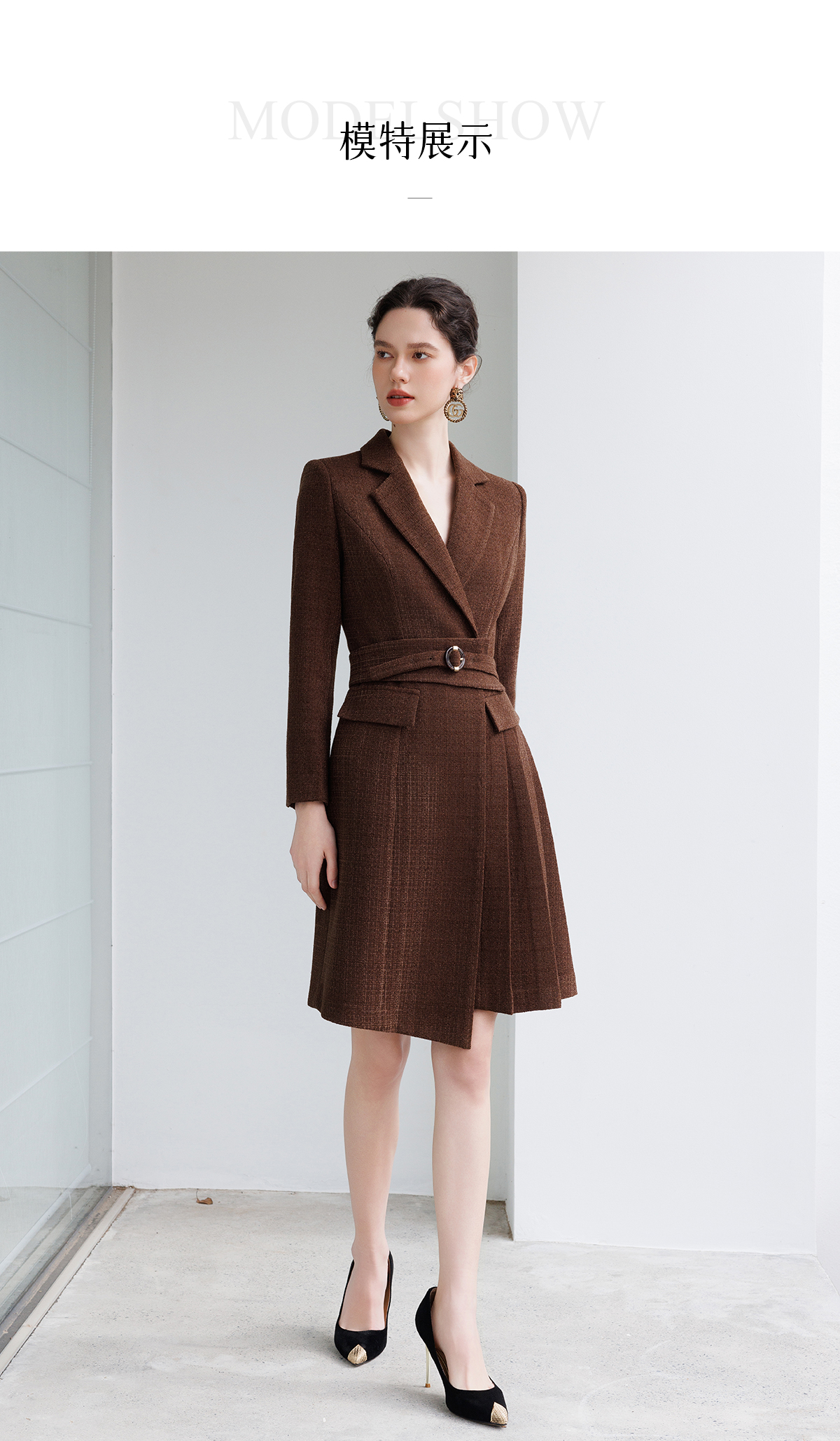 艾尚臣正式场合秋冬新款显瘦气质时髦穿搭高腰职业通勤西装连衣裙