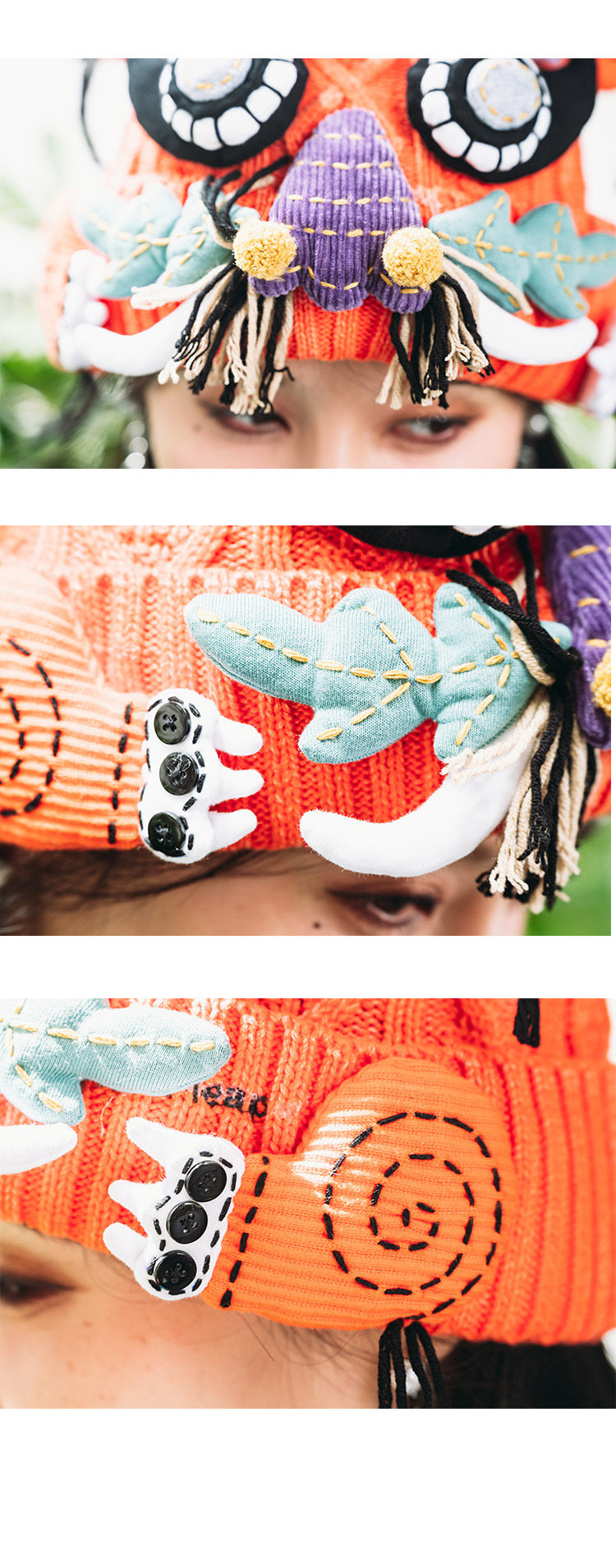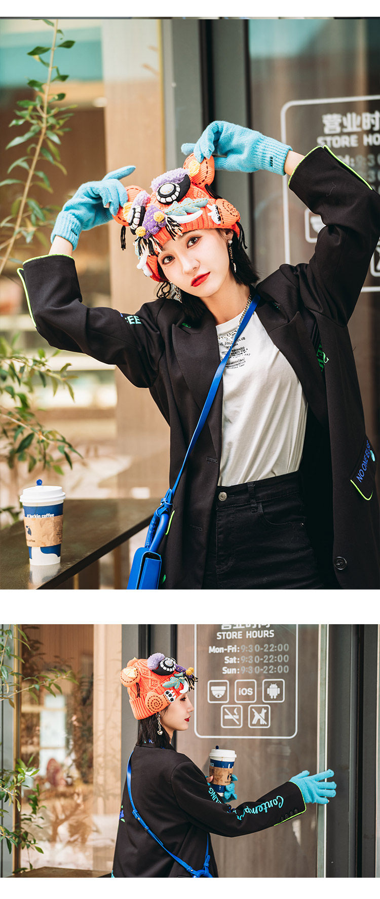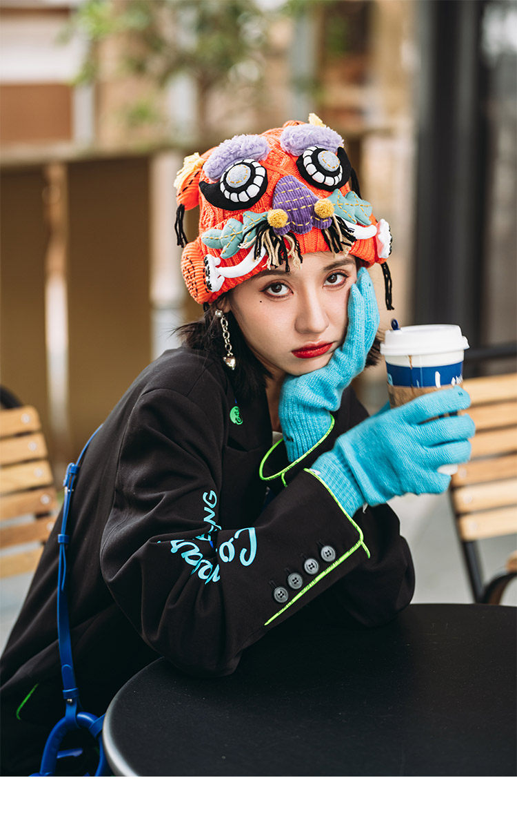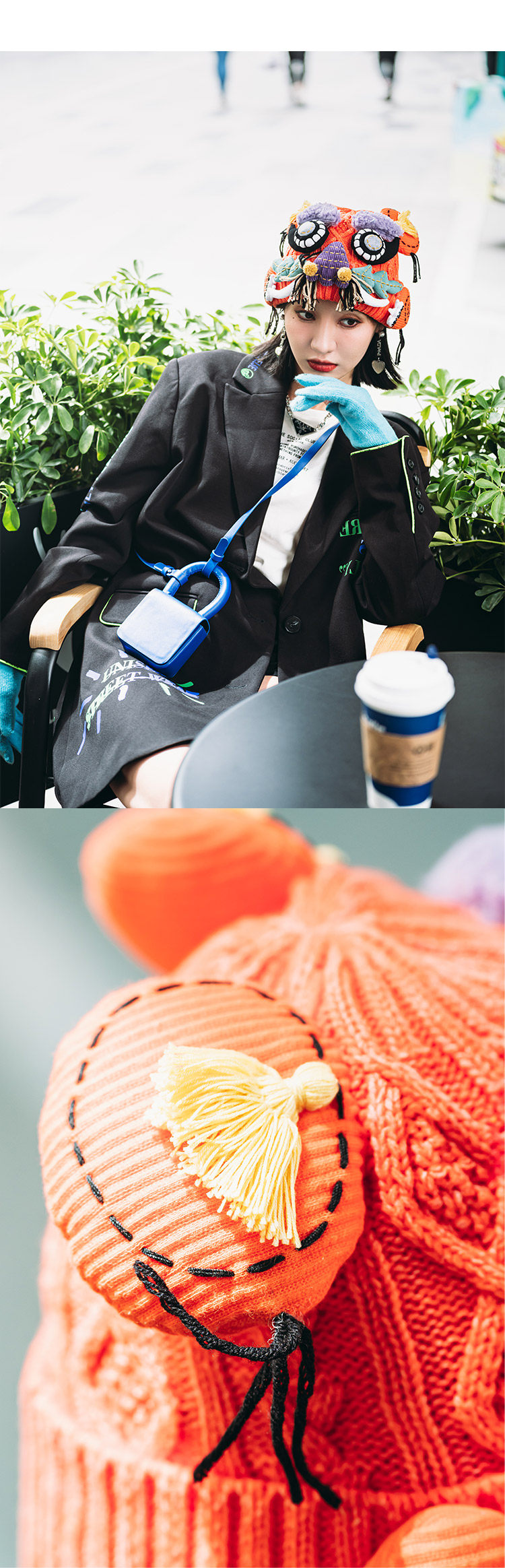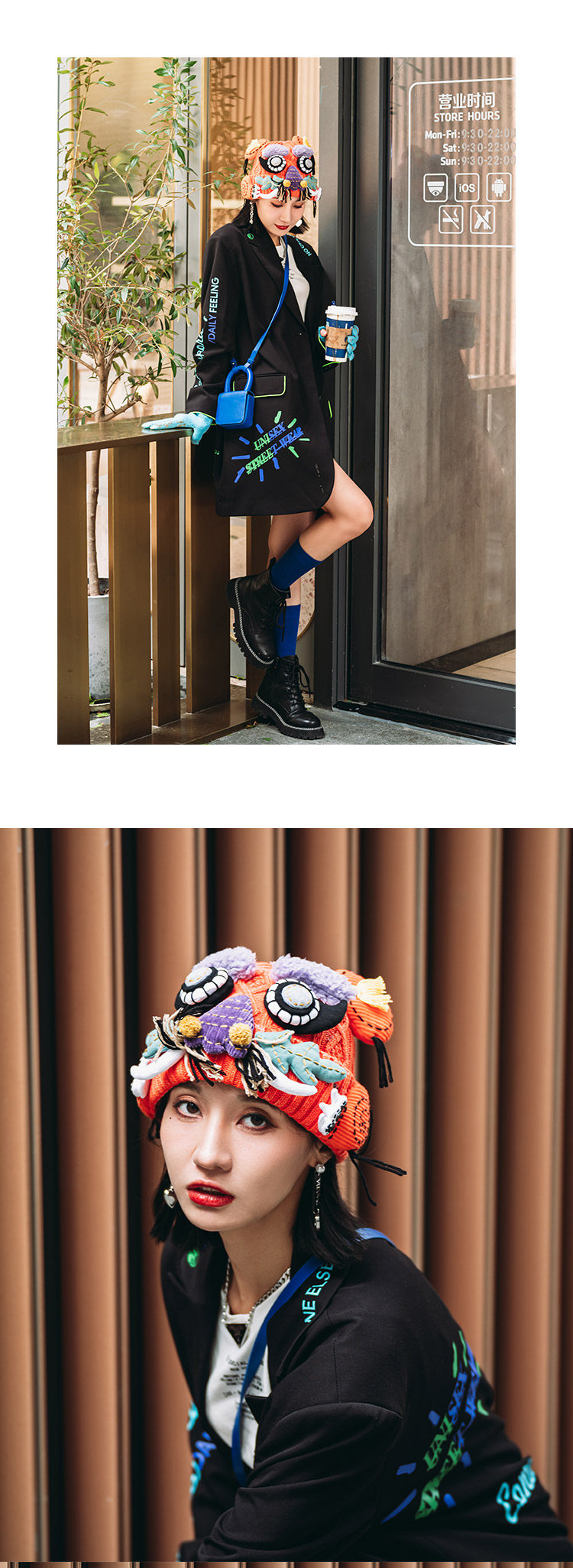 【1.21-2.6停发】芽小七原创设计虎头国潮毛织手工冬季帽子女保暖毛线成人针织帽