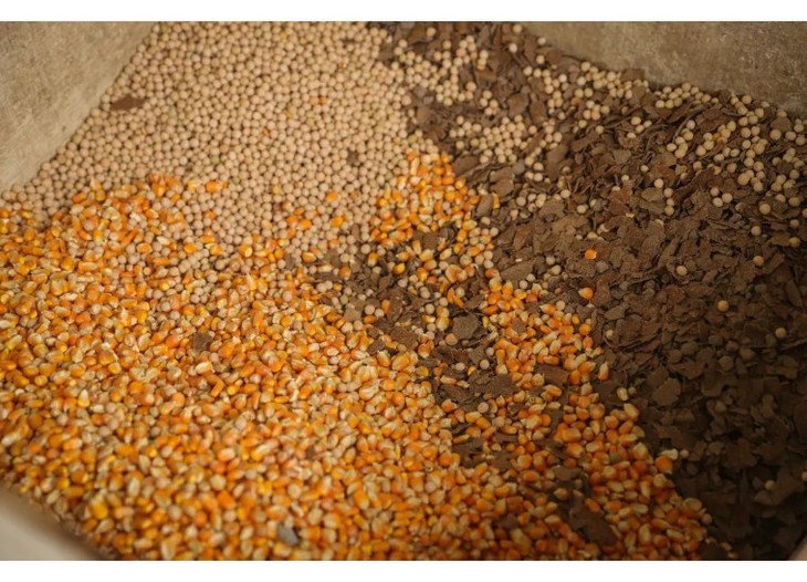 干净的口粮:我们养殖的鹌鹑不喂商品料,里面会有很多促生长、促产蛋的产品添加,我们使用非转基因玉米、麦麸、花生麸、豌豆等,按照一定的配比,喂养鹌鹑,满足它营养摄取。