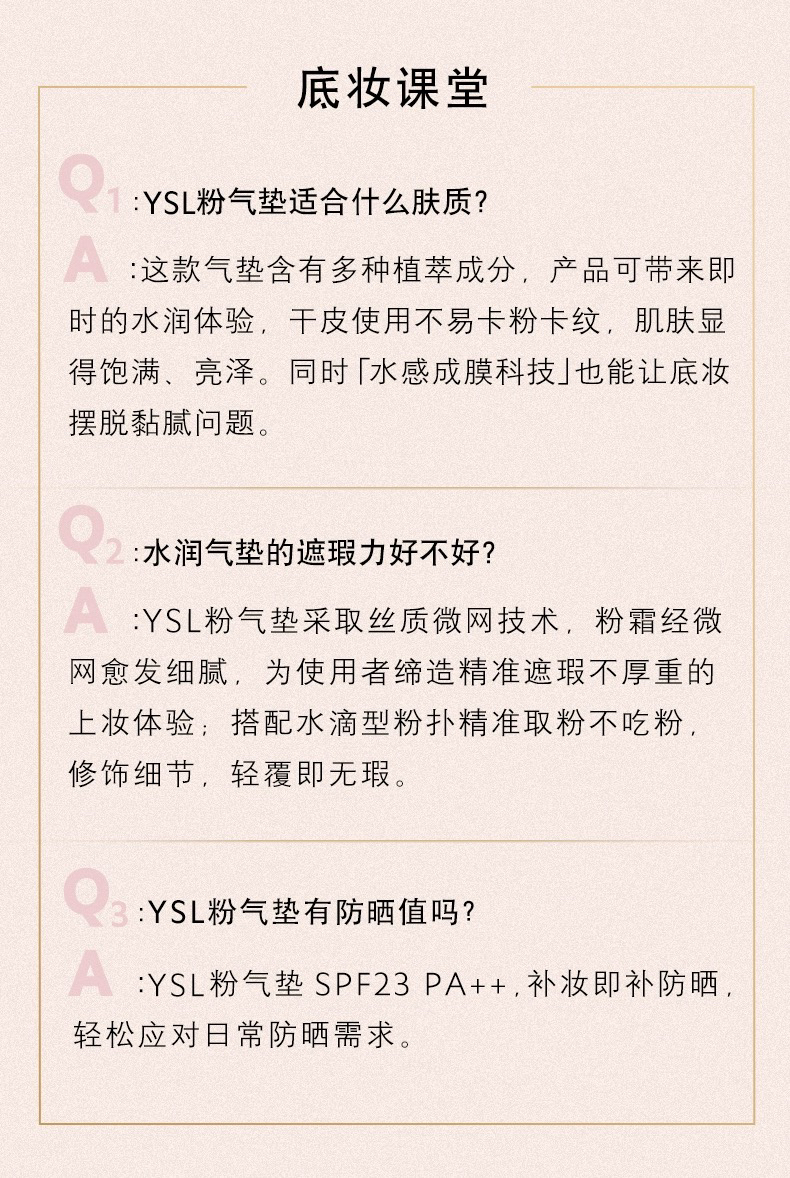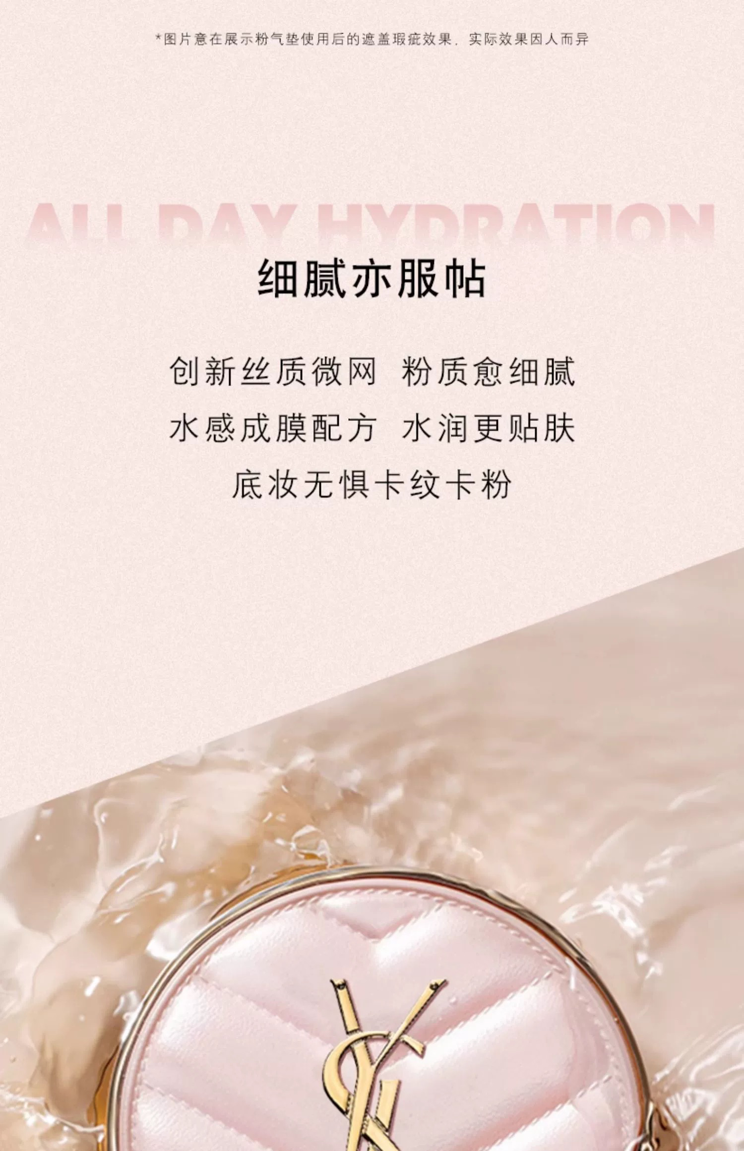 【轻覆无暇 水感粉光】YSL圣罗兰粉气垫 持久遮瑕轻薄细腻保湿干皮挚爱