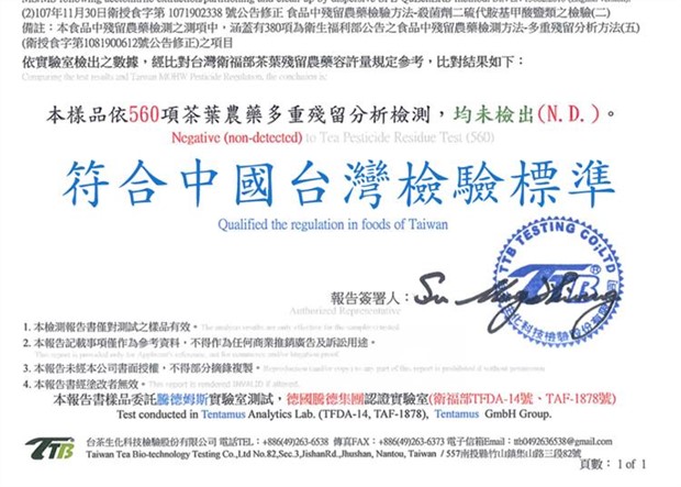 中国台湾农试所「生化检验班」受训合格,并推行业界首创之「先验后吃」活动