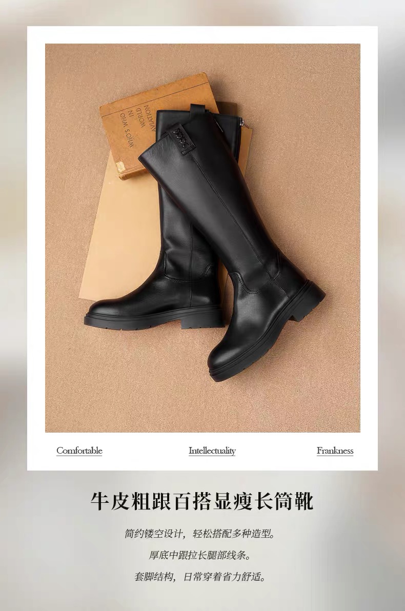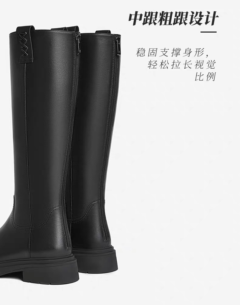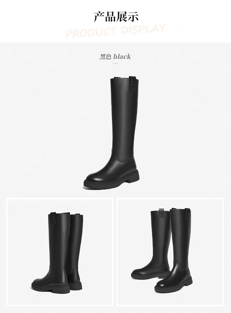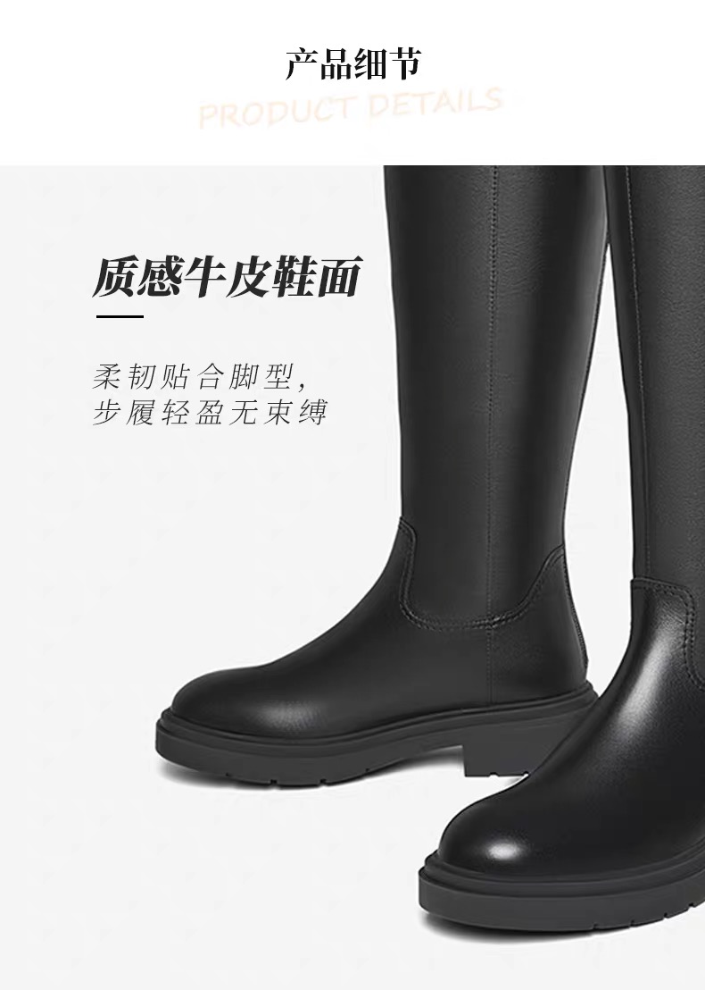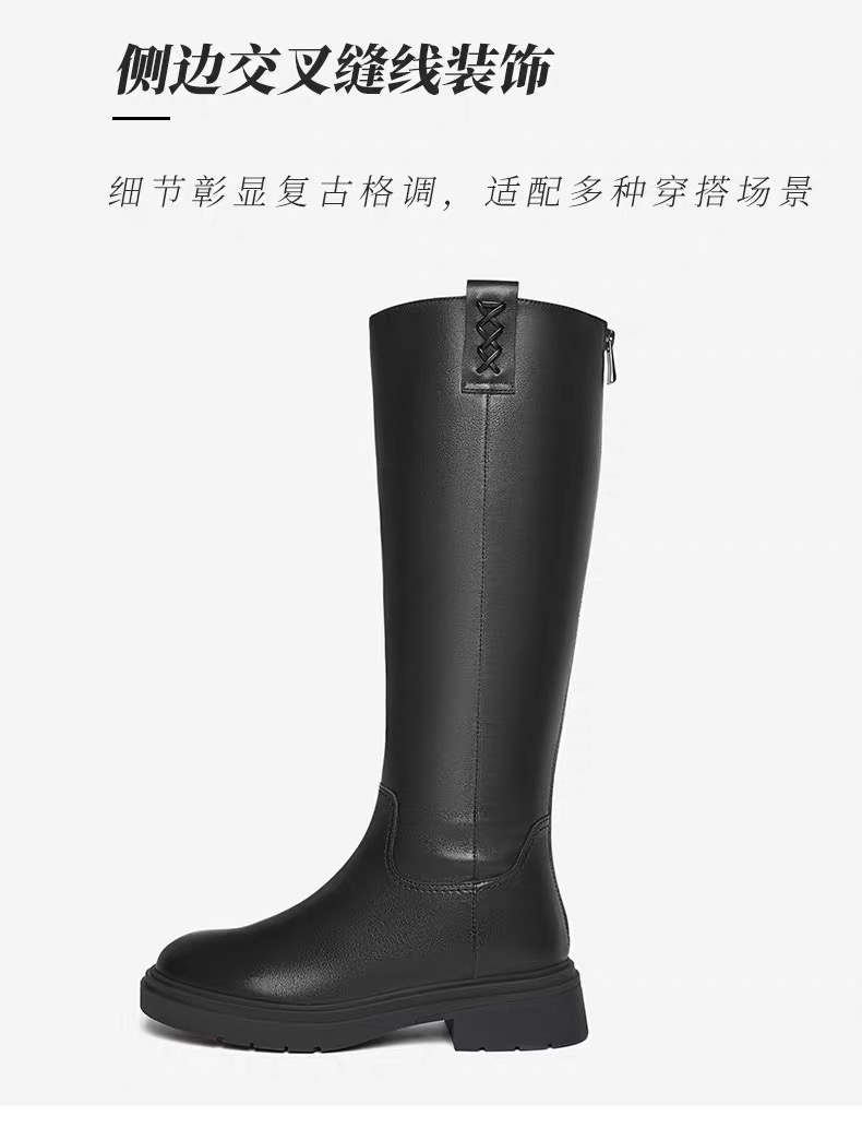 【云粉节】BF楼Bata及膝骑士靴女2025冬款牛皮粗跟百搭长筒靴AC247DG5 吊牌价2059 活动价1399