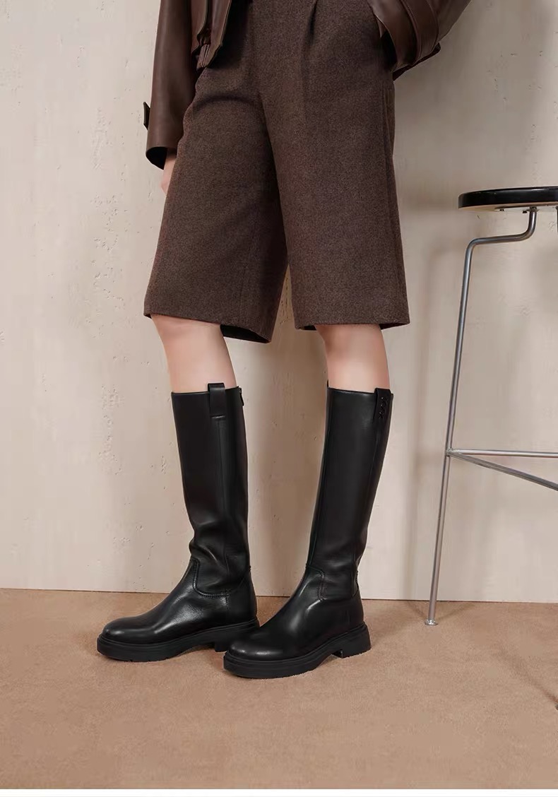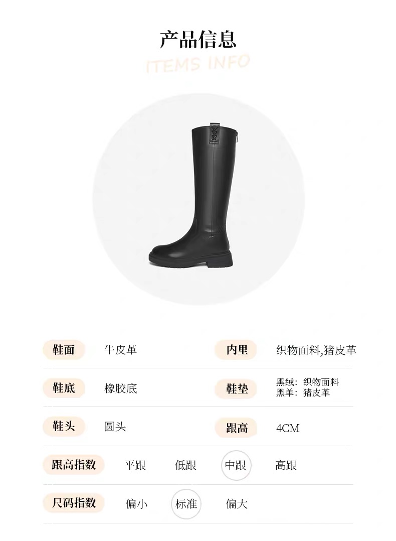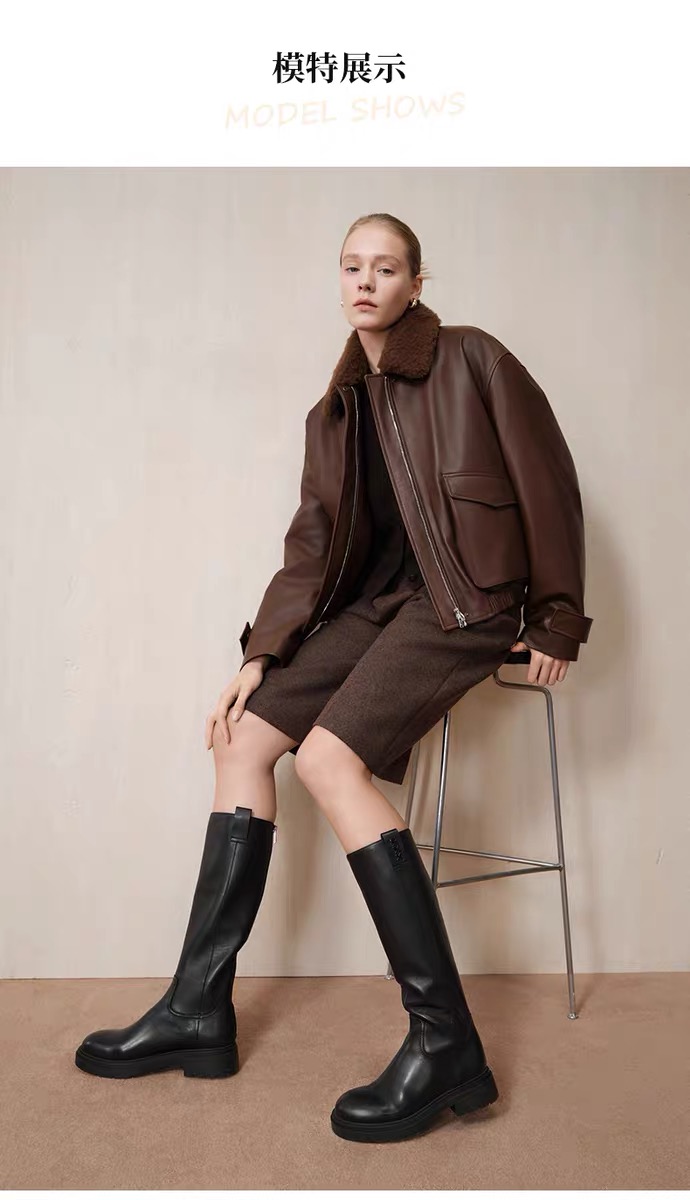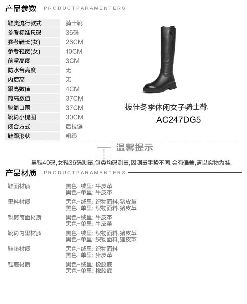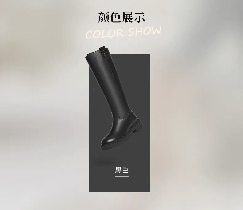 【云粉节】BF楼Bata及膝骑士靴女2025冬款牛皮粗跟百搭长筒靴AC247DG5 吊牌价2059 活动价1399