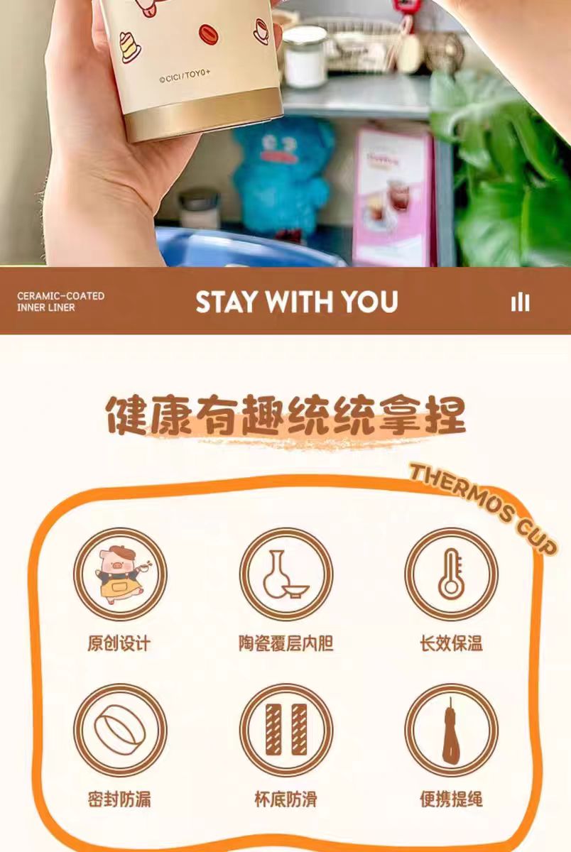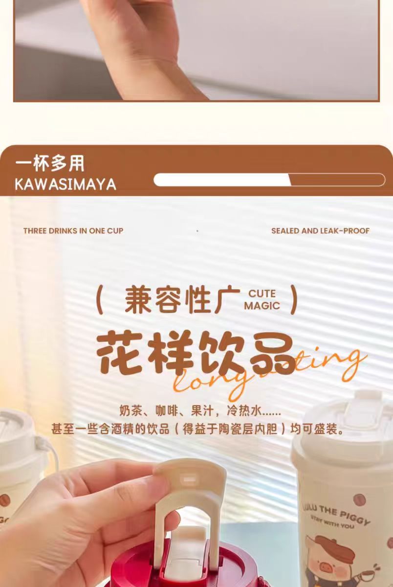 4楼Eubelle欧蓓 川岛屋&lulu猪联名 保温吸管杯520ml 高颜值咖啡杯 活动价:79元