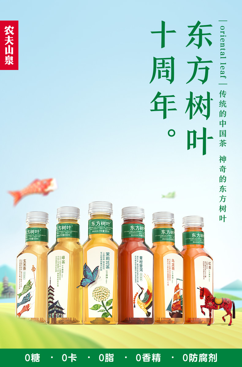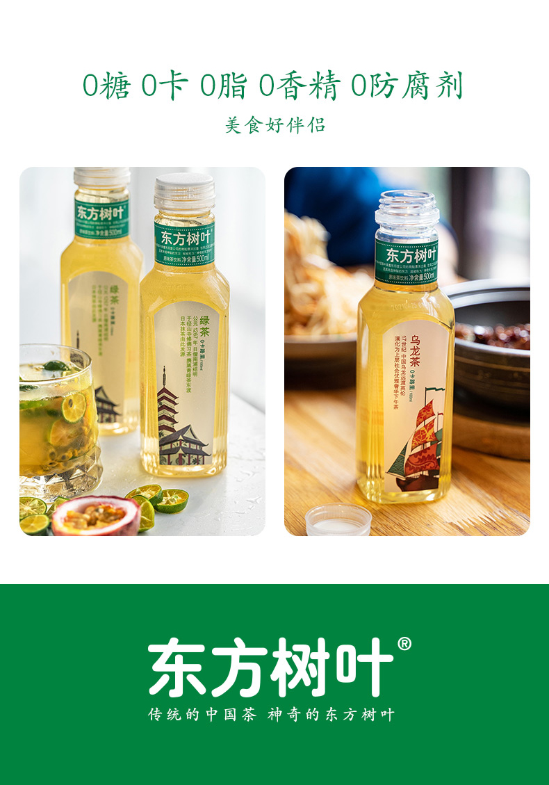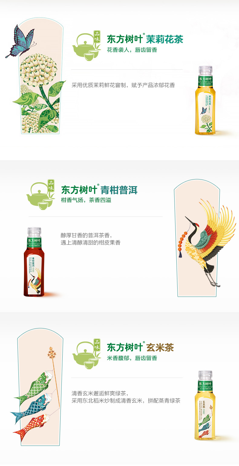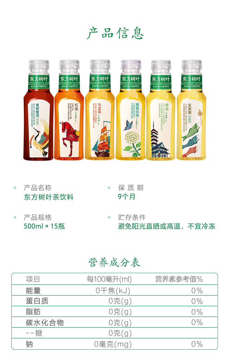 农夫山泉 东方树叶茶饮料 茉莉花味或青柑普洱随机500ML*3瓶