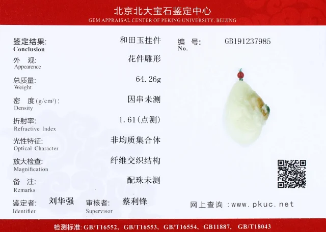 赠证书(证书编号GB191237985)
