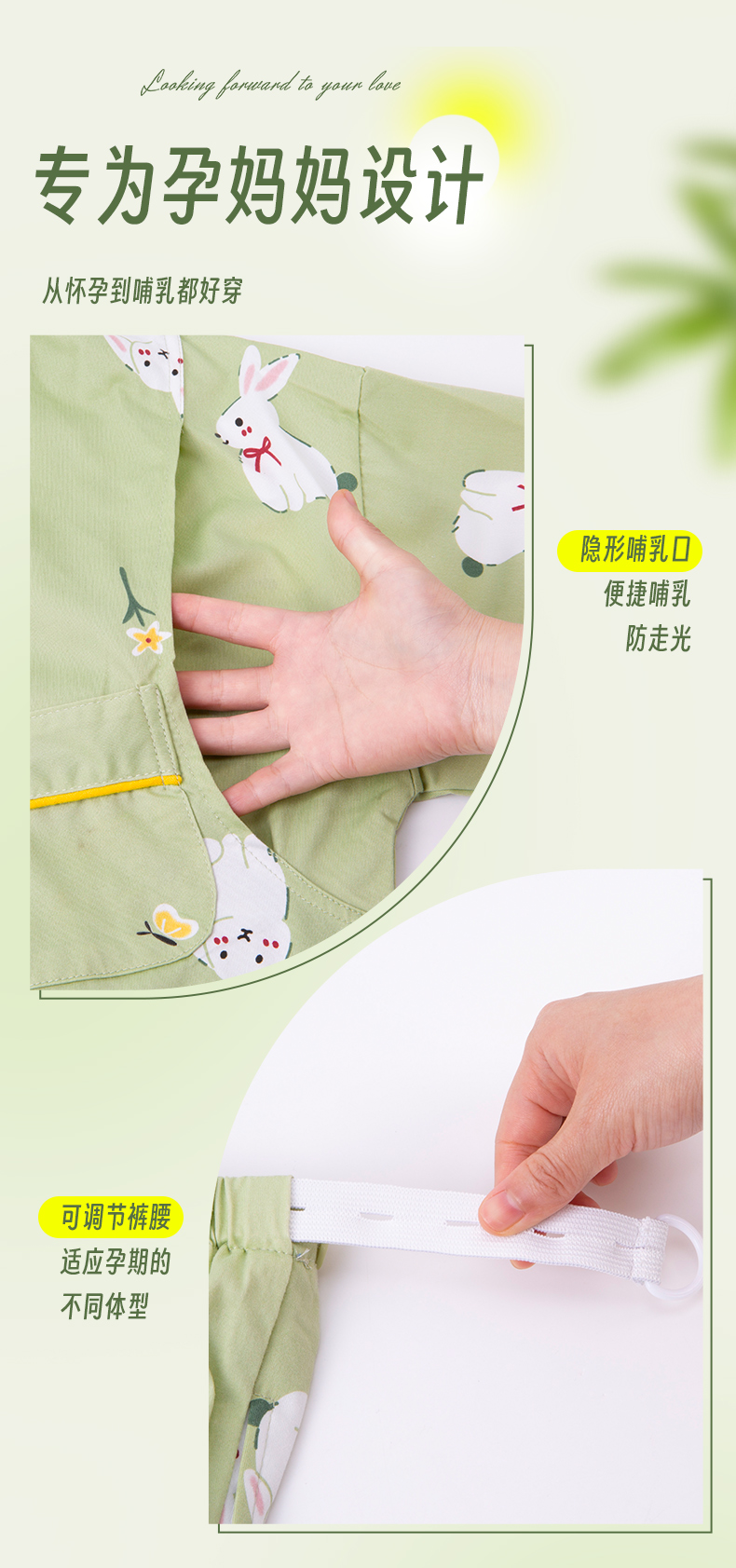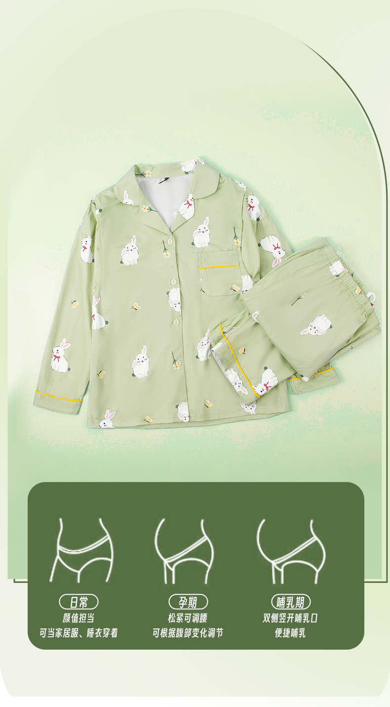 贝贝怡【便携哺乳可调腰孕月子服】25春夏新款孕产妇家居服透气月子服ZB1EY002