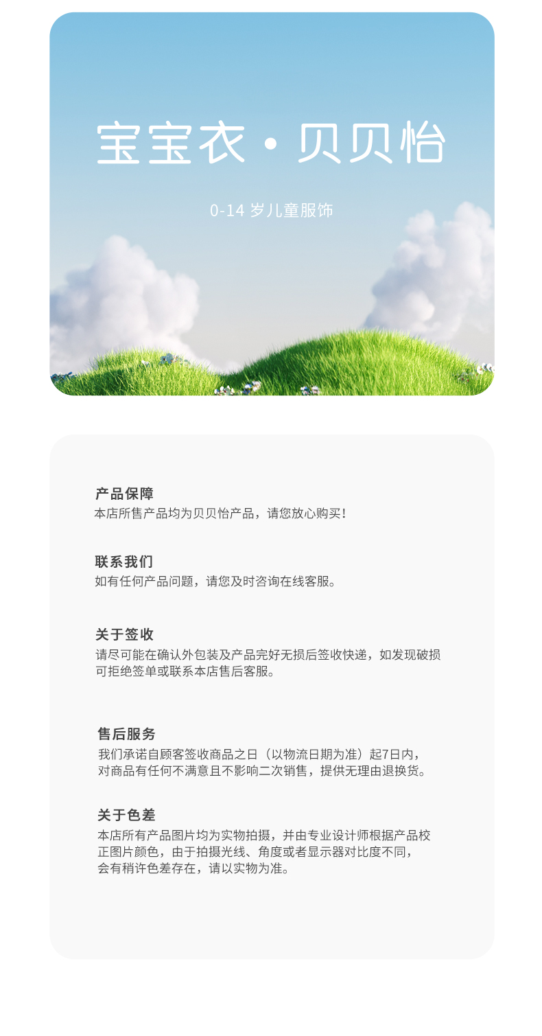 - 贝贝怡专注0-6岁婴幼儿服饰,坚持安全、柔软、舒适的产品理念,为千万中国家庭提供超高品质、安全可靠的婴幼儿服饰产品,妈妈放心,宝宝开心!