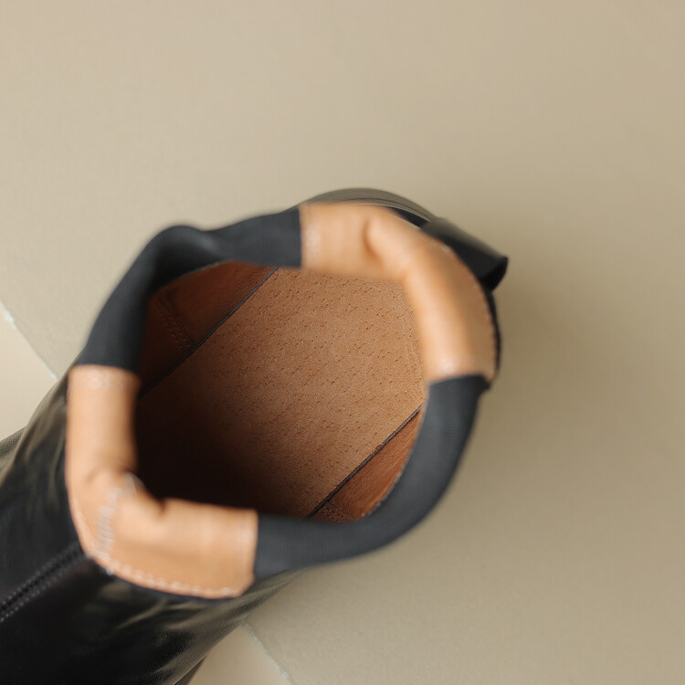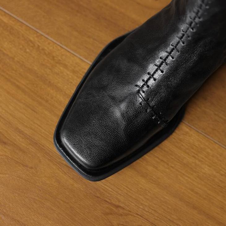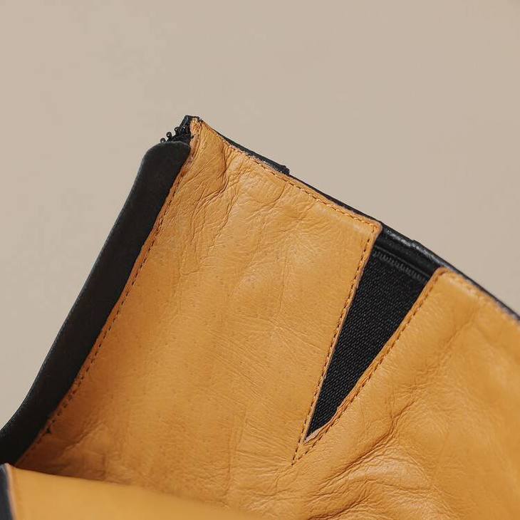靴筒由牛皮皮革拼接针,鞋型无论正面还是背面都立体有型,就有一种简约大气的高级感!