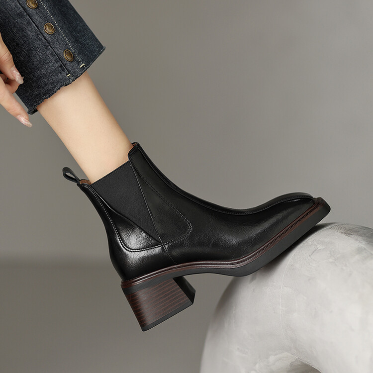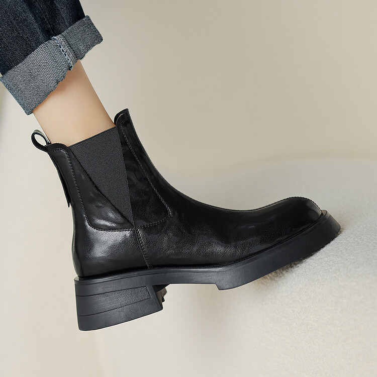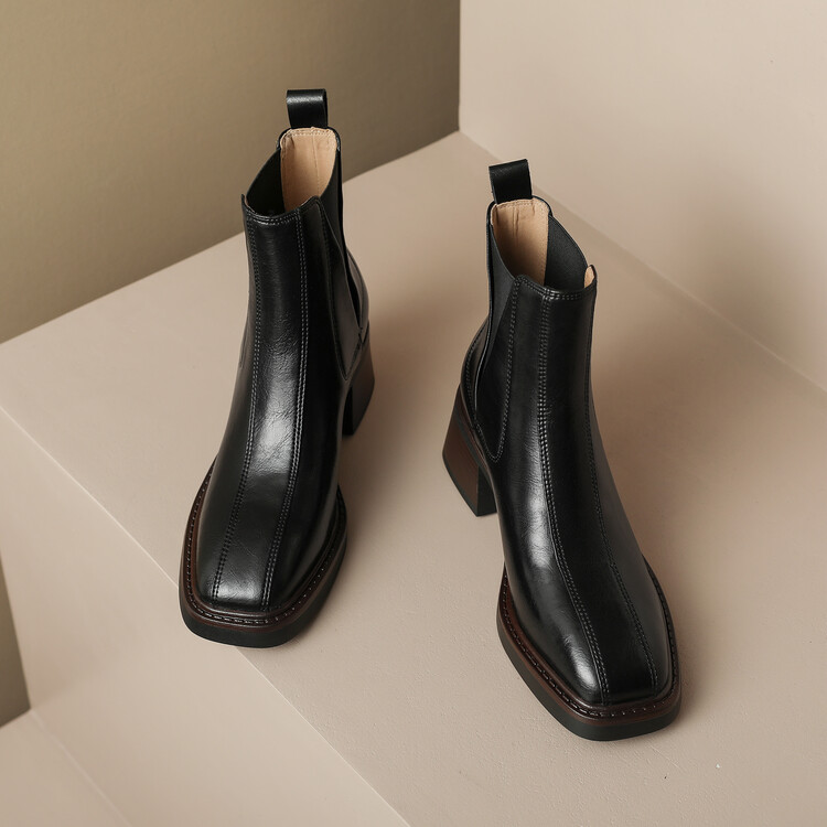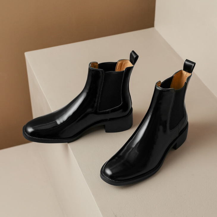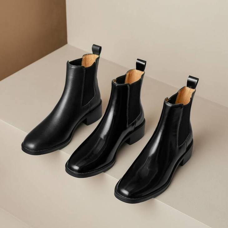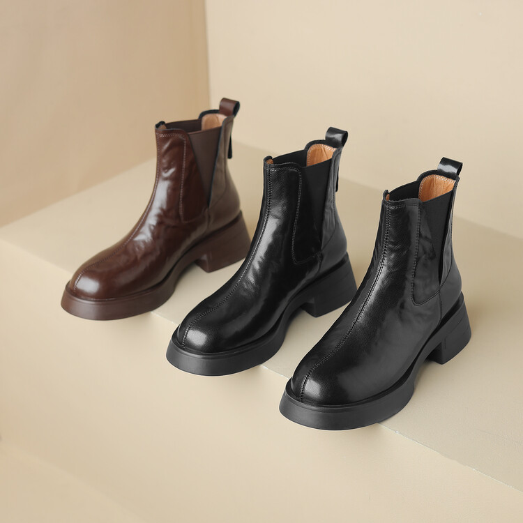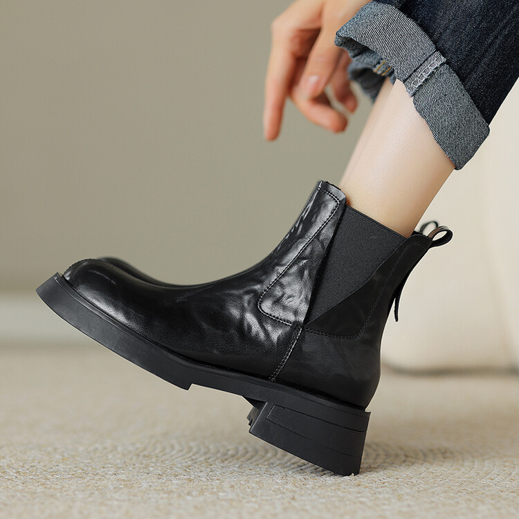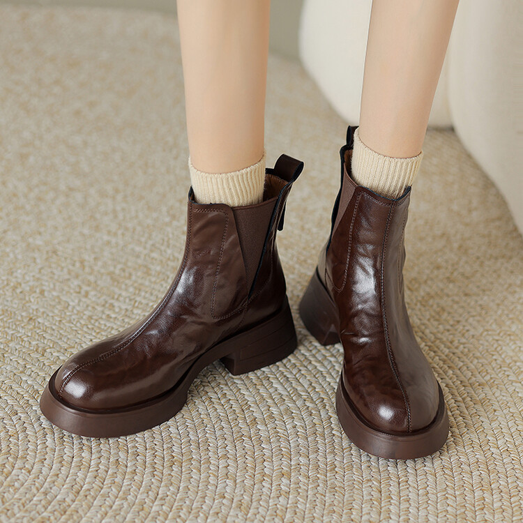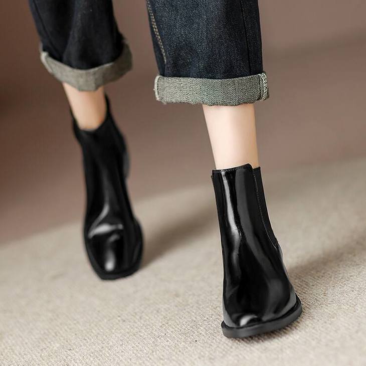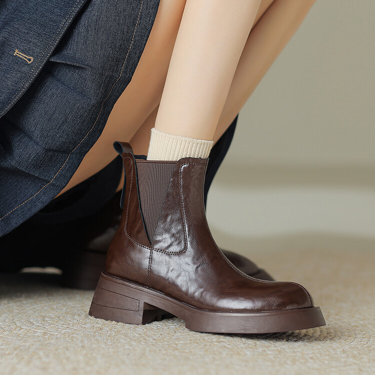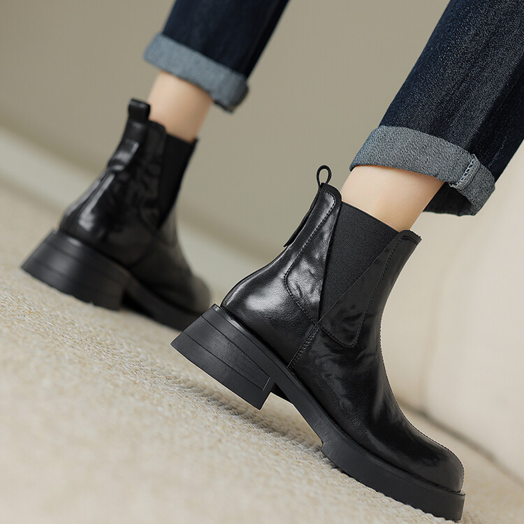 这款是带着厚底的切尔西,脚踝处有弧度设计,品质和修饰腿型方面真的绝绝子,能把脚踝修饰瘦瘦的!