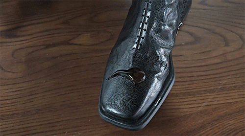 使用好皮料的靴子,自带细腻光泽与自然纹理,随着穿着者会逐渐形成专属的褶皱,记录时光的痕迹。