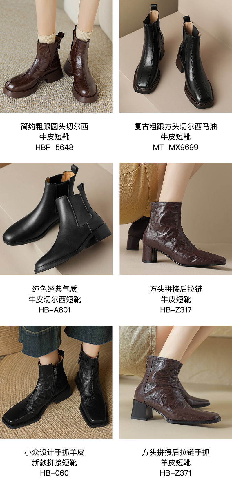 全场都是头层牛皮、小羊皮的短靴当季新出的时髦款。