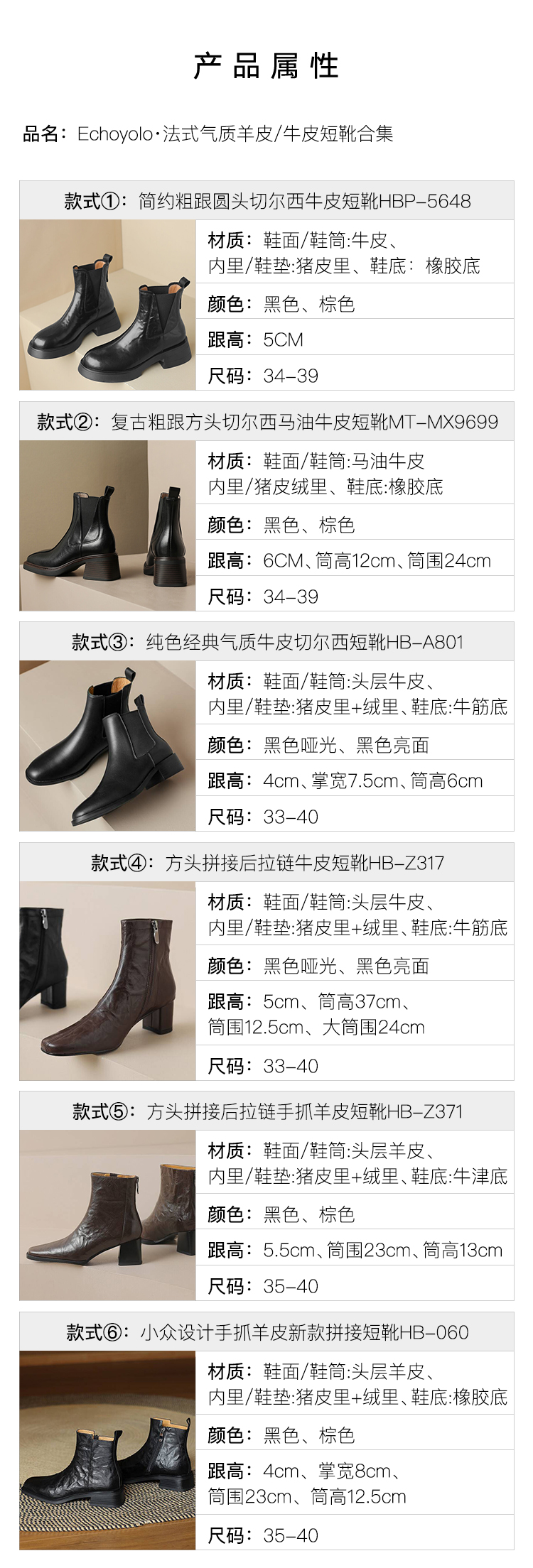 Echoyolo法式气质羊皮/牛皮短靴合集 | 穿十年都不过时,职场通勤王炸,轻松拿捏穿搭高级感【5-7天发货】