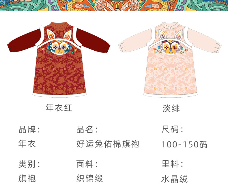 [屁侠推荐]年衣童装 中国风旗袍 女童连衣裙 宝宝拜年服 好运兔佑棉旗袍 红/淡绯