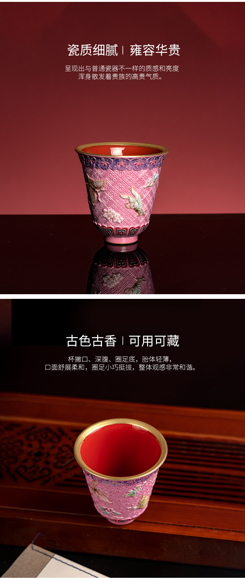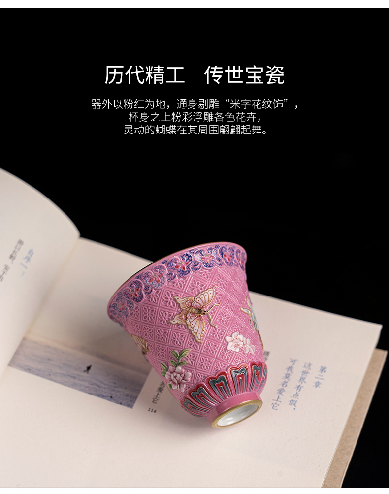 (预)【宝】粉地雕刻蝶恋花铃铛杯