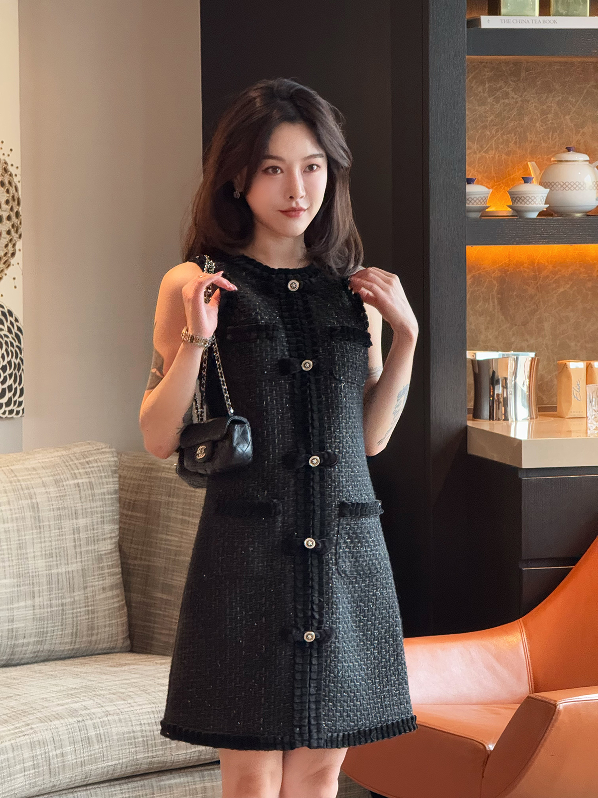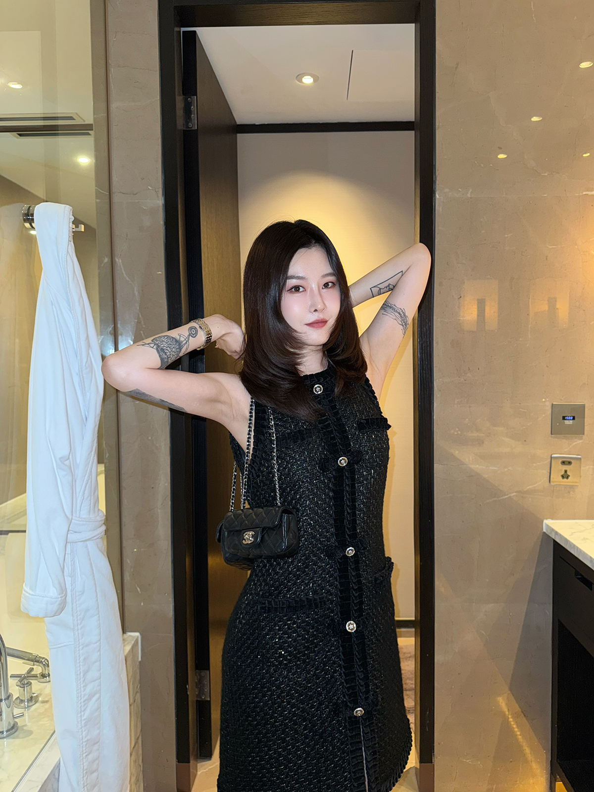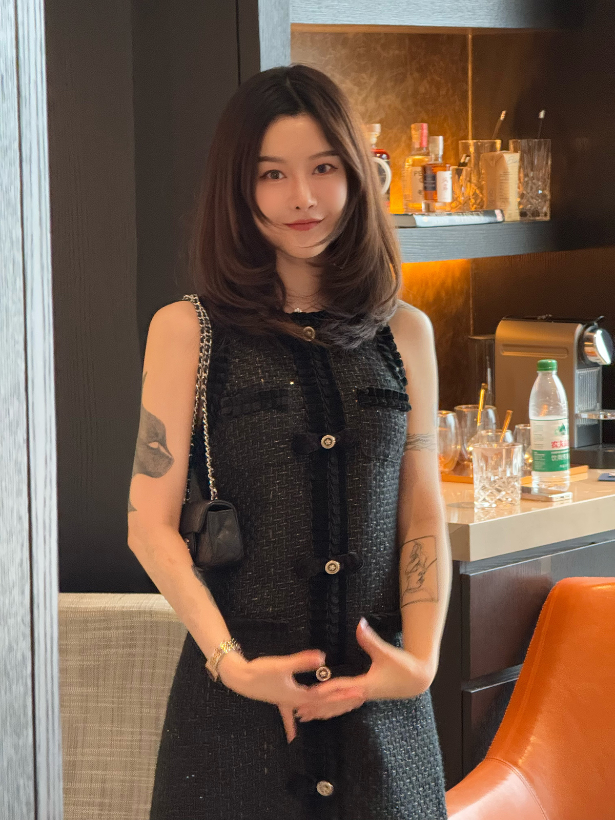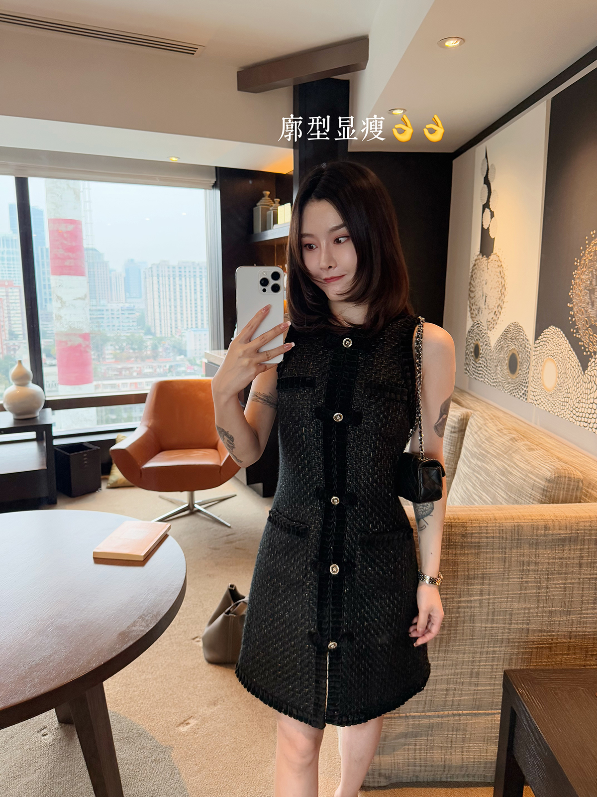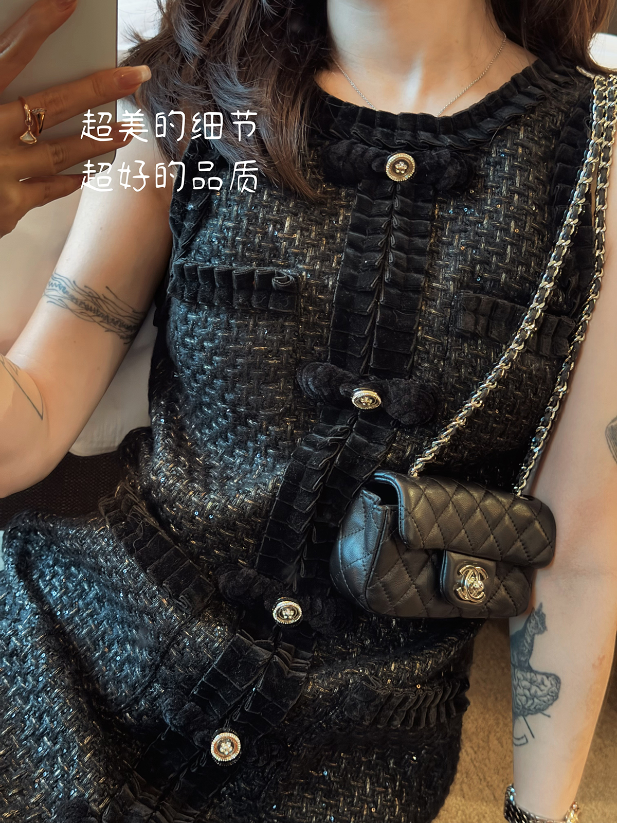 山茶花lady优雅黑银小香风傲娇长裙和背心