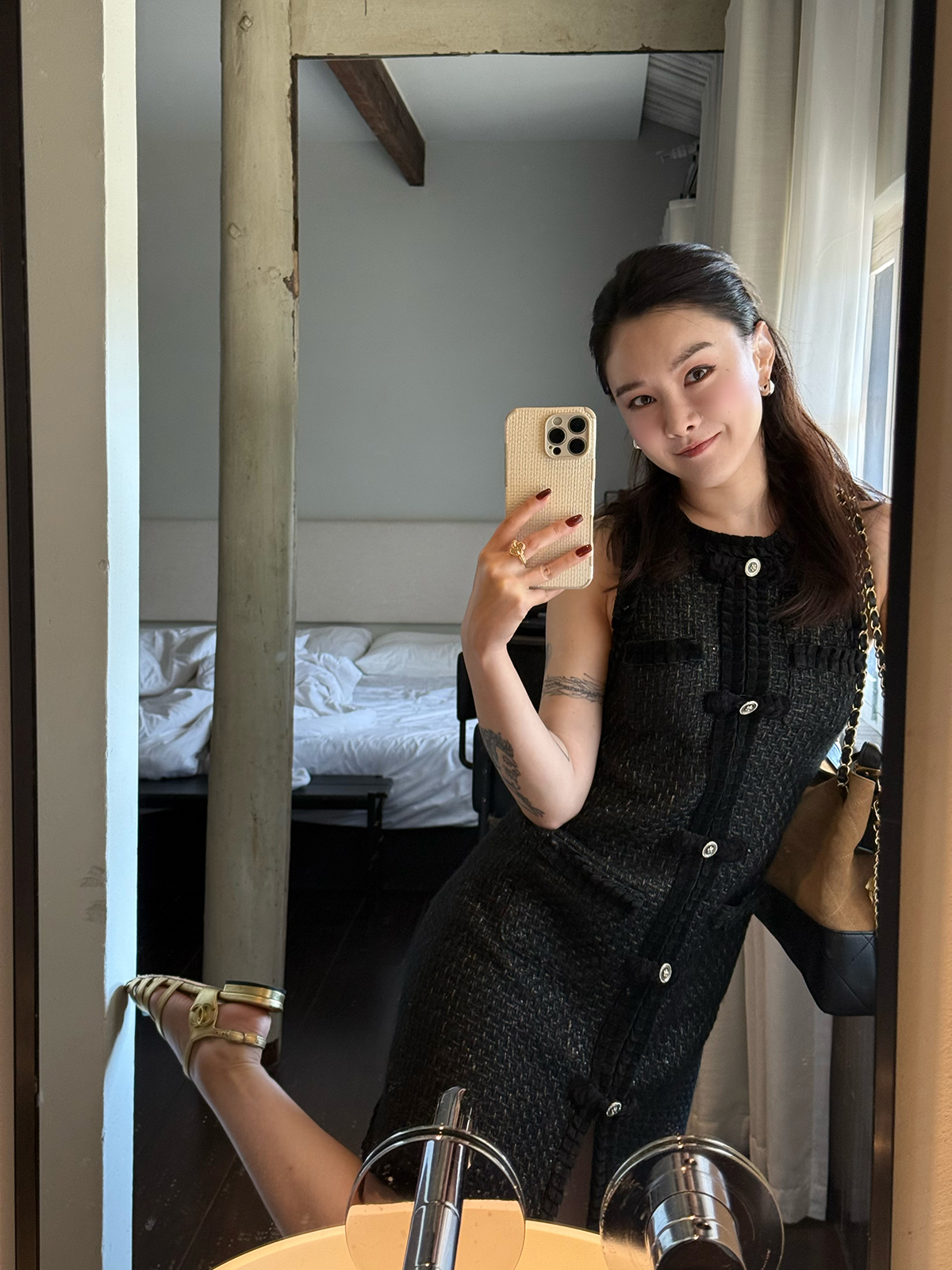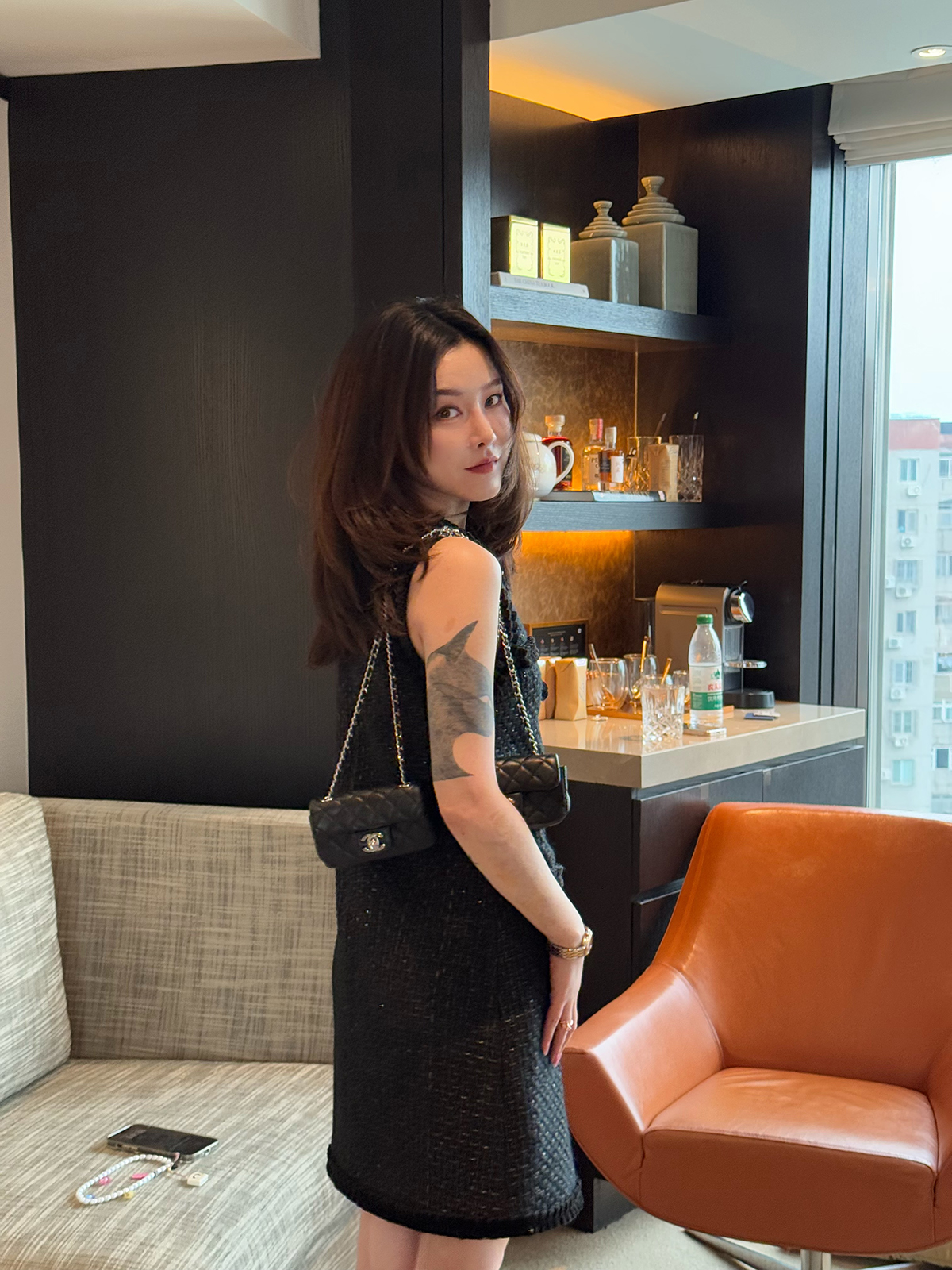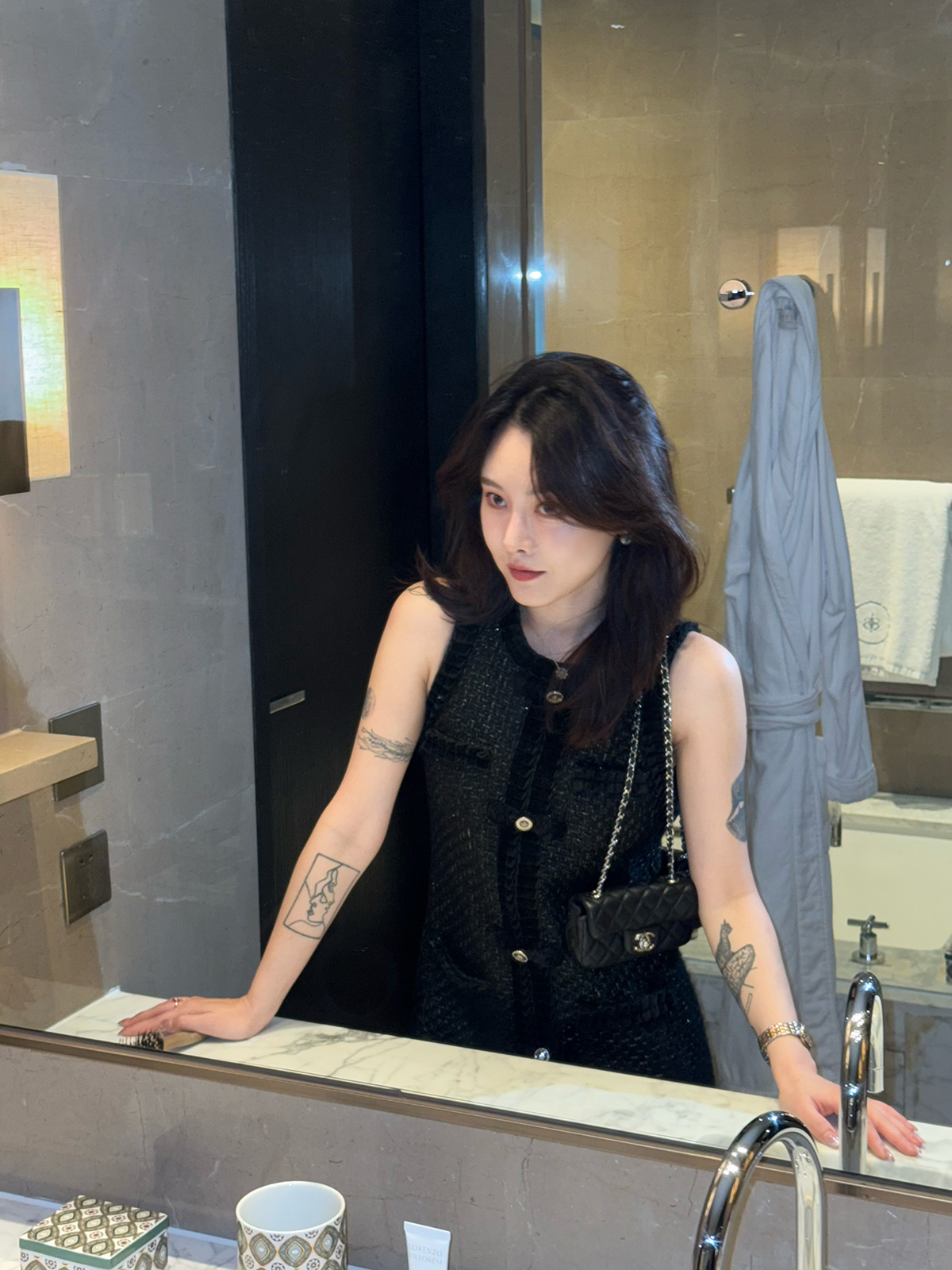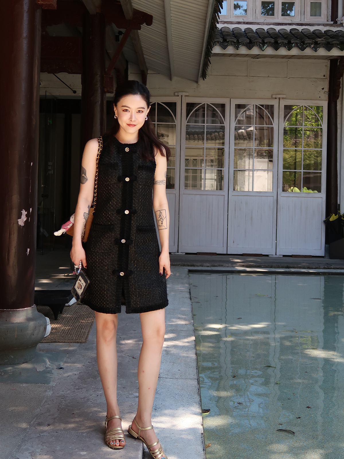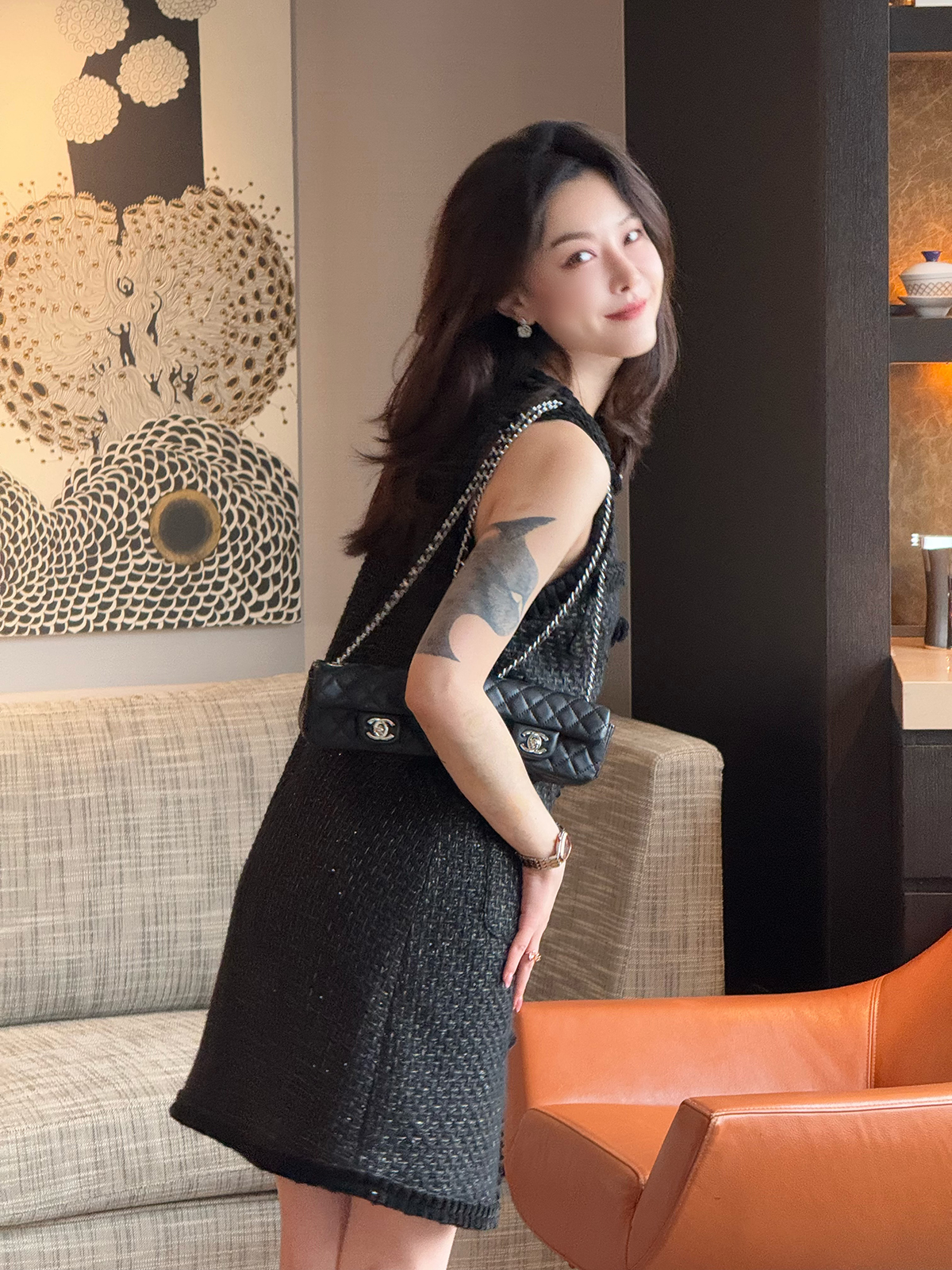 山茶花lady优雅黑银小香风傲娇长裙和背心