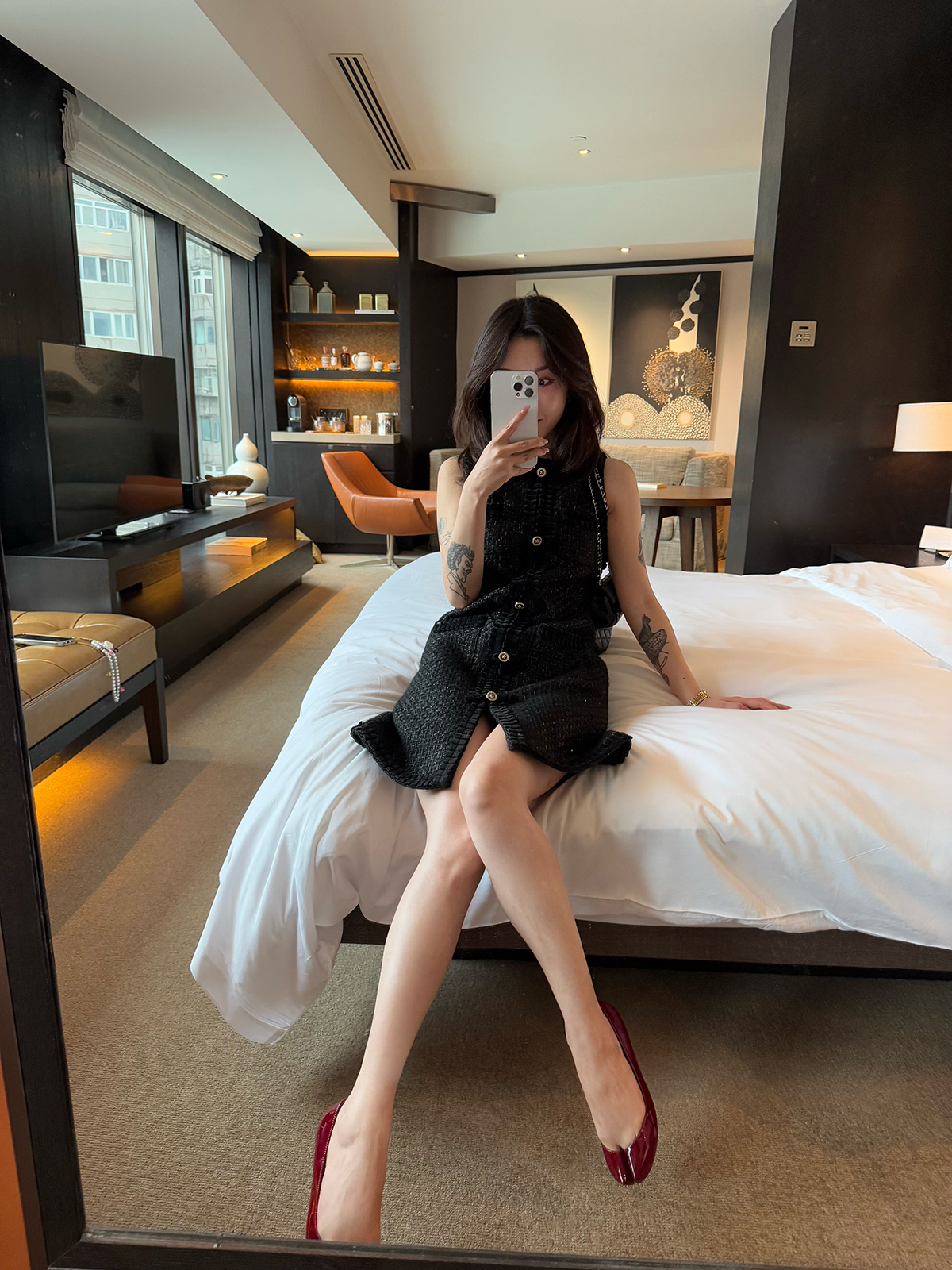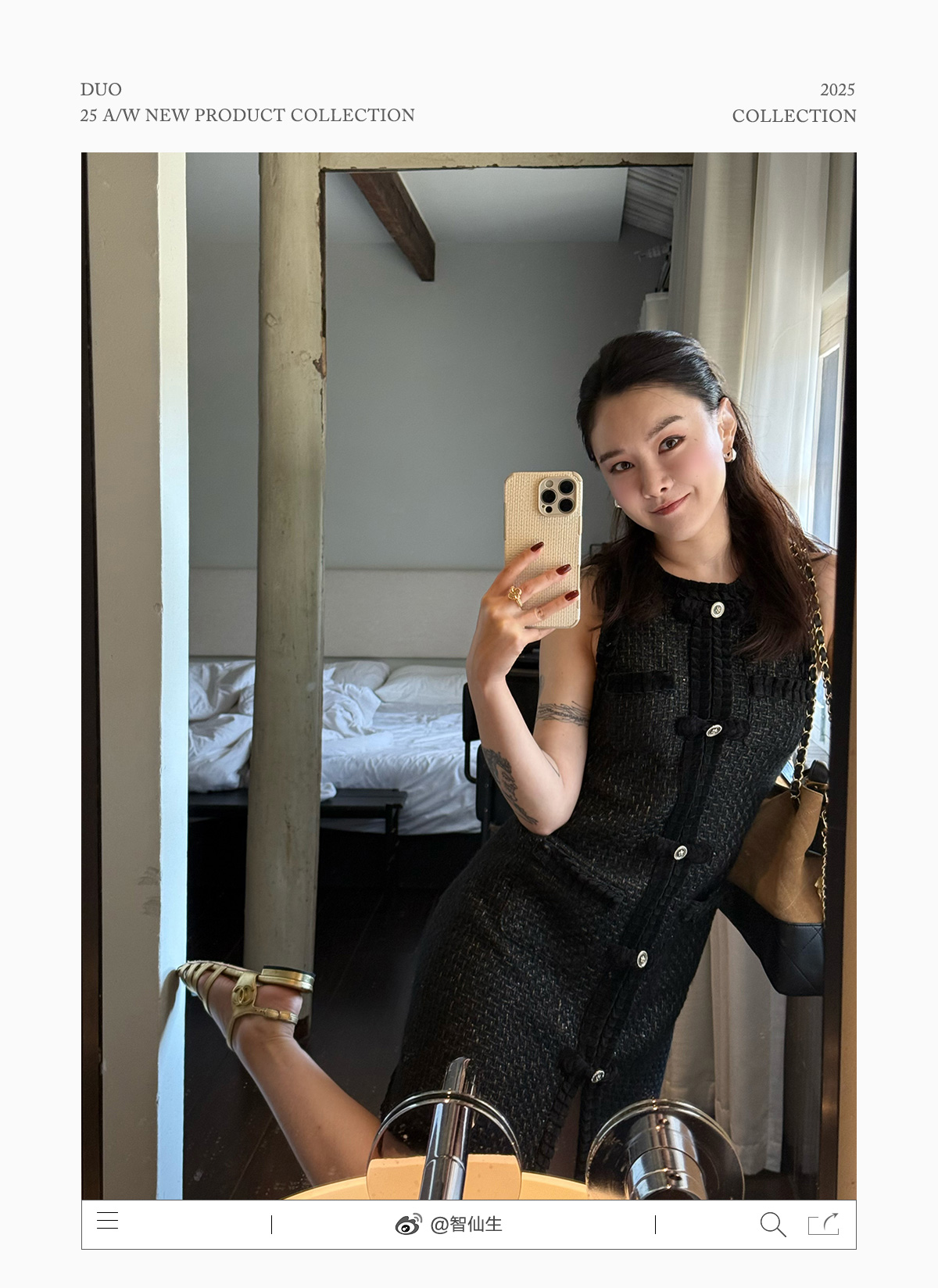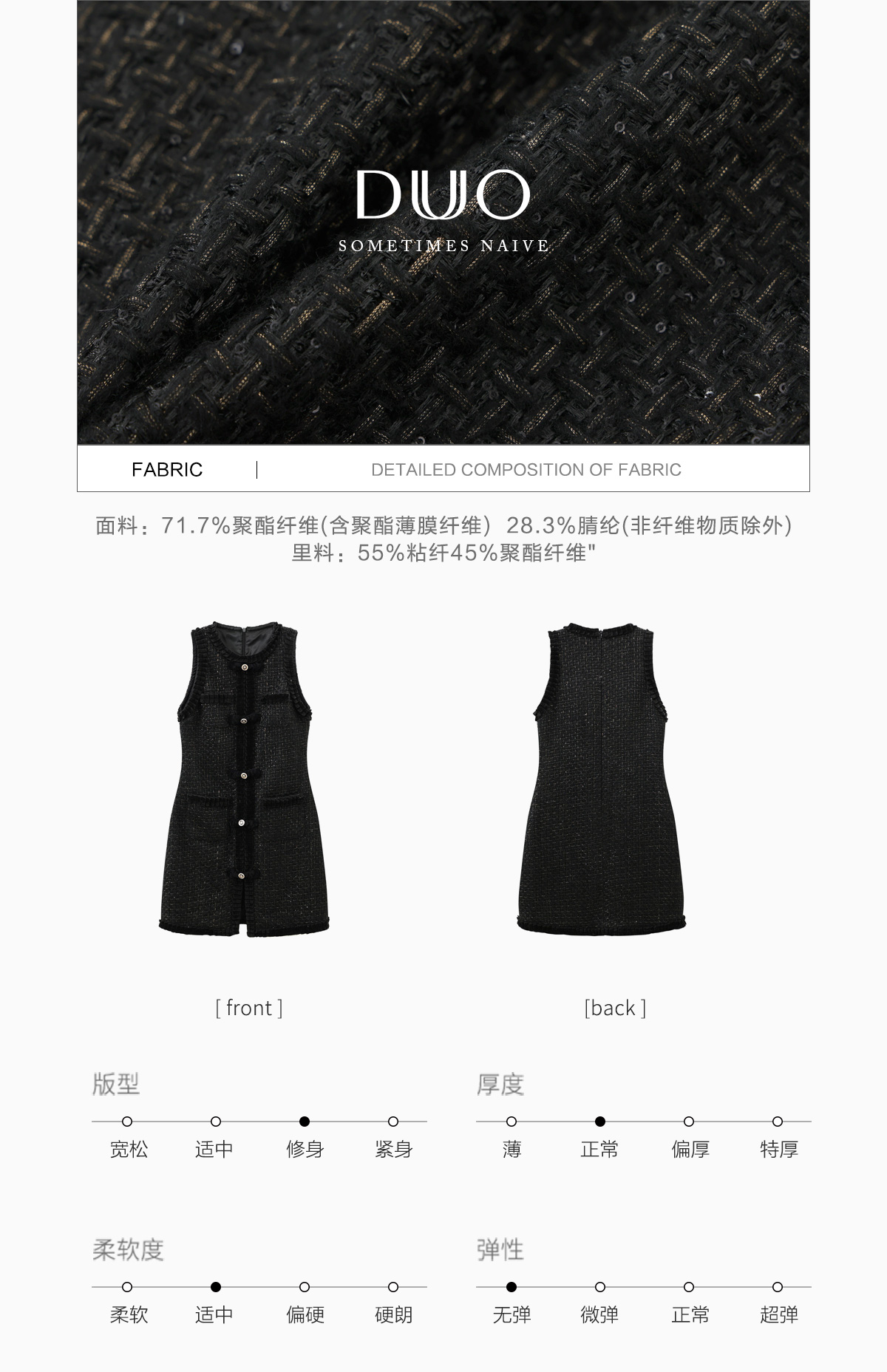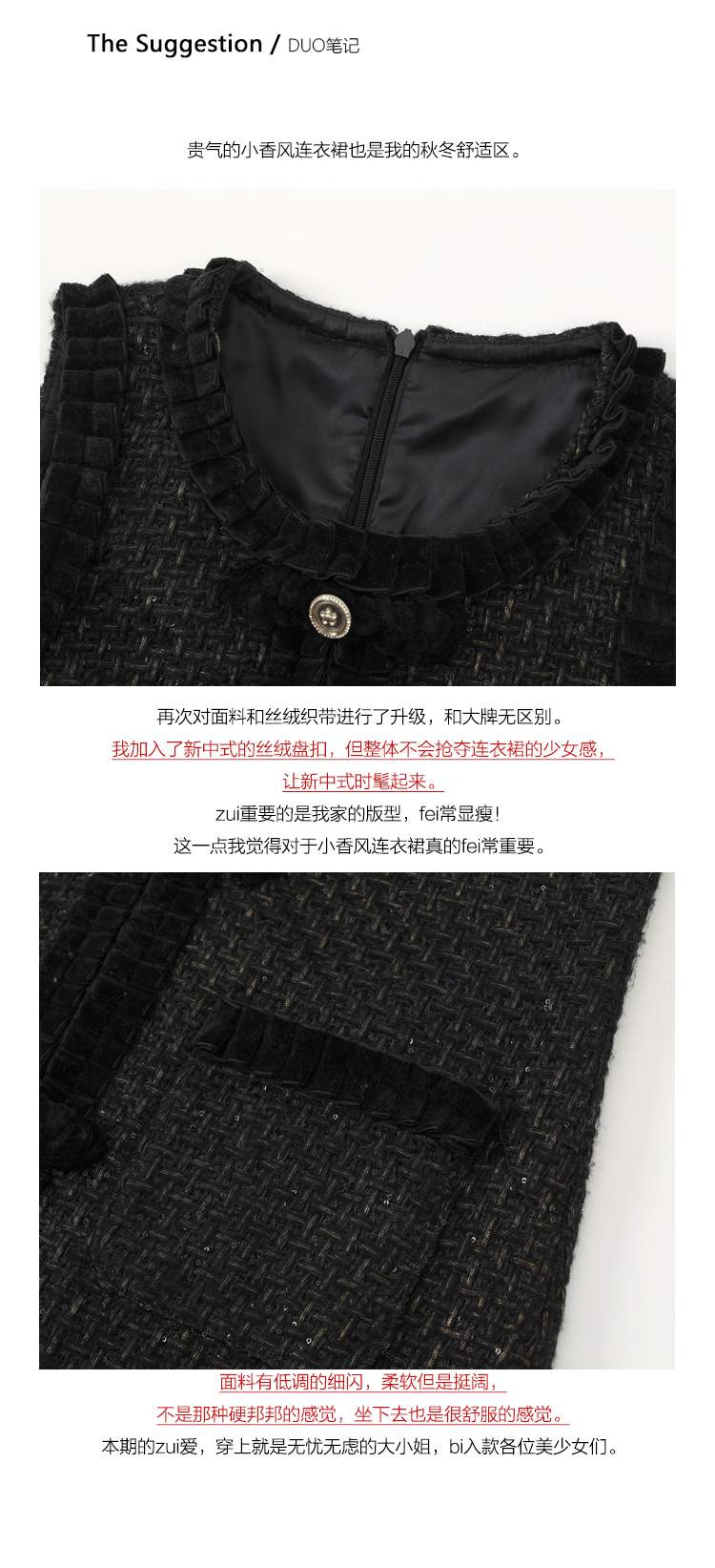 DUO智仙生 露米娜 暗黑新中式粗花呢连衣裙