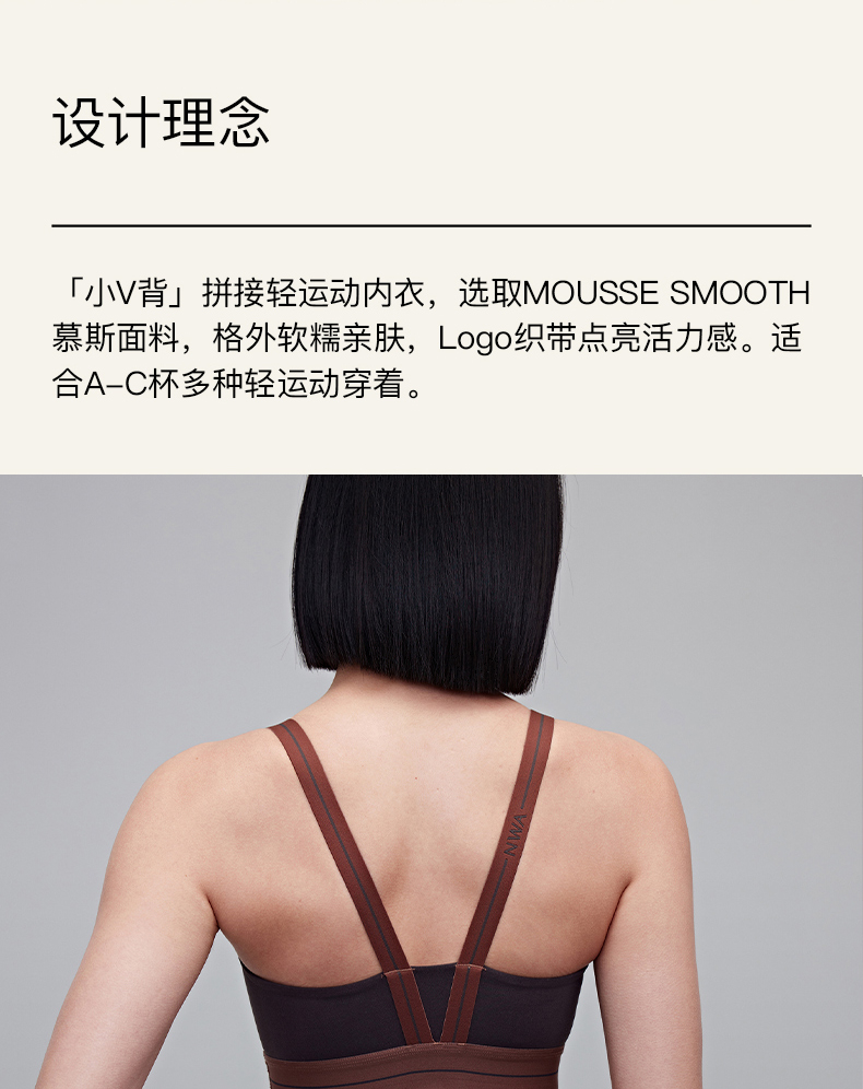 【3F】NEIWAI ACTIVE小V背低支撑慕斯轻运动文胸舒适低强度瑜伽内衣女