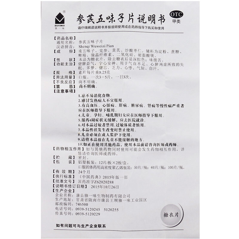 独一味 参芪五味子片 50片健脾益气宁心安神失眠多梦健忘气血不足