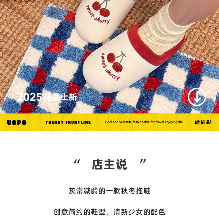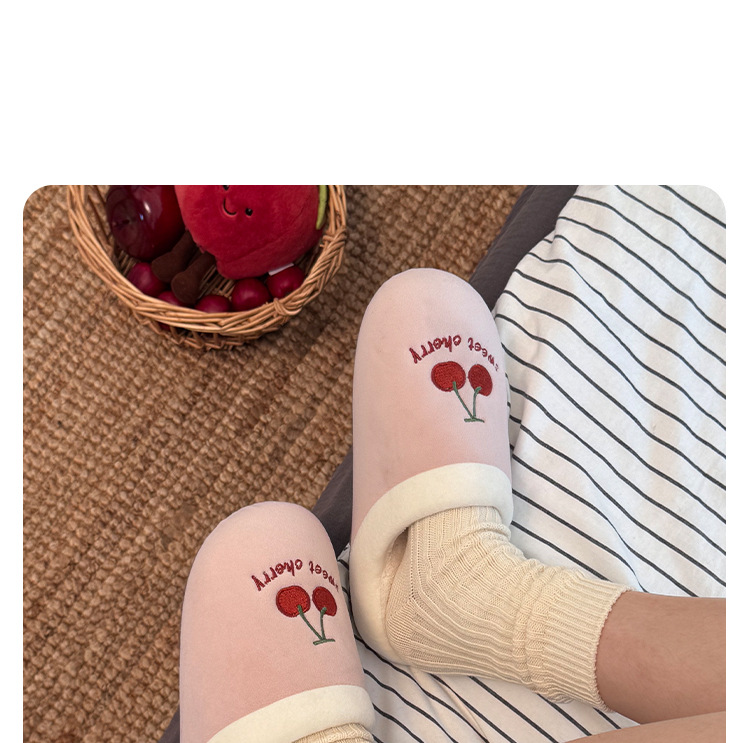 可爱樱桃!2025秋新款勃肯鞋女秋冬季新品室内居家高级感保暖加绒加厚防滑棉拖鞋