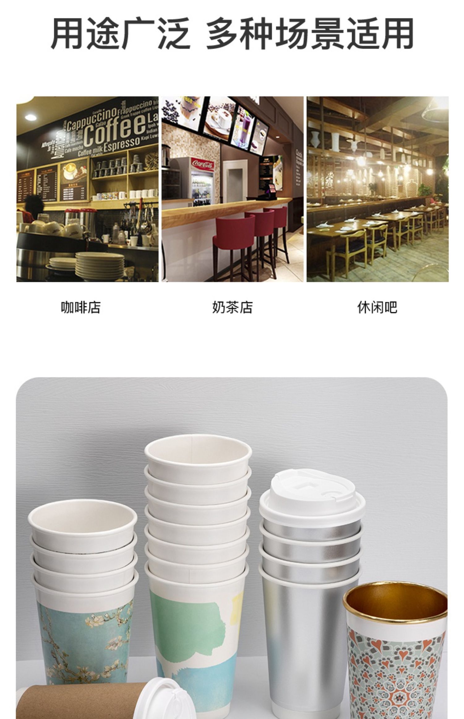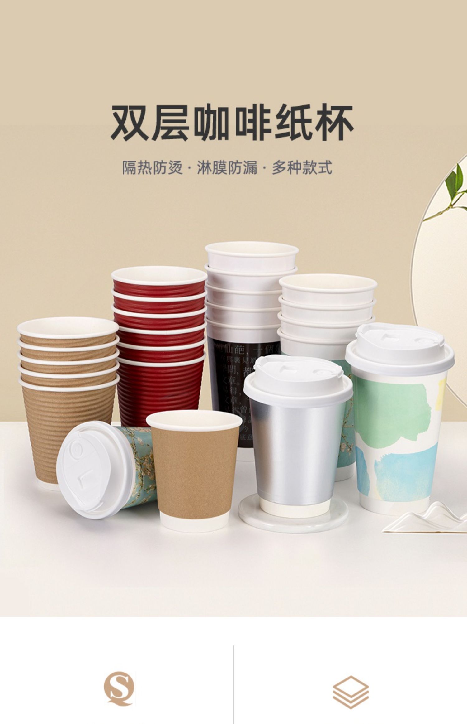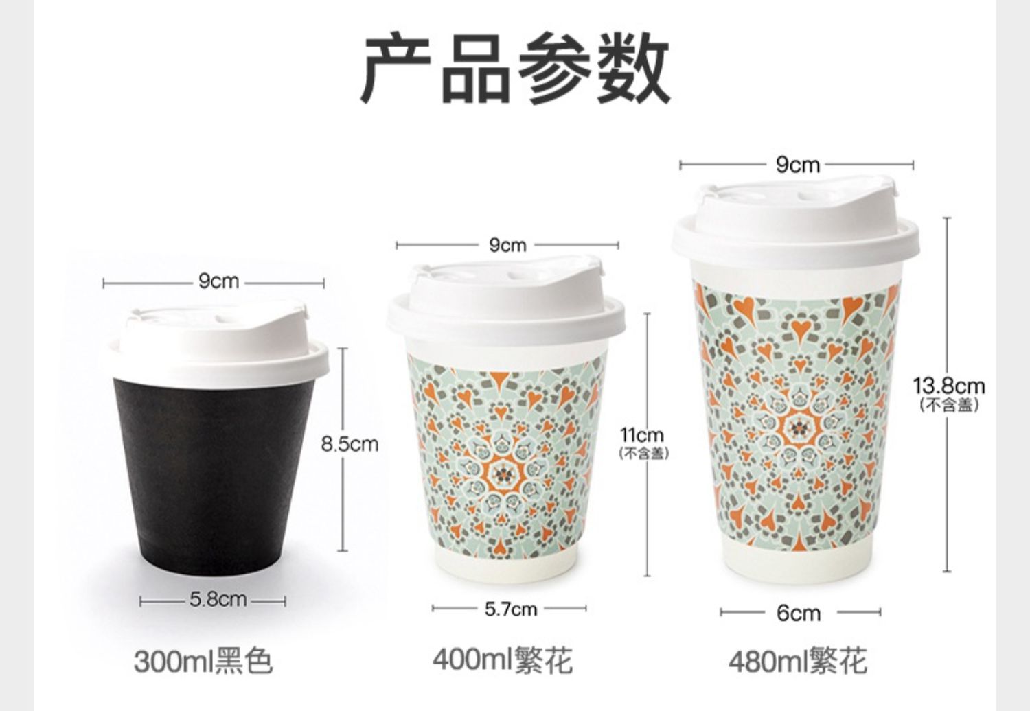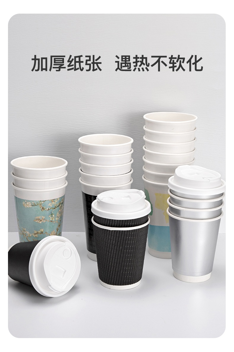 喇叭花咖啡杯一次性奶茶带盖家用纸杯外卖打包热饮杯双层加厚定制