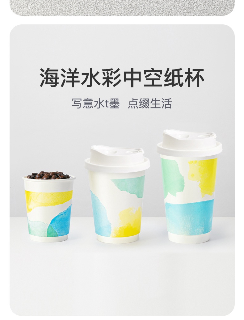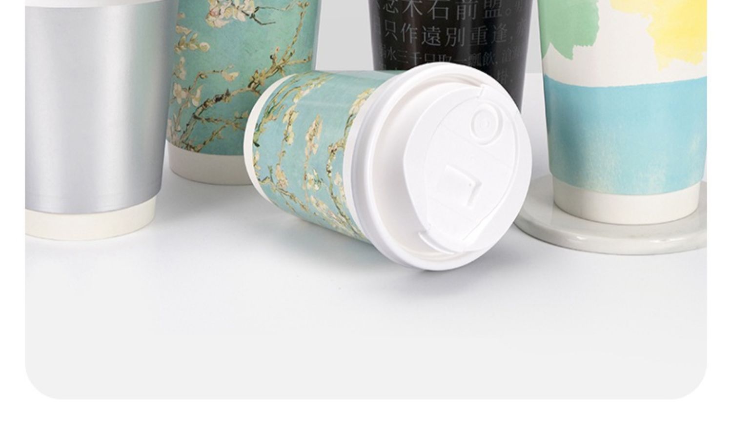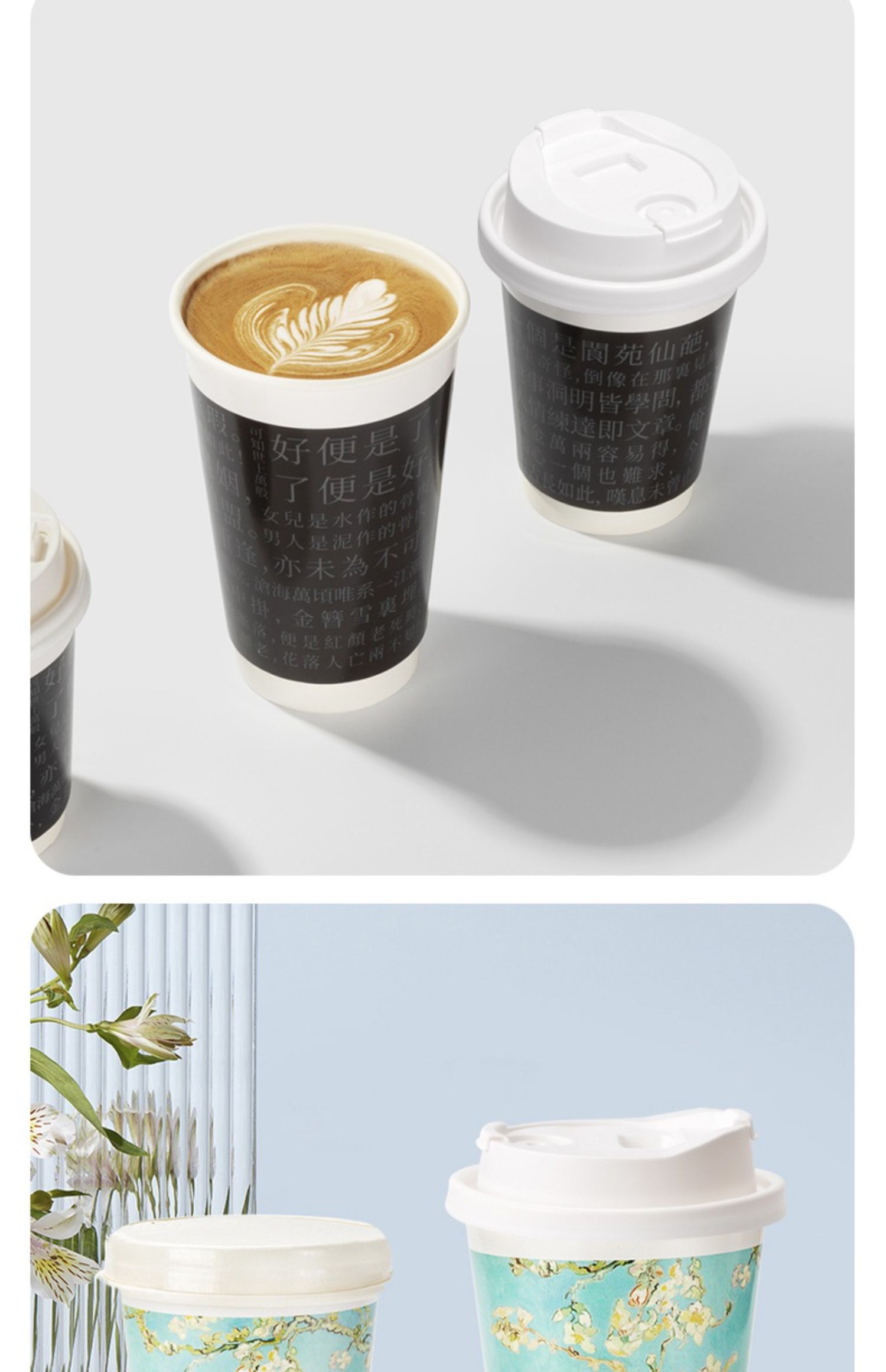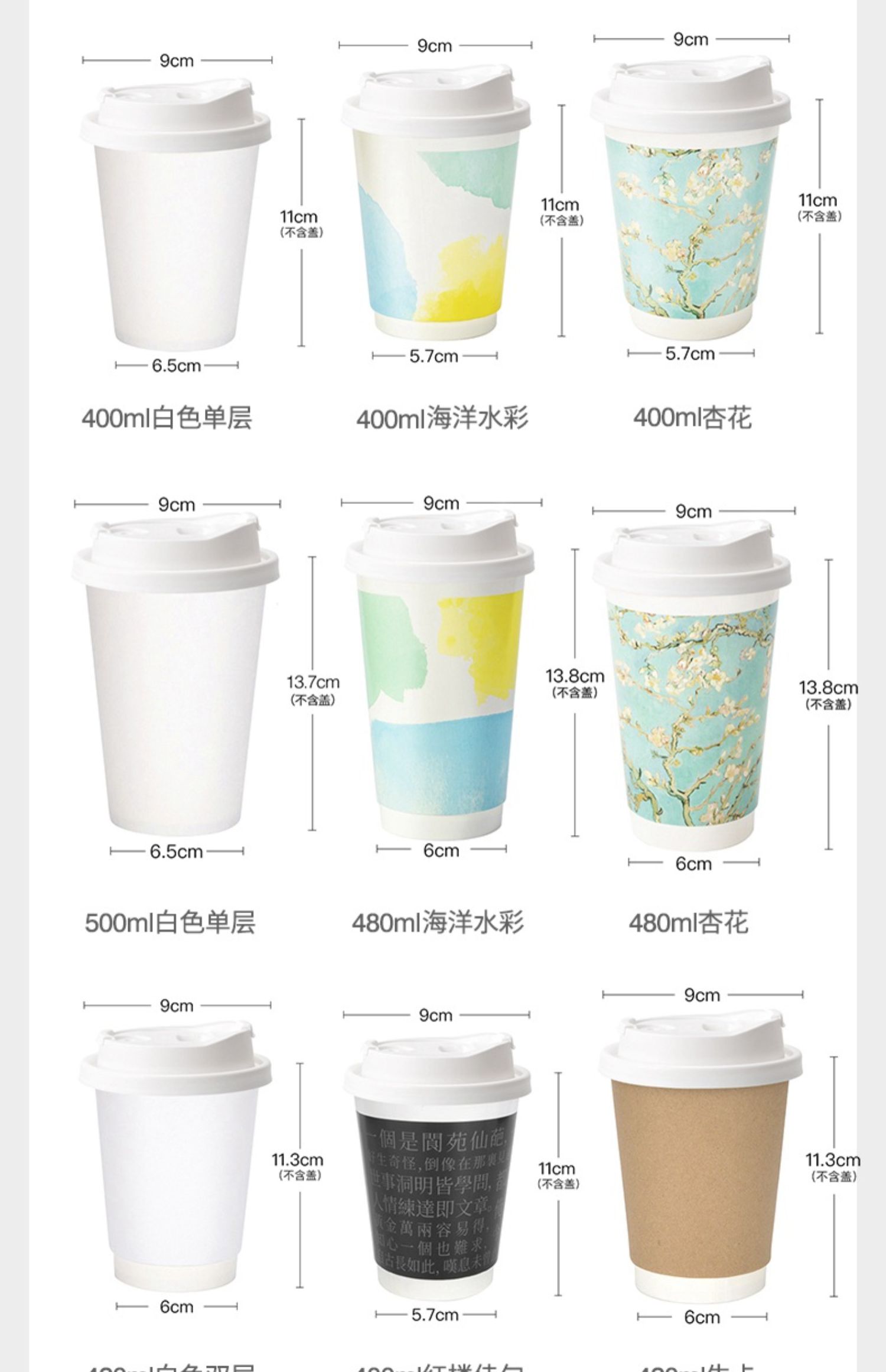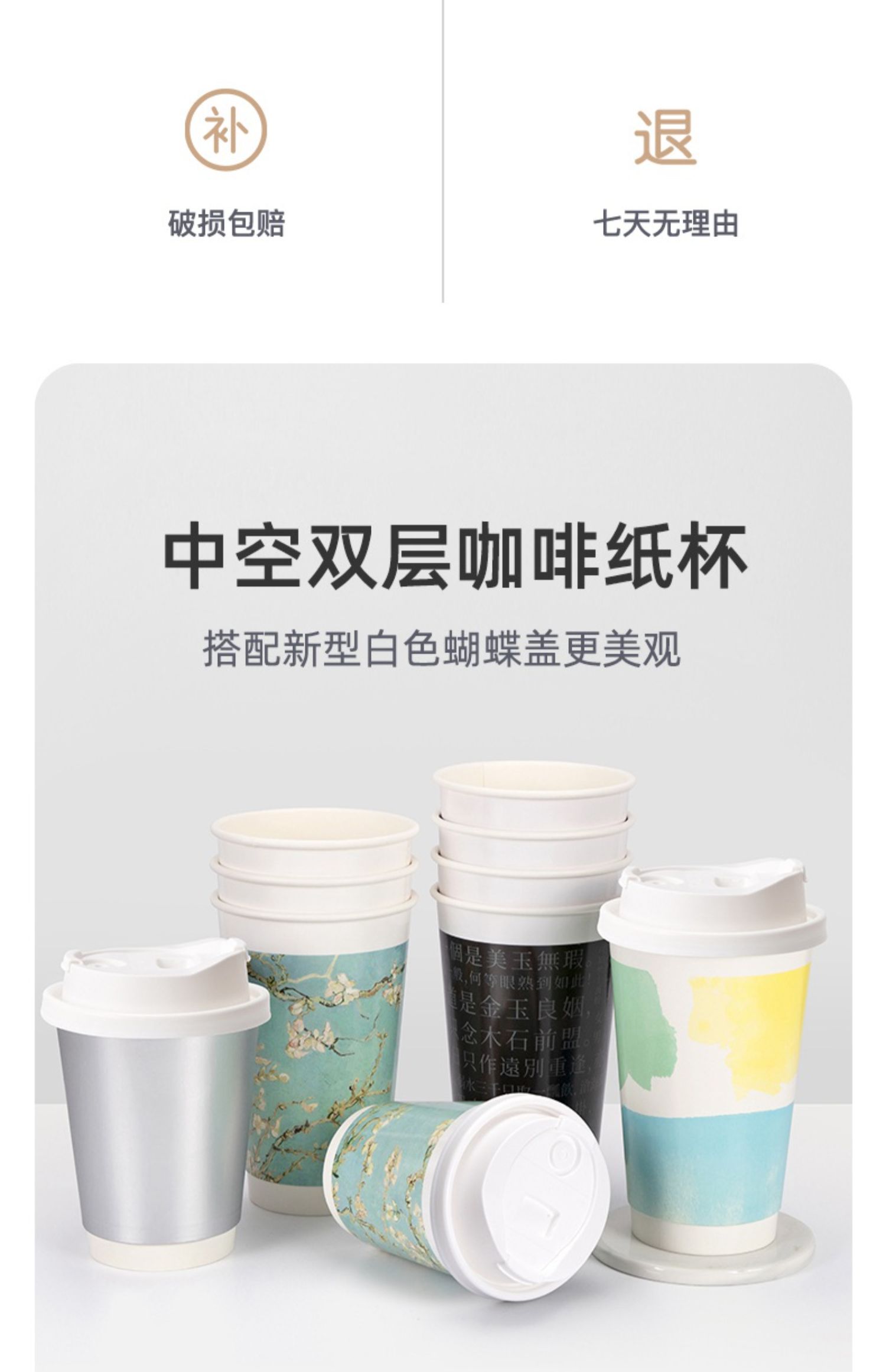 喇叭花咖啡杯一次性奶茶带盖家用纸杯外卖打包热饮杯双层加厚定制