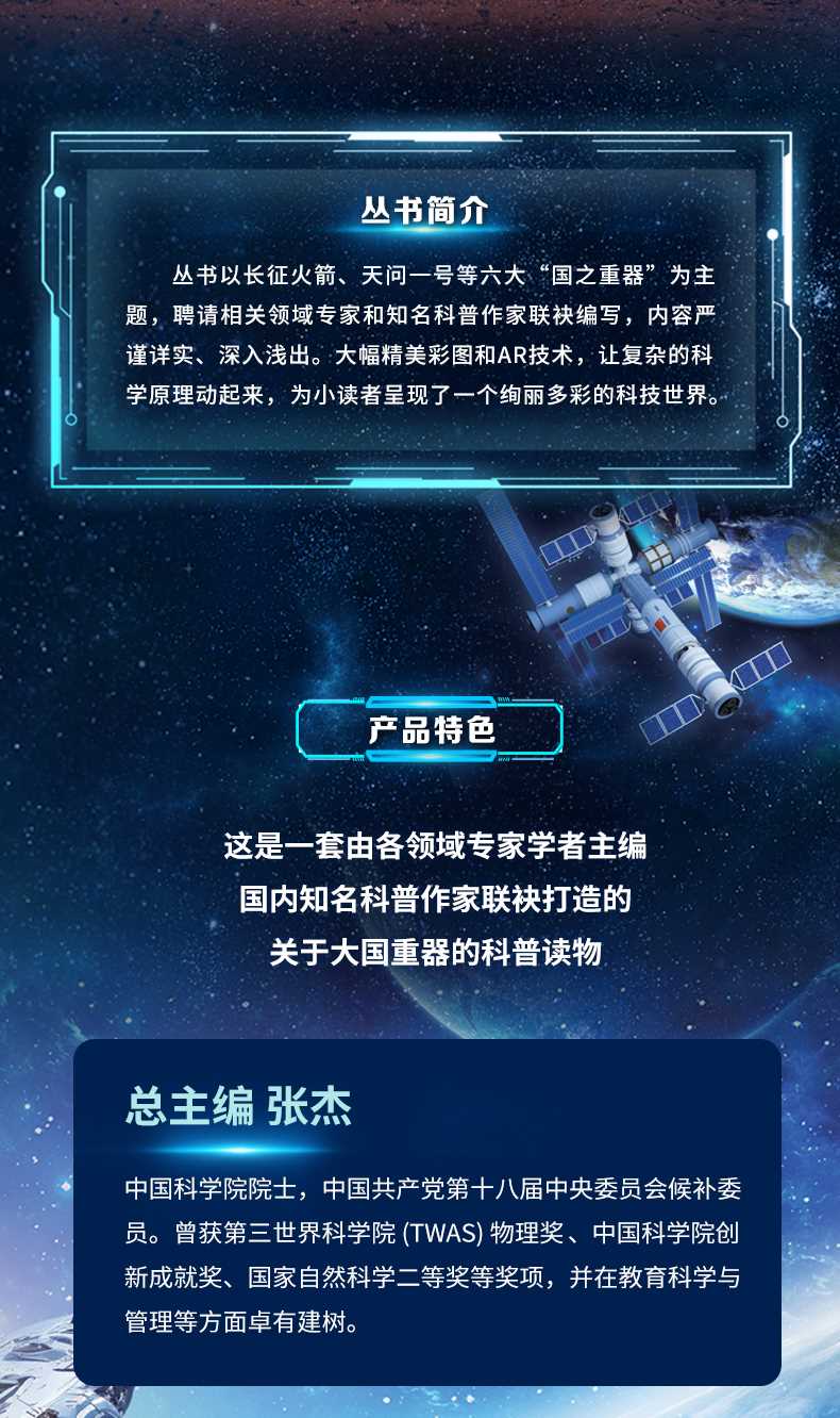 1.一套由各领域专家学者主编,国内知名科普作家联袂打造的关于大国重器的科普读物;2.从太空到港口、从极地到海洋,知识面广,题材丰富多样,深入浅出地讲解了孩子应该了解的基础科学原理及高精尖科技常识,培养孩子从小对科学技术产生兴趣;3.增强现实(AR)技术的应用,使;国之重器以三维动态的形式跃然纸上,让孩子自然而然爱上学习。