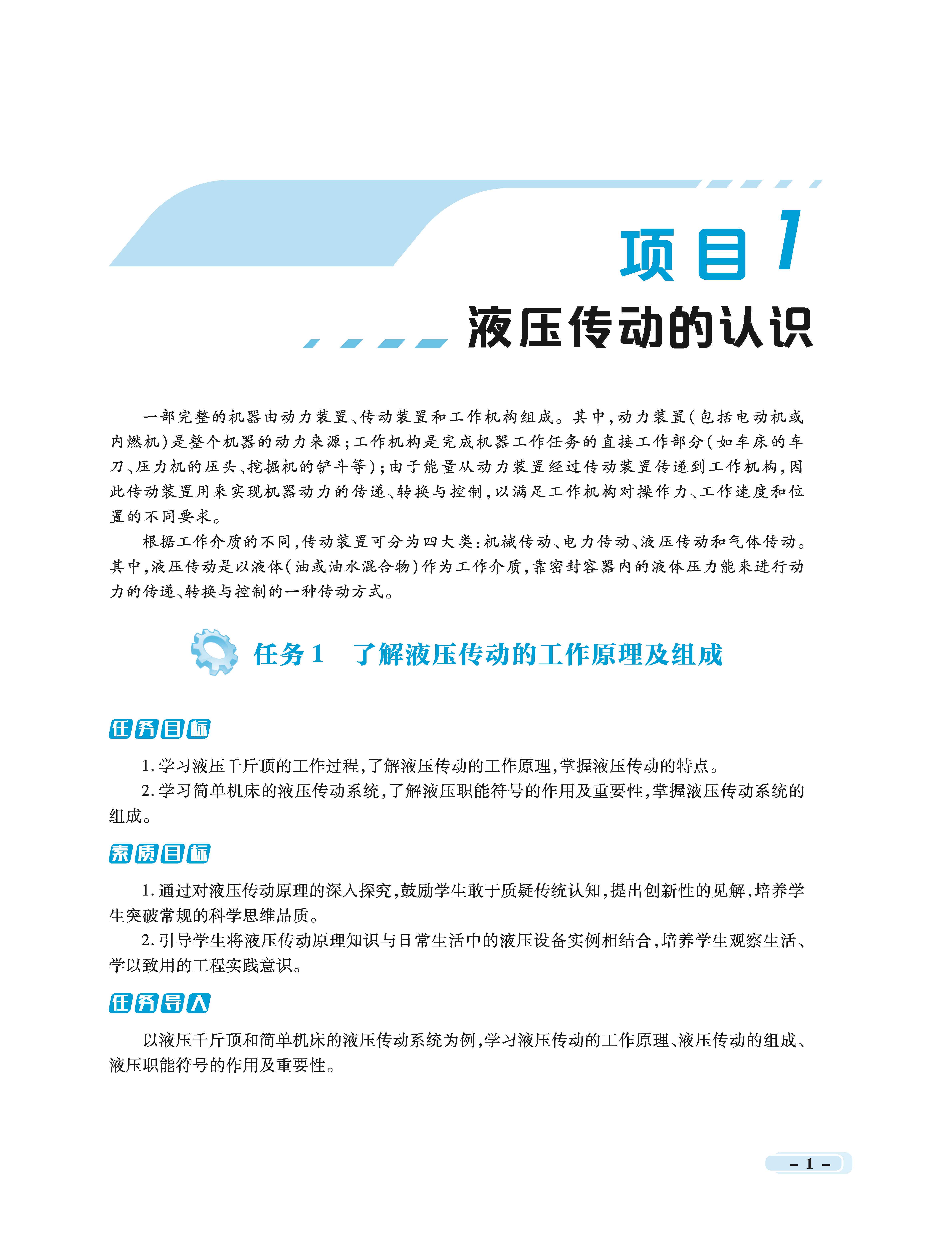 项目1 液压传动的认识 1任务1 了解液压传动的工作原理及组成 1 一、 液压传动的工作原理 2 二、 液压传动装置的组成 2 三、 液压传动系统的职能符号 4任务2 液压传动特点的认识 4 一、 液压传动的优点 5 二、 液压传动的缺点 5任务3 了解液压传动的发展与应用 6 一、 液压传动技术的发展趋势 6 二、 液压传动在工程机械中的应用 8项目2 液压系统工作介质 10任务1 了解液压油的特性 10 一、 液压油的类型 10 二、 液压油的物理性质 11 三、 液压油的要求和选用 15任务2 了解液压油的使用 17 一、 液压油污染的控制 17 二、 液压油的存放和使用 19任务3 了解液体力学基础知识 20 一、 液体静力学基础 20 二、 液体动力学基础 22任务4 液体流动的压力损失分析 27 一、 沿程压力损失 27 二、 局部压力损失 28 三、 管路系统中的总压力损失 28任务5 气穴现象和液压冲击的认识 28 一、 气穴现象 29 二、 液压冲击 29项目3 液压动力元件的认识 32任务1 液压泵的工作原理及参数的认识 32 一、 液压泵的工作原理及职能符号 32 二、 液压泵的性能参数 34 三、 液压泵的功率和效率 34任务2 齿轮泵工作原理及结构分析 36 一、 外啮合齿轮泵 36 二、 内啮合齿轮泵 39 三、 齿轮泵常见的故障 40任务3 叶片泵工作原理及结构分析 41 一、 双作用叶片泵 42 二、 单作用叶片泵 44 三、 叶片泵的故障排除 46任务4 柱塞泵工作原理及结构分析 48 一、 轴向柱塞泵 49 二、 径向柱塞泵 51 三、 斜盘式轴向柱塞泵的选用原则和使用寿命 52 四、 轴向柱塞泵故障排除 52项目4 液压执行元件的认识 55任务1 常见液压缸工作原理分析 55 一、 液压缸的分类、 特点和职能符号 56 二、 活塞缸 57 三、 柱塞缸 59 四、 摆动缸 60 五、 增压缸 60 六、 伸缩缸 61 七、 齿条活塞缸 61任务2 液压缸结构分析 62 一、 液压缸的典型结构 62 二、 液压缸的结构分析 63任务3 液压缸的常见故障及排除方法分析 67任务4 液压马达工作原理及结构分析 68 一、 液压马达的特点及分类 68 二、 液压马达的主要性能参数 69 三、 齿轮式液压马达 70 四、 叶片式液压马达 71 五、 柱塞式液压马达 71 六、 液压马达的常见故障及其排除方法 72项目5 液压辅助元件的认识 74任务1 油箱结构及故障分析 74 一、 油箱的功用与分类 74 二、 油箱的结构设计 75 三、 油箱的冷却与加热 76 四、 油箱的故障分析与排除 77任务2 蓄能器功能及故障分析 78 一、 蓄能器的类型 78 二、 蓄能器的功能及应用 79 三、 蓄能器的选择、 使用和安装 80 四、 蓄能器故障分析与排除 81任务3 过滤器结构及故障分析 82 一、 过滤器的要求 82 二、 过滤器的类型和结构特点 83 三、 过滤器的选用和安装 85 四、 过滤器故障分析与排除 86任务4 密封装置结构特点分析 87 一、 对密封装置的要求 88 二、 间隙密封 88 三、 接触密封 88 四、 密封圈的使用要求 90任务5 管件结构特点分析 91 一、 油管 91 二、 管接头 92项目6 液压控制元件的认识 97任务1 了解液压控制元件的分类 97 一、 液压阀的分类 97 二、 对液压阀的基本要求 99任务2 方向控制阀结构原理及故障分析 100 一、 单向阀 100 二、 换向阀 102 三、 方向控制阀常见故障及排除方法 109任务3 压力控制阀结构原理及故障分析 111 一、 溢流阀 112 二、 顺序阀 115 三、 减压阀 117 四、 压力控制阀的性能比较 119 五、 压力控制阀故障分析与排除方法 120任务4 流量控制阀结构原理及故障分析 123 一、 节流阀 124 二、 调速阀 126 三、 流量控制阀故障分析与排除方法 127任务5 比例阀、 插装阀和叠加阀结构原理分析 128 一、 比例阀 128 二、 插装阀 130 三、 叠加阀 133项目7 液压传动系统的基本回路分析 137任务1 认识开式循环系统与闭式循环系统 137 一、 开式循环系统 (简称开式系统) 137 二、 闭式循环系统 (简称闭式系统) 138任务2 方向控制回路分析 140 一、 换向回路 140 二、 锁紧回路 142 三、 制动回路 143任务3 压力控制回路分析 144 一、 调压回路 144 二、 卸荷回路 147 三、 减压回路 148 四、 增压回路 150 五、 平衡回路 151 六、 保压回路 152 七、 缓冲回路 153任务4 速度控制回路分析 154 一、 调速回路 155 二、 快速运动回路 159 三、 速度换接回路 160任务5 多缸工作控制回路分析 162 一、 顺序动作回路 162 二、 同步回路 164 三、 互锁回路 166 四、 多执行元件互不干扰回路 166项目8 典型工程机械液压传动系统分析 169任务1 Q2_8 型汽车起重机液压传动系统分析 169任务2 WY40 型挖掘机液压传动系统分析 173任务3 ZL100 型装载机液压系统分析 176 一、 单斗装载机的分类 176 二、 ZL100 型装载机的工作原理 177任务4 盾构机主驱动和推进液压系统工作原理分析 179 一、 盾构机主驱动系统 180 二、 盾构机推进液压驱动系统 183任务5 SJ_4 型全断面岩石掘进机液压系统分析 185 一、 全断面岩石掘进机分类 186 二、 SJ_4 型掘进机液压系统原理 186 三、 系统的主要优点 187项目9 液压系统的安装与调试 191任务1 液压系统的安装与清洗 191 一、 安装前的准备工作 191 二、 液压系统的安装 192 三、 液压系统的清洗 194任务2 液压系统的调试 195 一、 空运转 195 二、 压力试验 196 三、 液压系统的调试与试运转 196 四、 负载试车 198项目10 液压系统的使用、 维护和故障排除 199任务1 液压系统的使用和维护 199 一、 液压设备合理使用应注