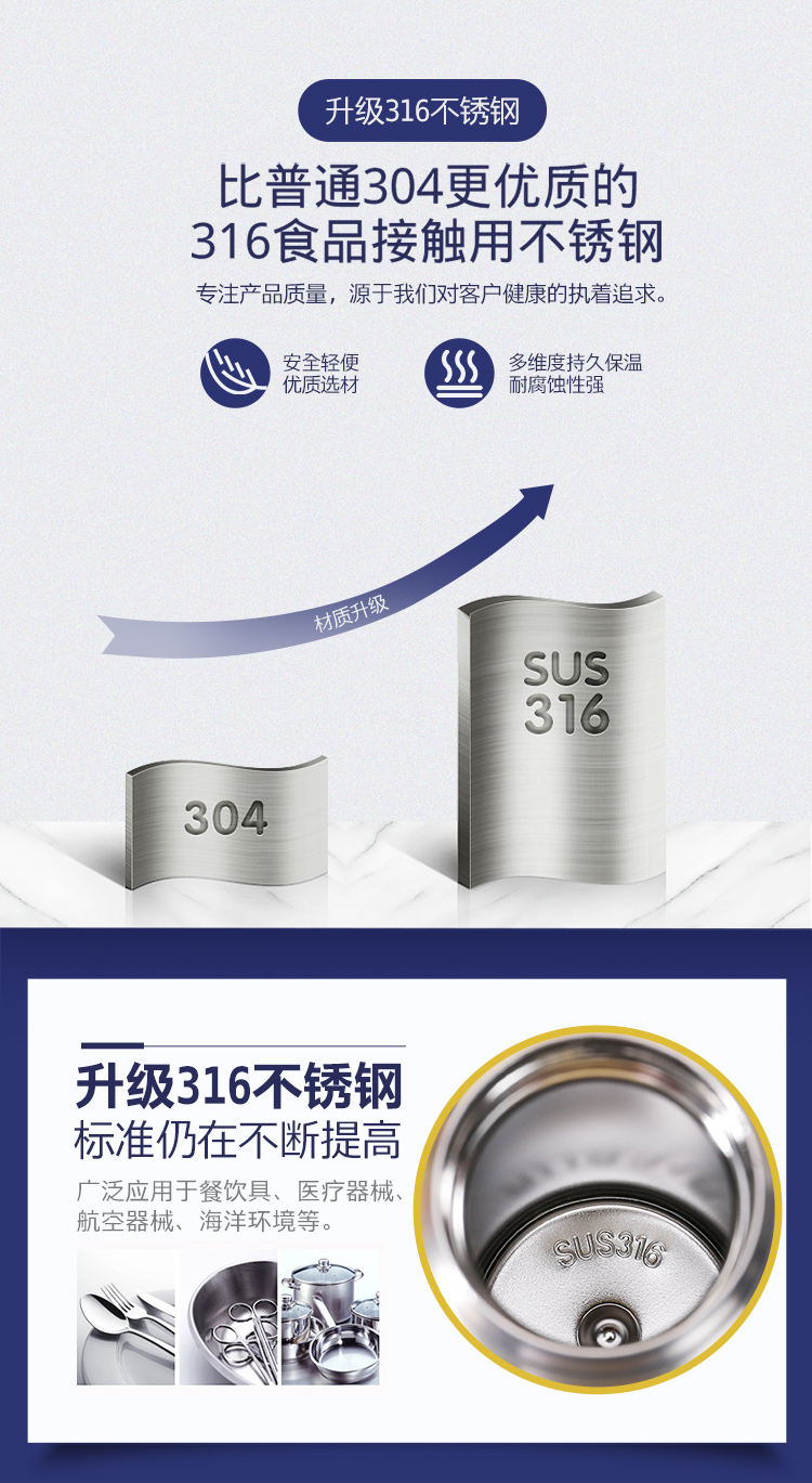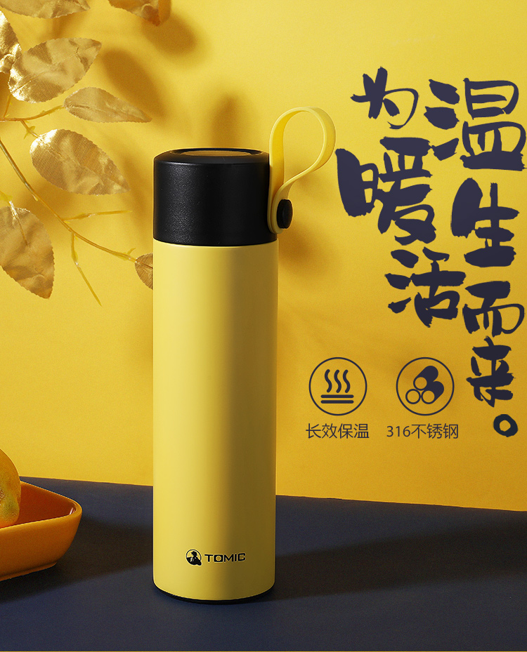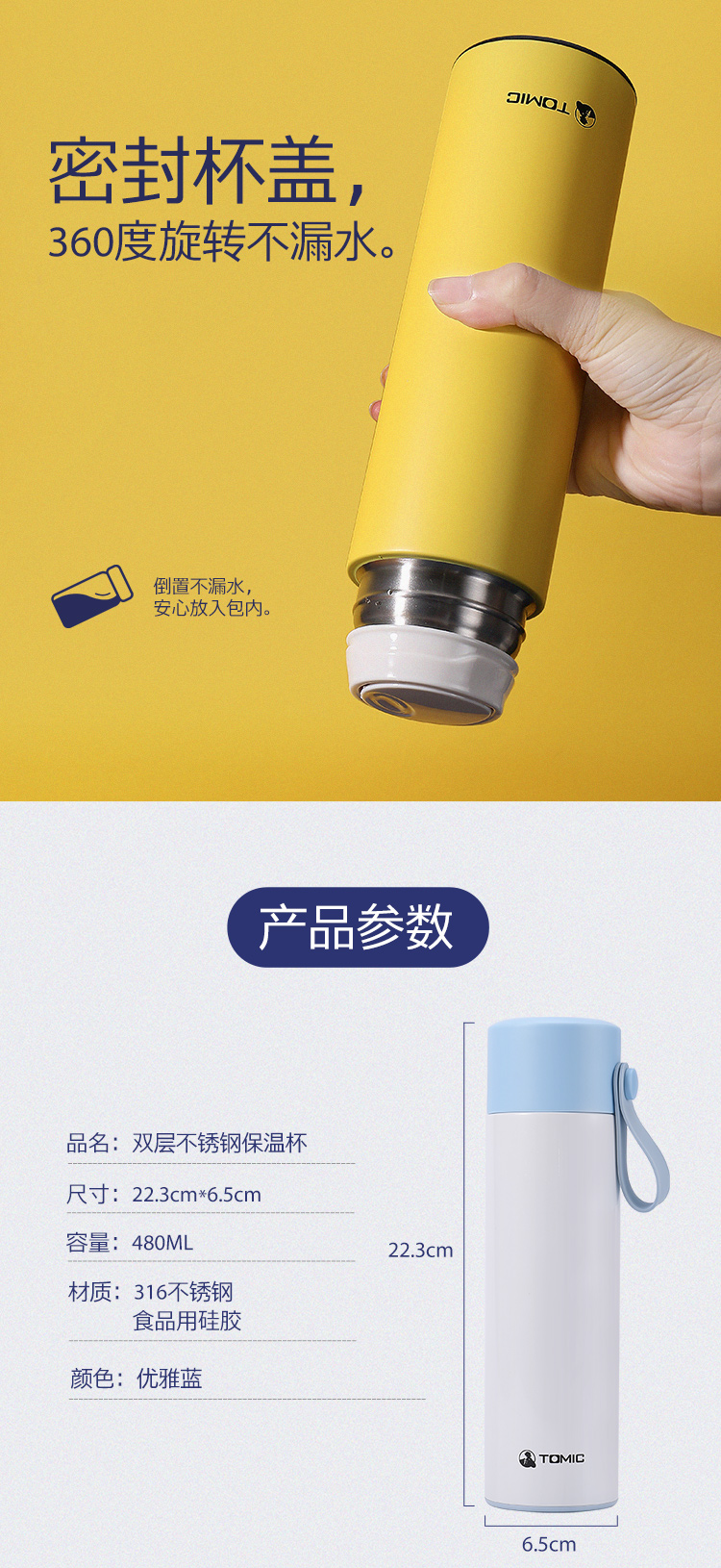 特美刻TOMIC保温杯大容量316不锈钢真空保温水杯车载便携带拎手学生喝水茶杯子TW00001英伦蓝480ml