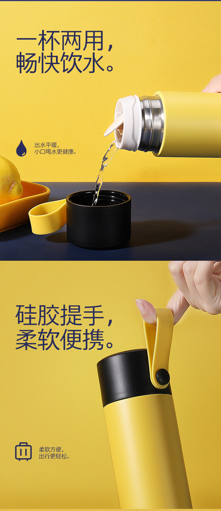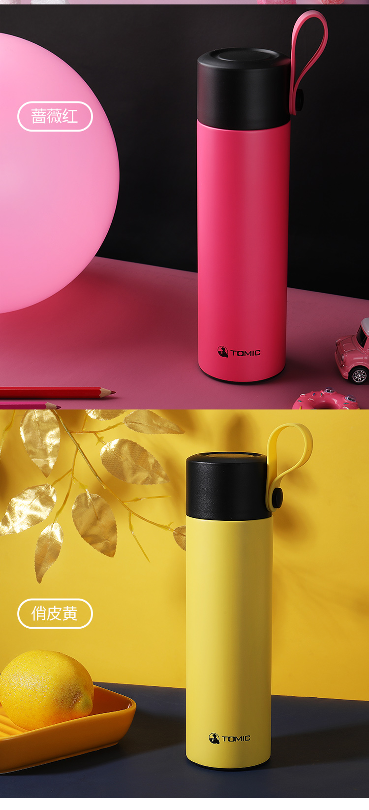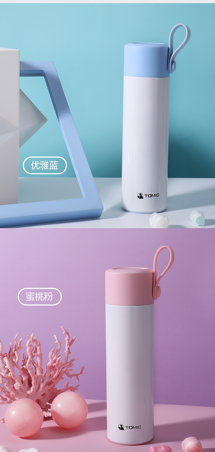 特美刻TOMIC保温杯大容量316不锈钢真空保温水杯车载便携带拎手学生喝水茶杯子TW00001英伦蓝480ml
