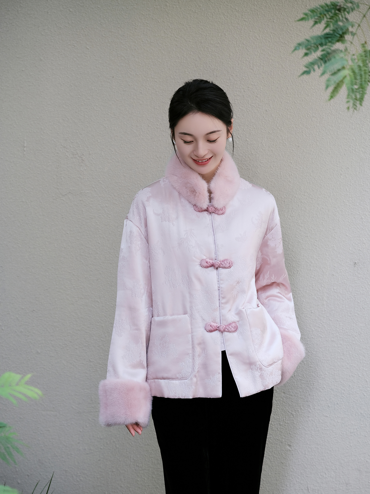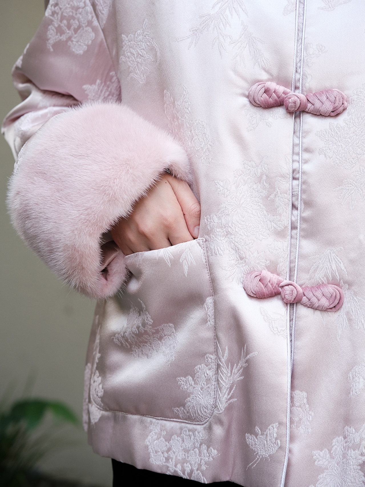 盛唐牡丹|银粉梅兰竹菊冠乐绉配水貂毛棉服