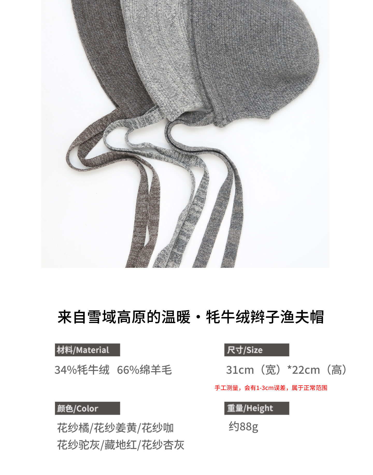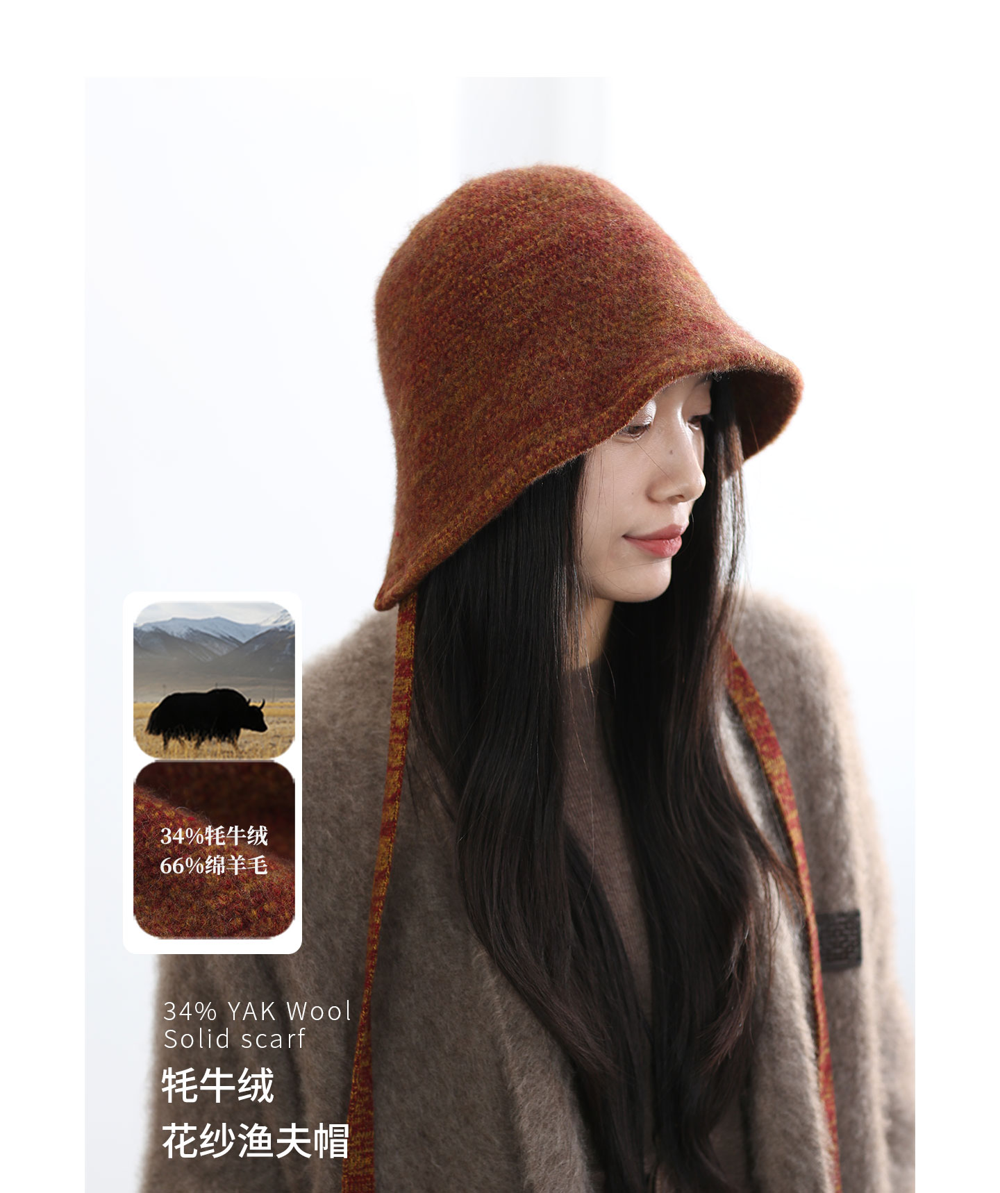 饮水鸟25年冬藏地牦牛绒羊毛针织辫子帽渔夫巴拉法克显脸小礼物