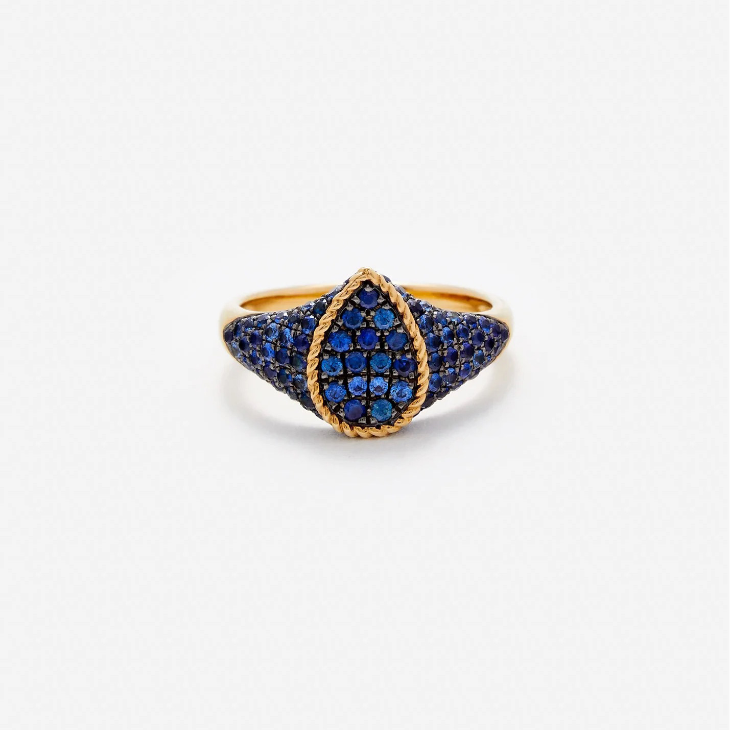 订购8周到|Yvonne Leon-baby chevalière poire-印记 蓝宝石 梨形 图章 戒指[法国设计师]