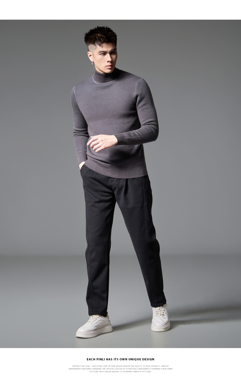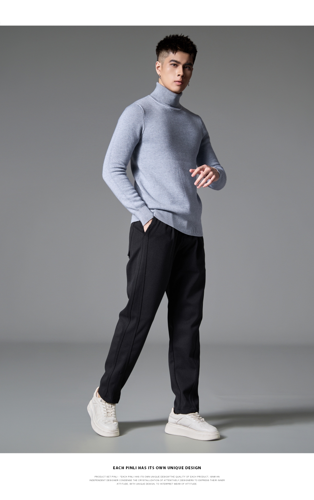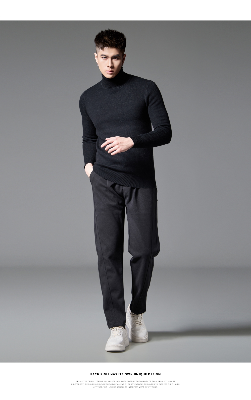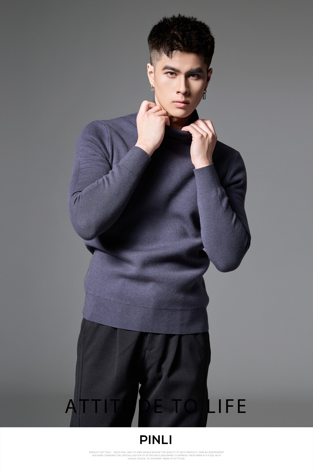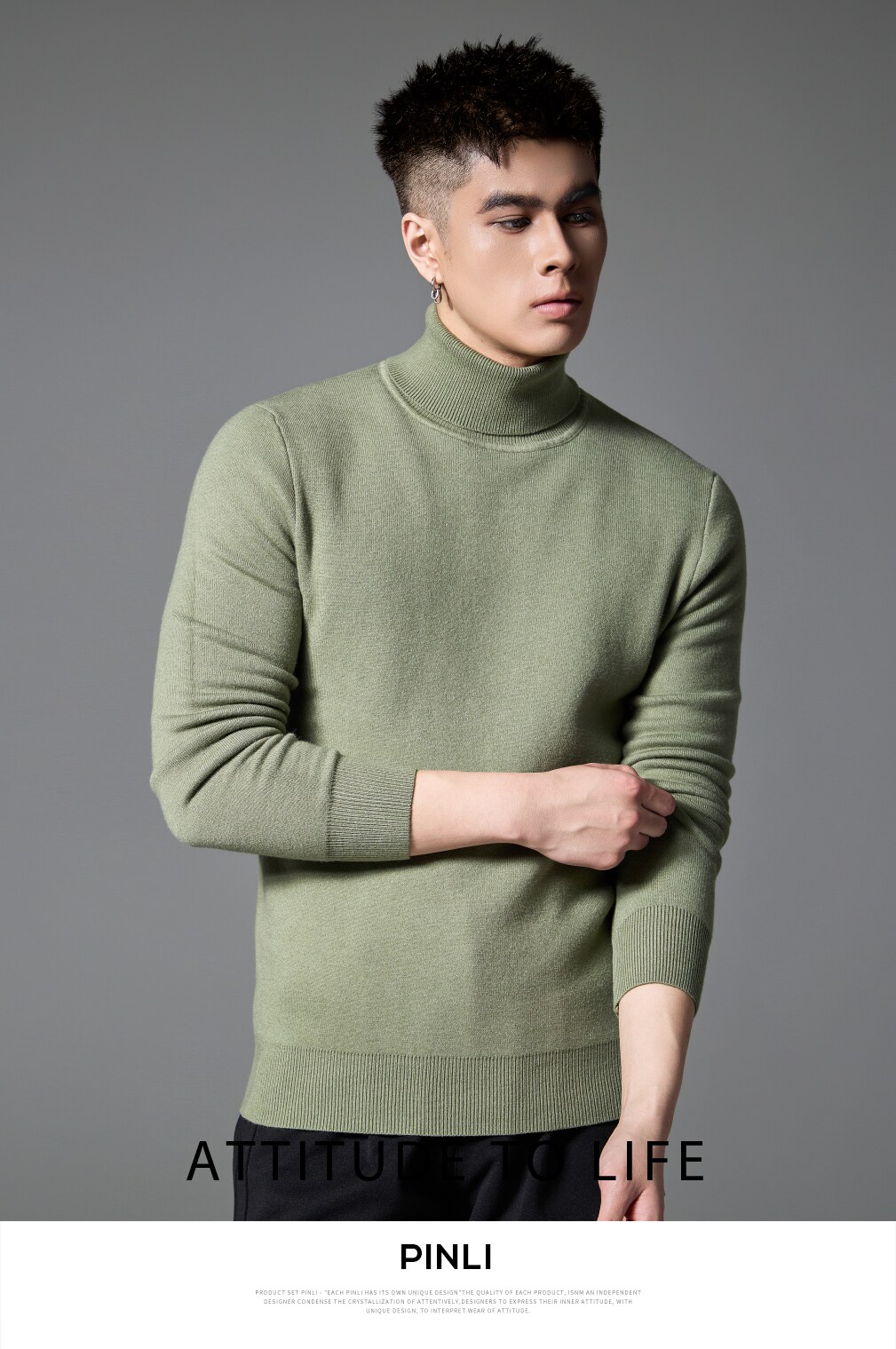 PINLI品立2024冬季新款高领修身加绒针织衫男士加厚百搭打底毛衣GD243410467