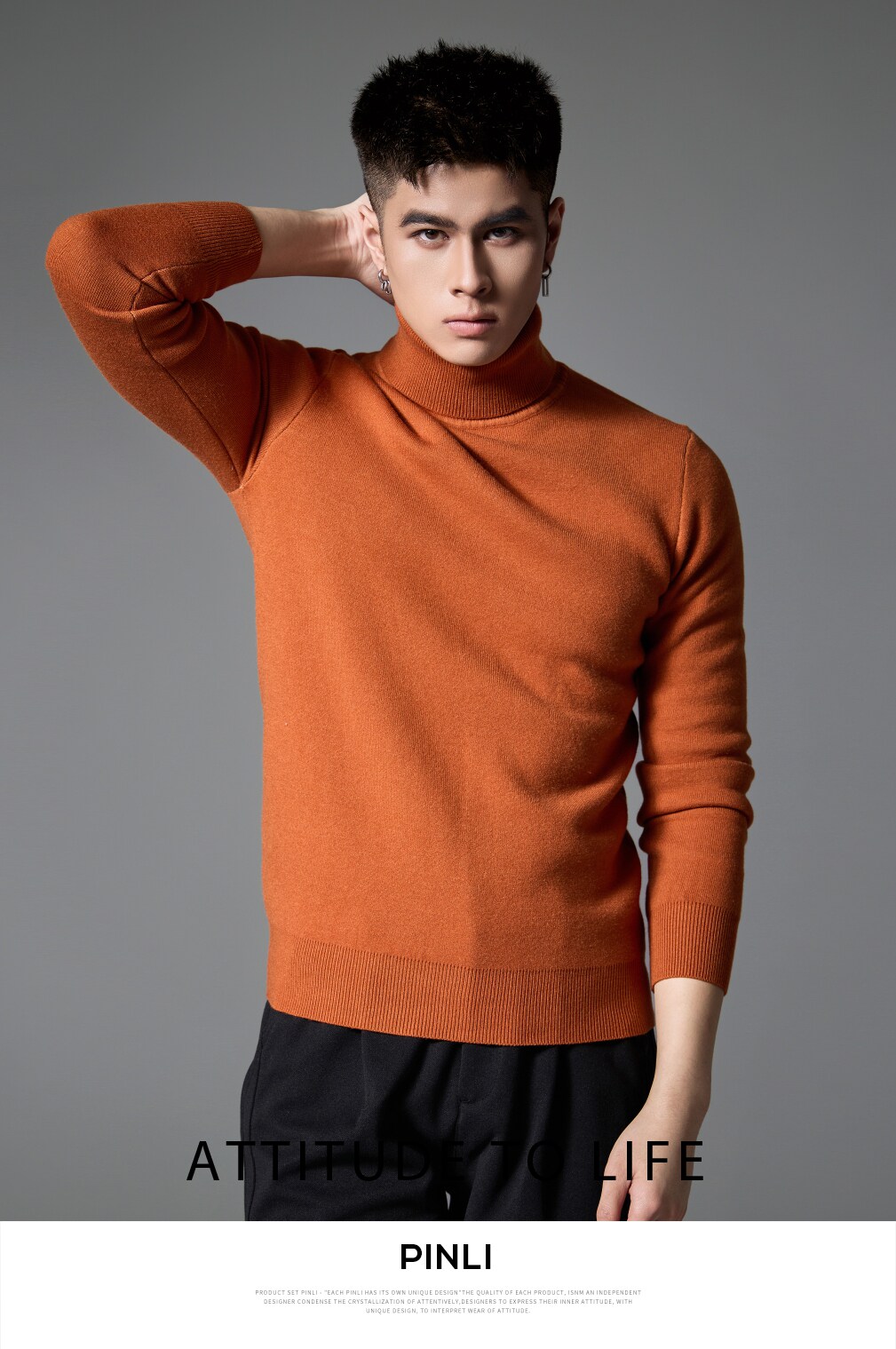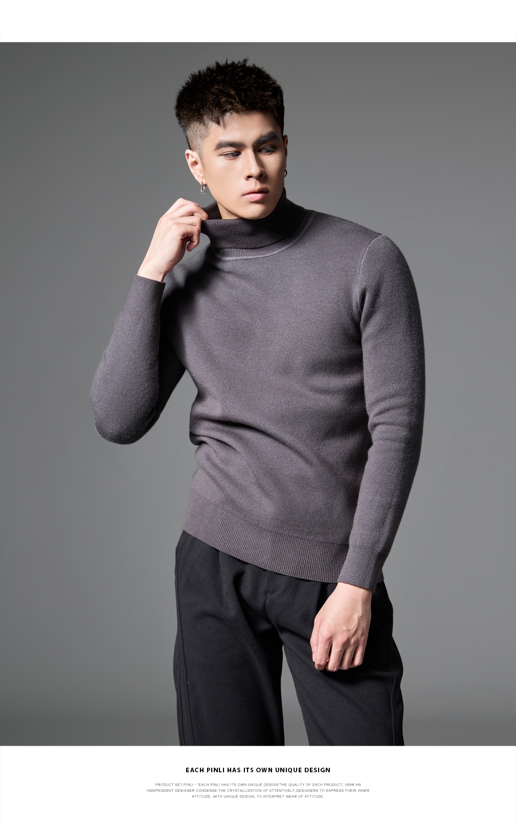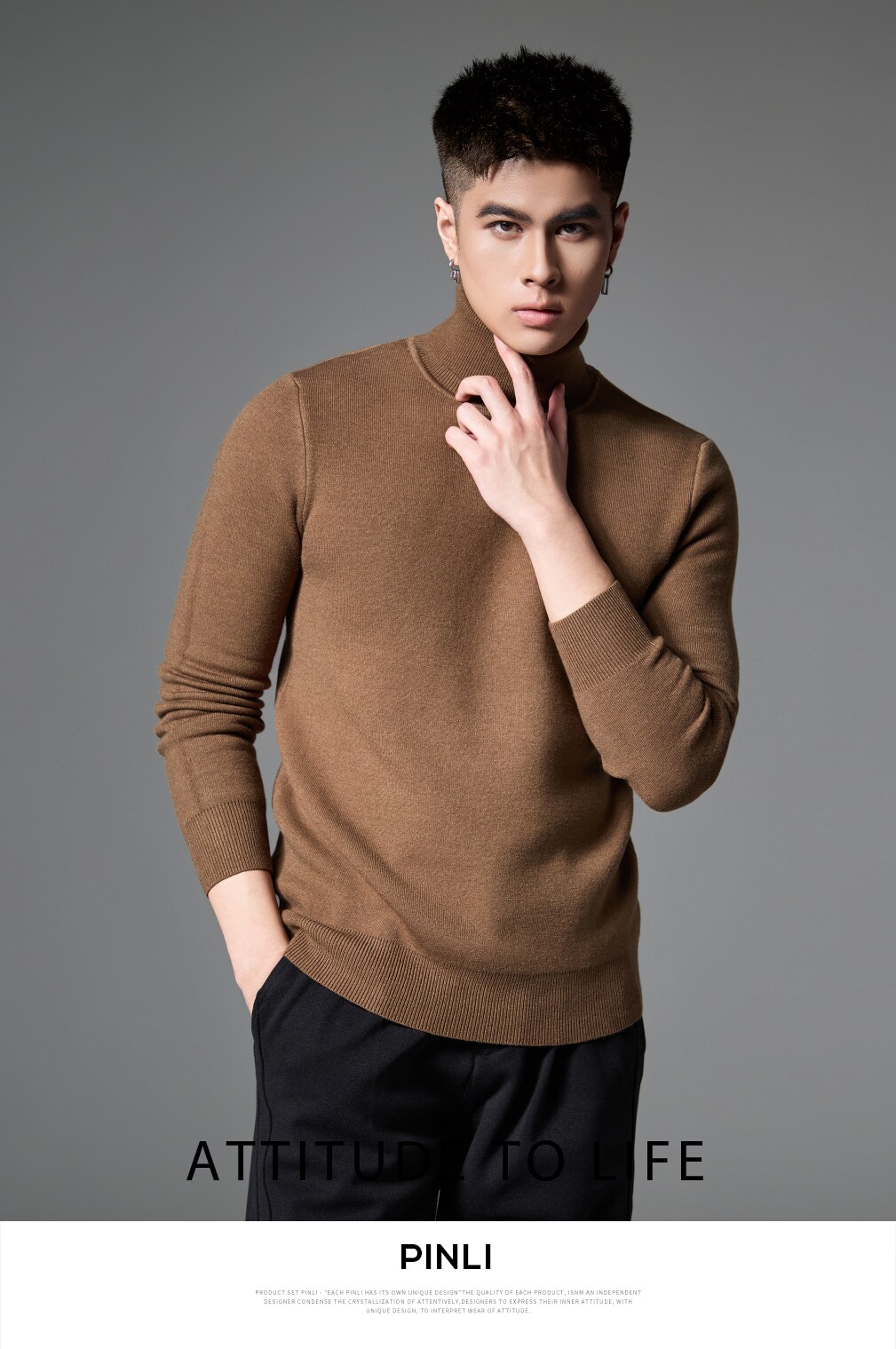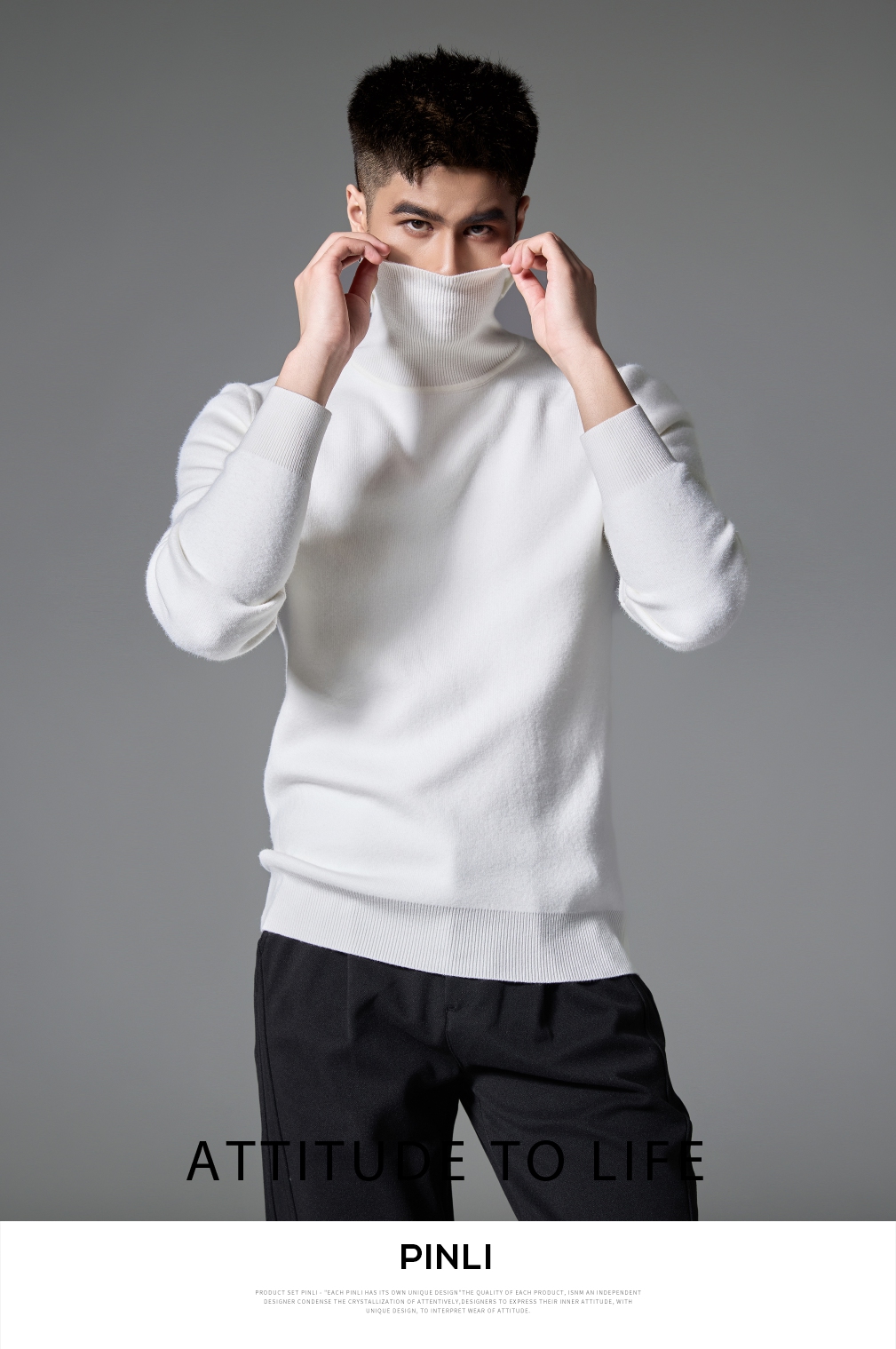 PINLI品立2024冬季新款高领修身加绒针织衫男士加厚百搭打底毛衣GD243410467